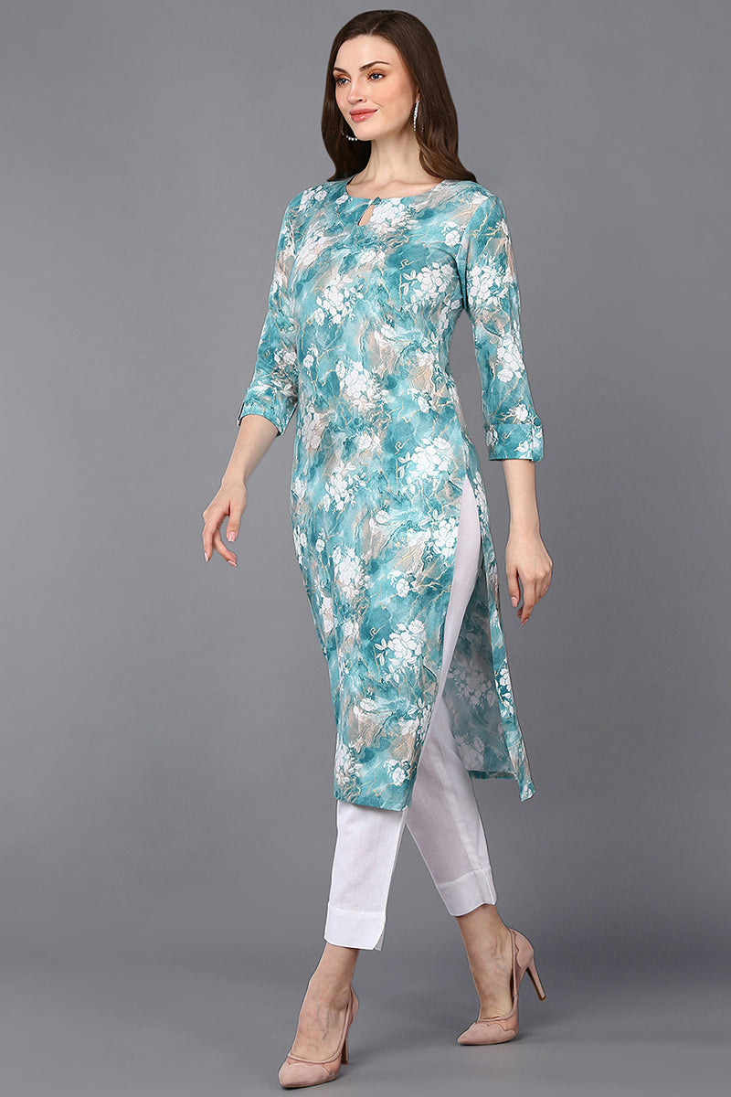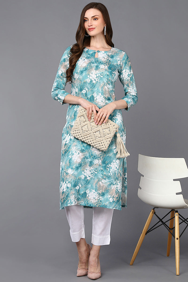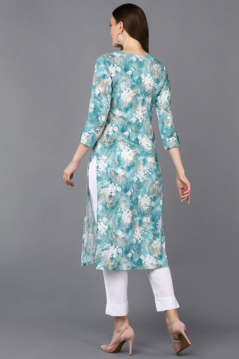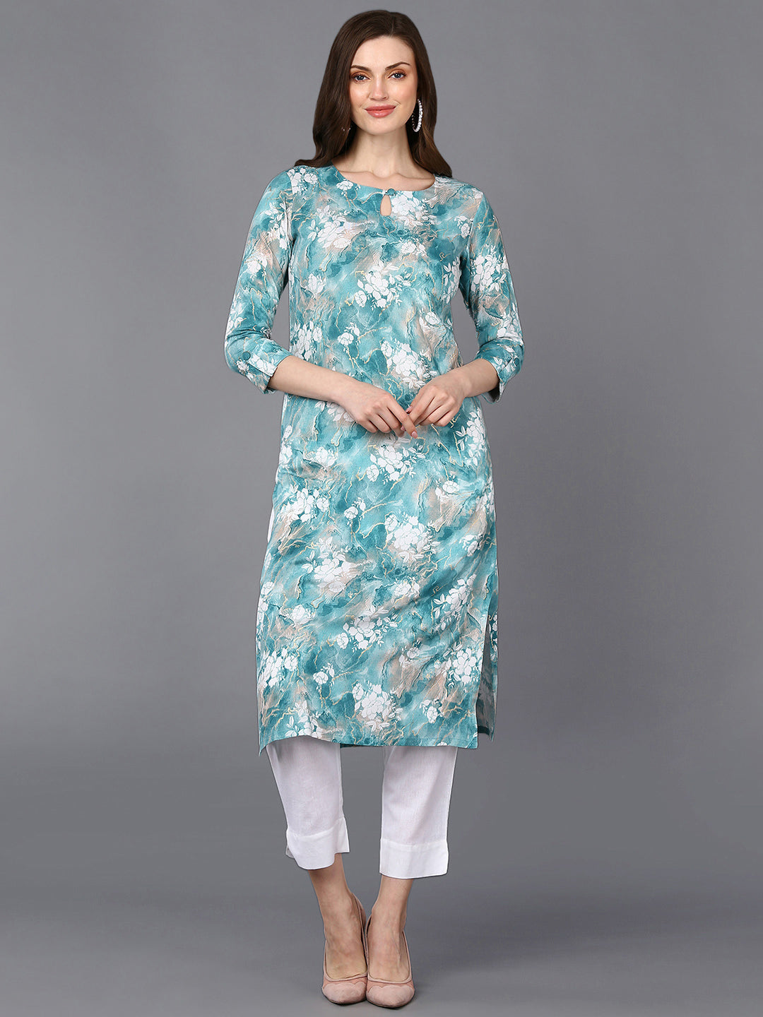 Enhance Your Everyday Look With This Aqua Blue Colored Marble Printed Kurta Crafted From Viscose Rayon Fabric. It Features A Keyhole Neckline With Three-Quarter Roll Up Sleeves. It Consists Of A Regular Fit Hemline And Side Cutouts For A Comfortable All Day Long Wear.