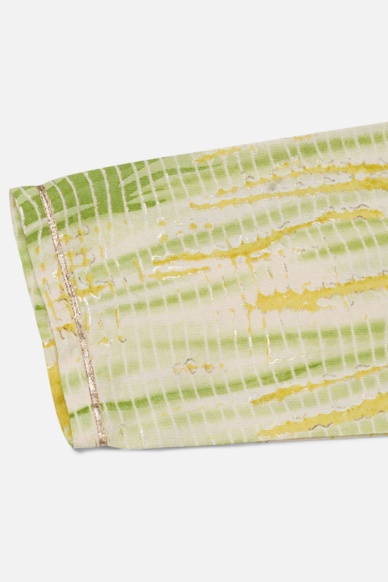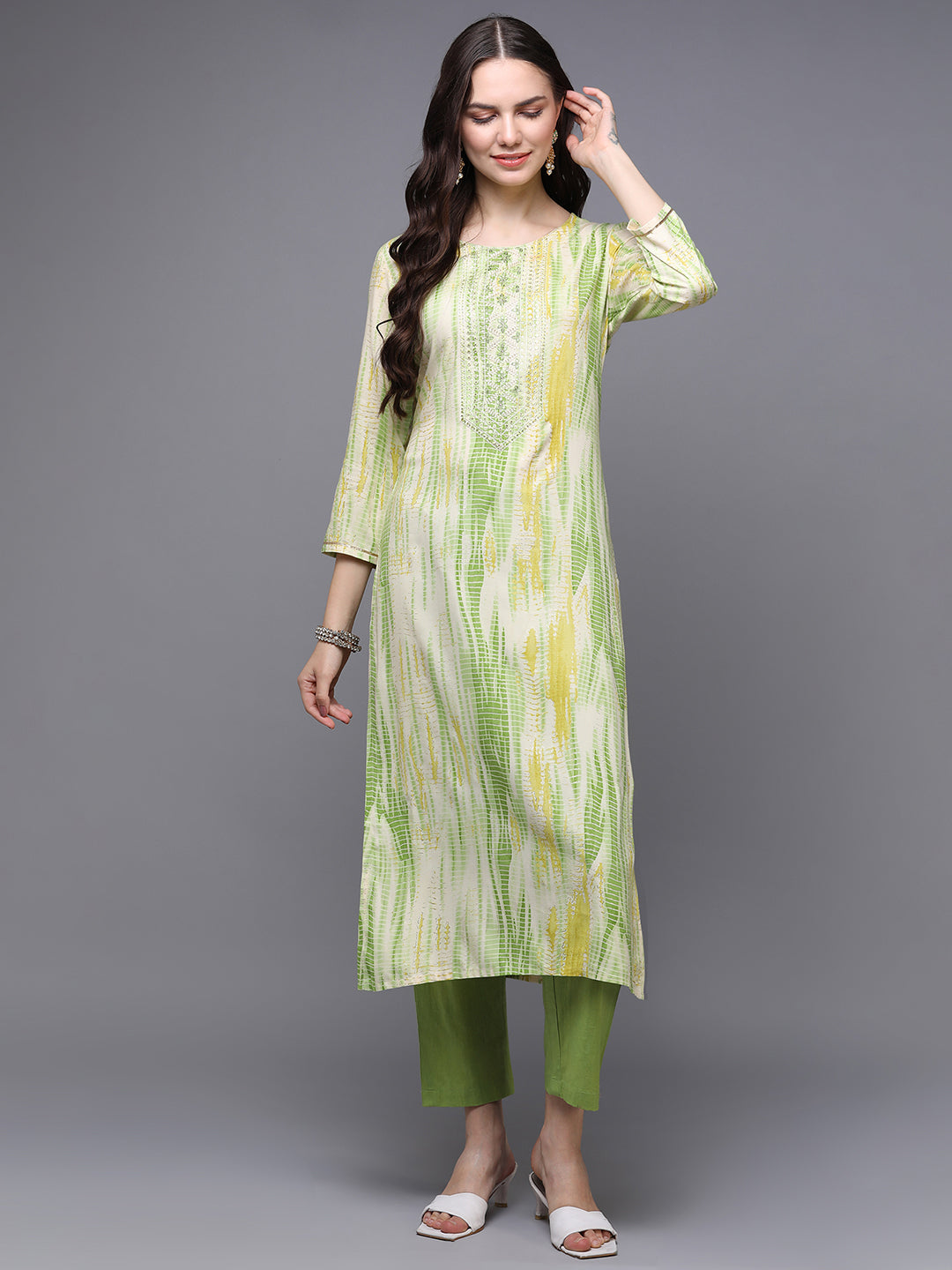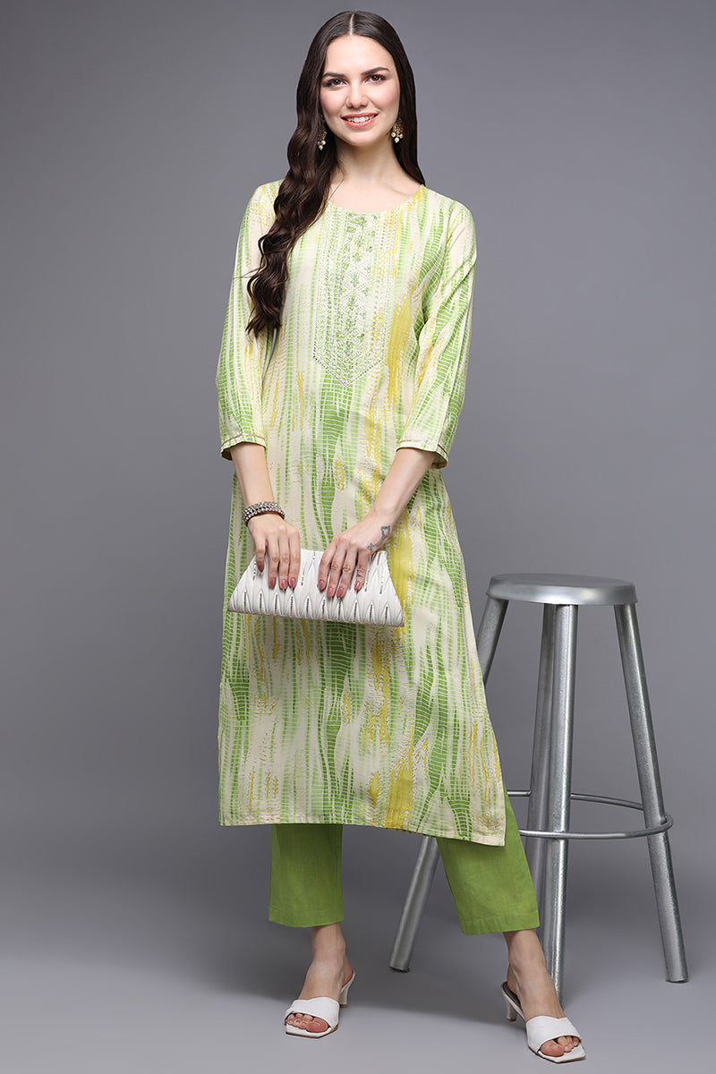Cultivate A Gentle Look By Sporting This Cream Colored Kurta Made From Viscose Rayon Fabric. It Is Adorned With Tie Dye Prints And Features An Embroidered Neckline With Three-Quarter Sleeves. It Has A Regular Fit Hemline With Side Cutouts.