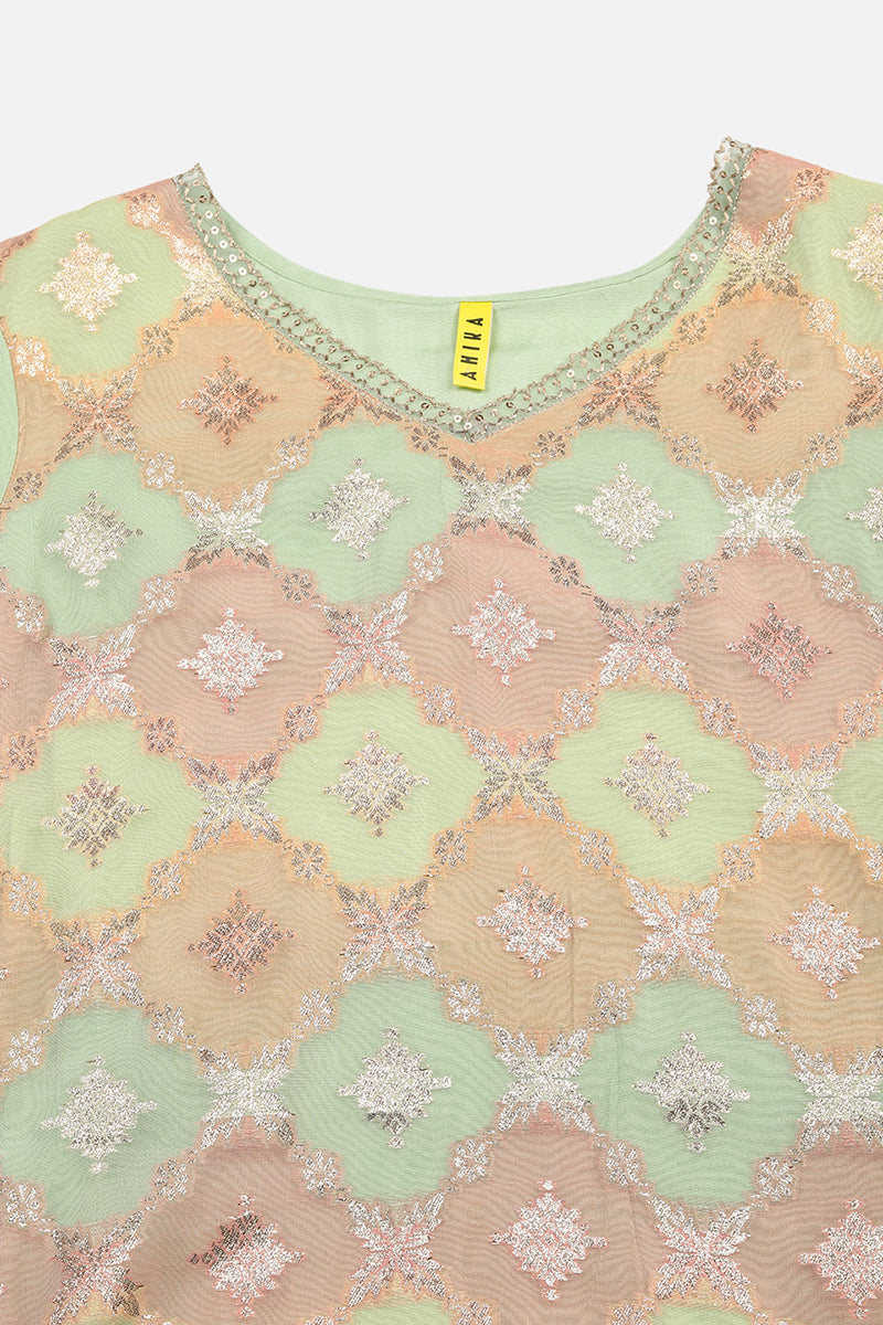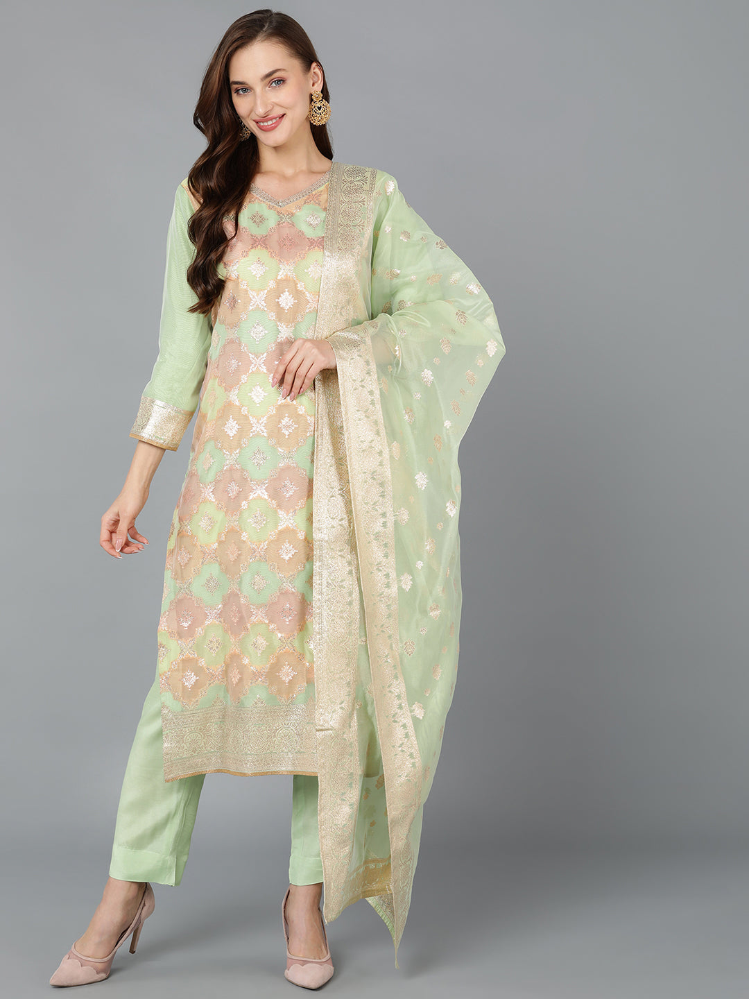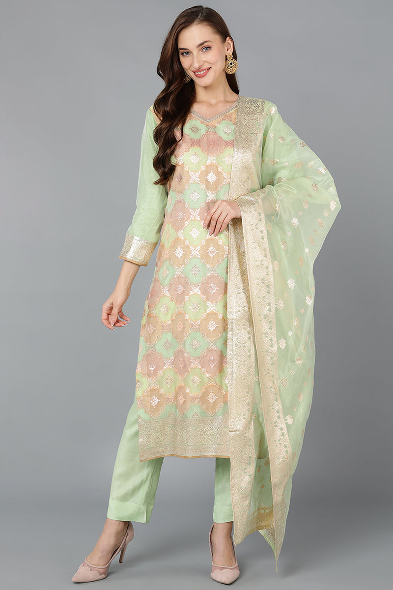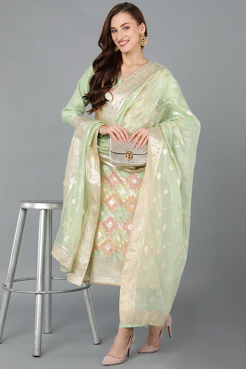 Explore The Beauty Of Traditional Attires By Indulging In Classic Styles With This Polychanderi Kurta Pant With Dupatta. The Kurta Is Framed With A Fancy Neckline And Three-Quarter Sleeves All Designed With Ethnic Motif Prints. It Has A Straight Hemline And Side Slits For A Comfortable Feel. It Is Paired With A Poly Silk Straight Bottom Designed With Side Slits A Pocket. The Dress Comes With A Silk Blend Dupatta With A Printed Border.
