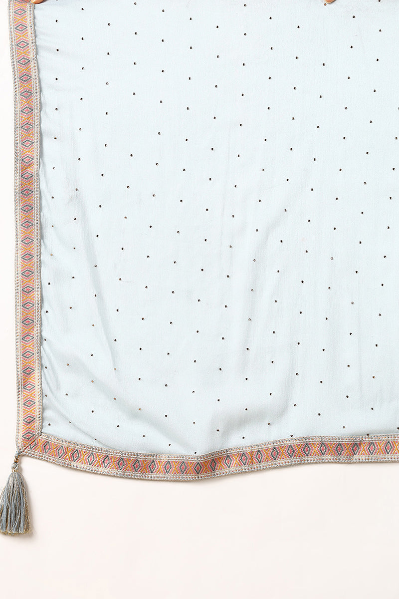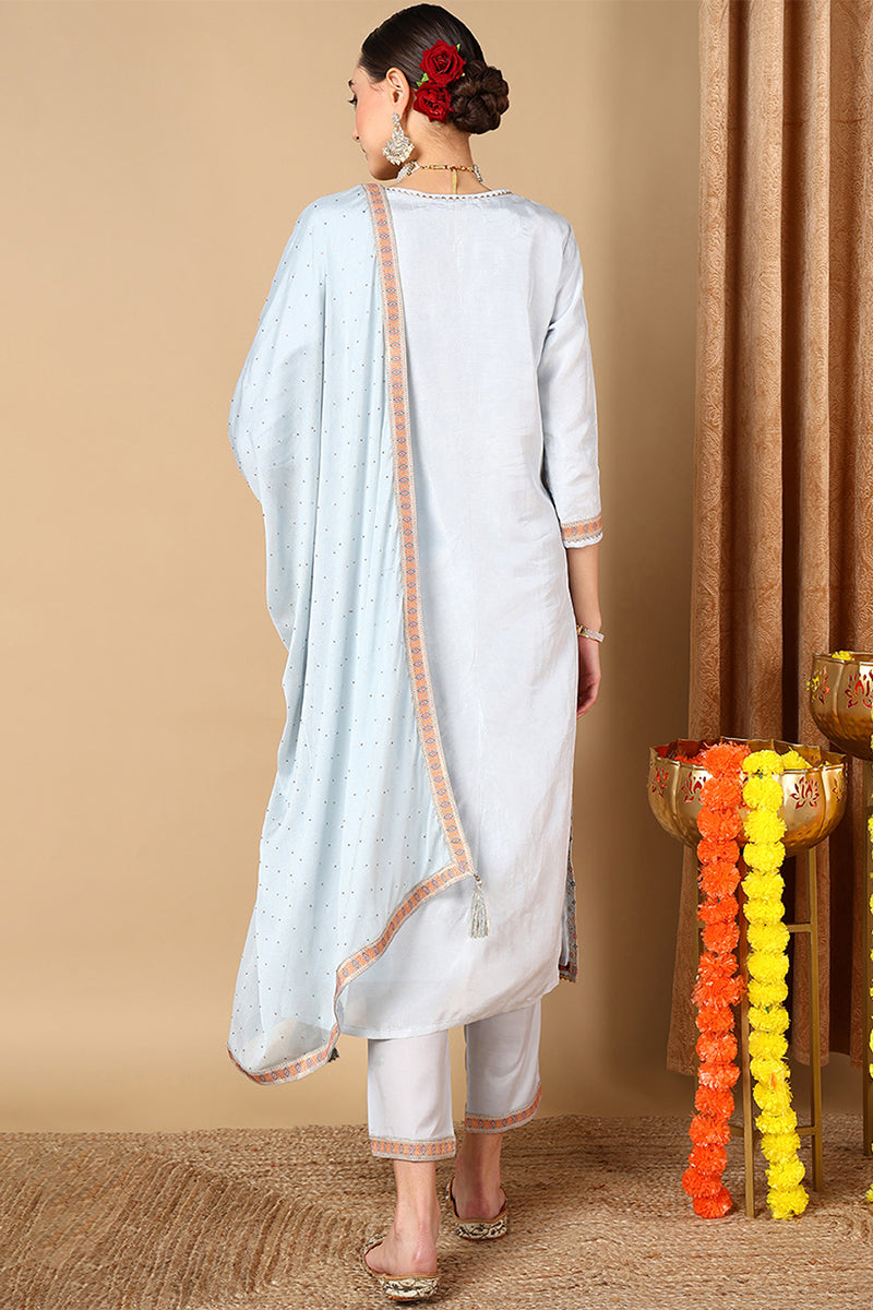 Silk Blend Ice-Blue Jacquard Festive Wear Suit Set