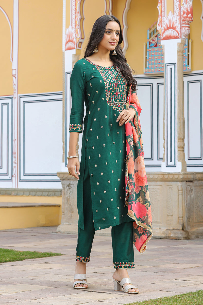 Emit Royal Vibes In This Green-Colored Suit Set.