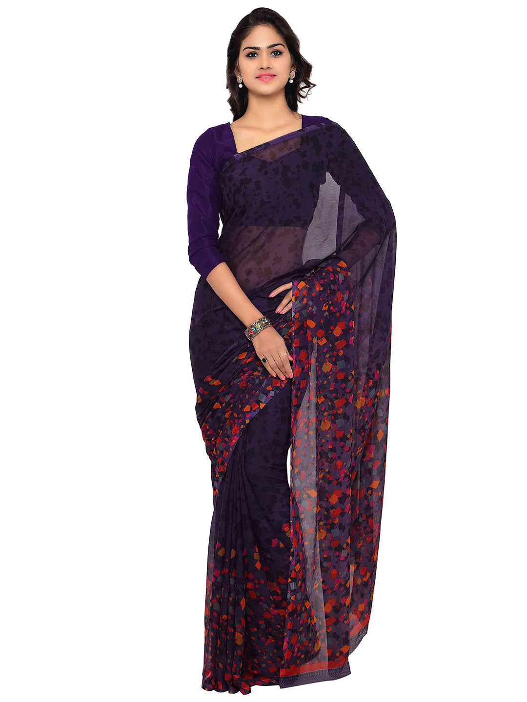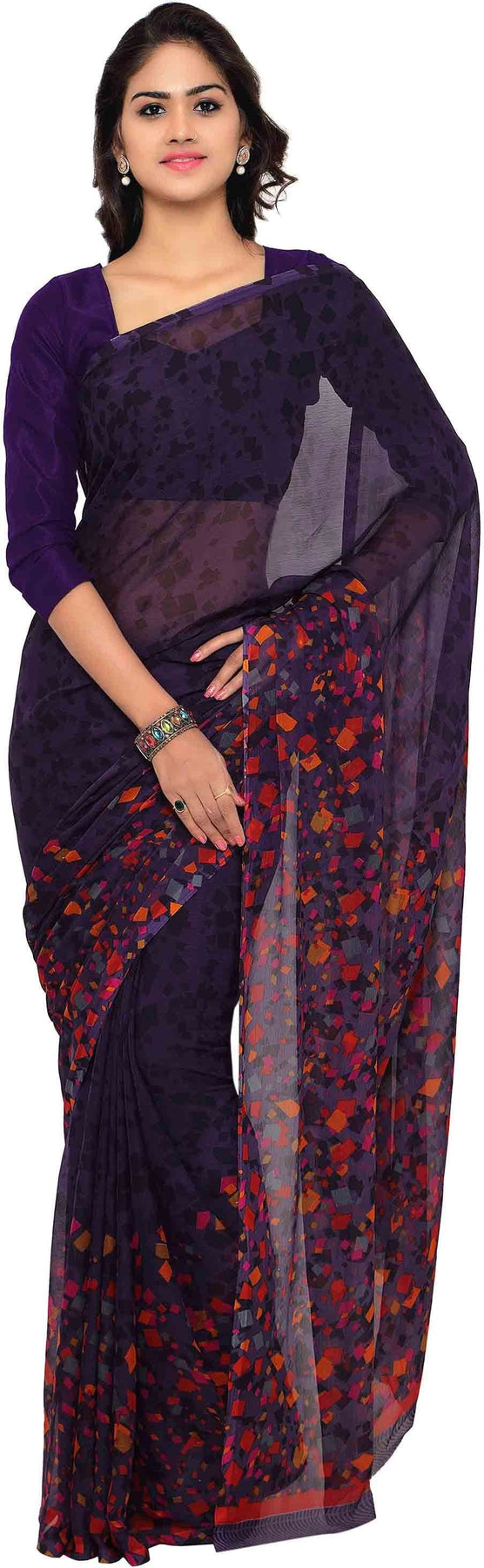Classy Saree Look Pretty Like Never Before.Wearing This Purple Color Saree Which Made From Chiffon With Purple Color Chiffon Blouse,Saree Has Also Decorative Work Like Printed.This Beautiful Saree Features A Classy Printed Work All Over,Which Makes It A Smart Pick For All Occasions. You Can Wear This Saree In Different Styles. You Can Wear It Occasionally Or Casually.
