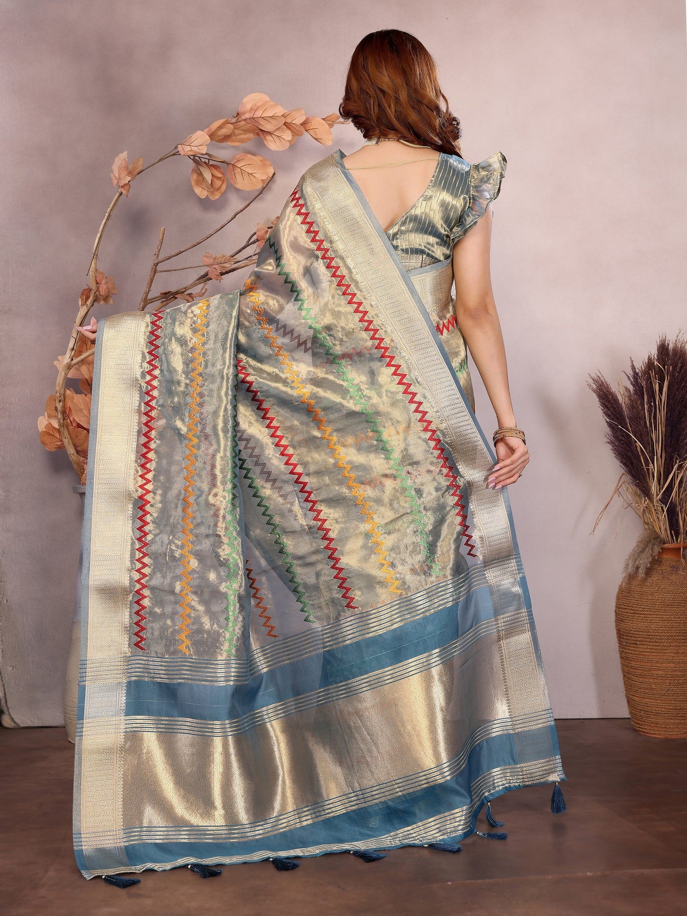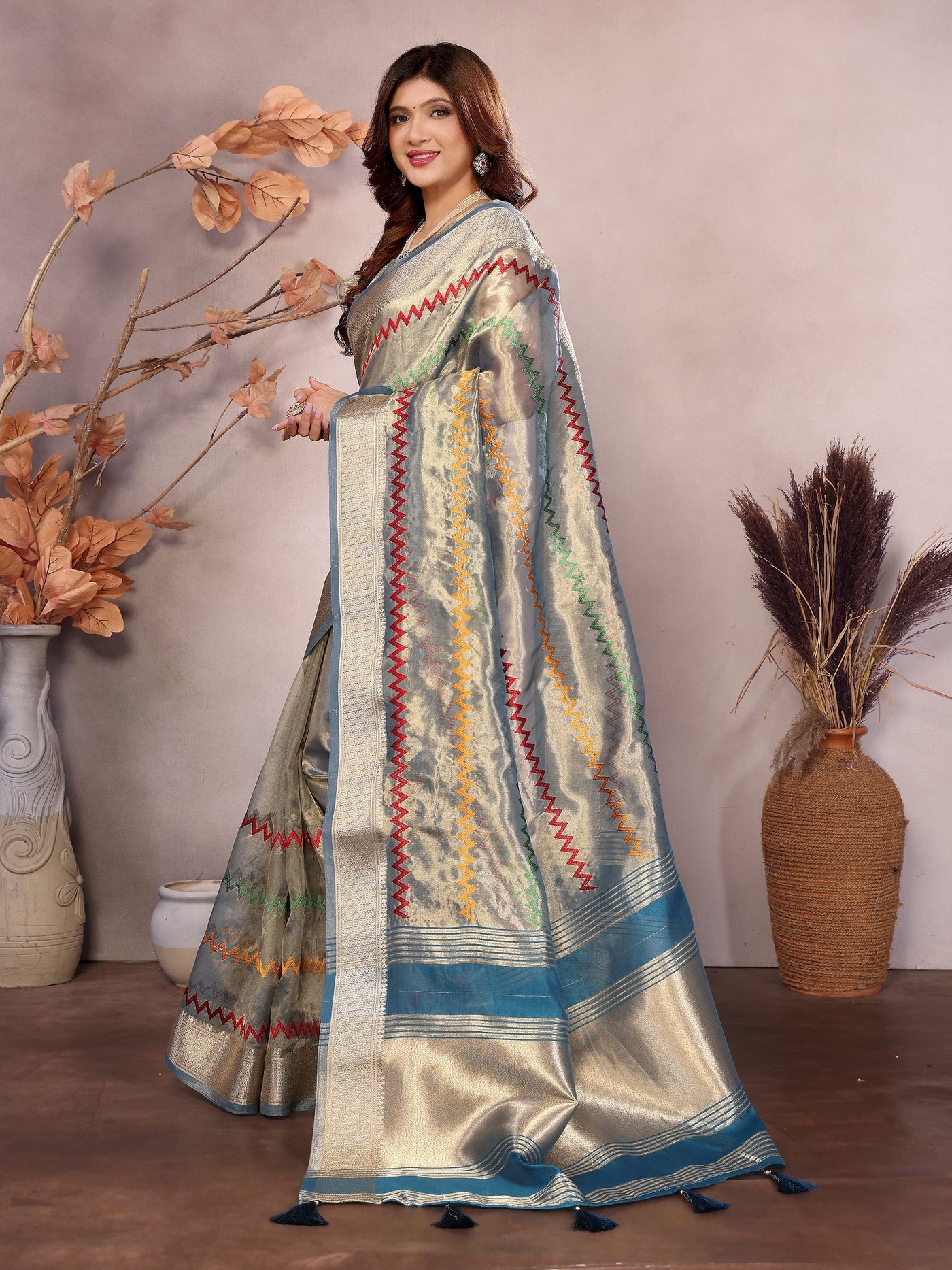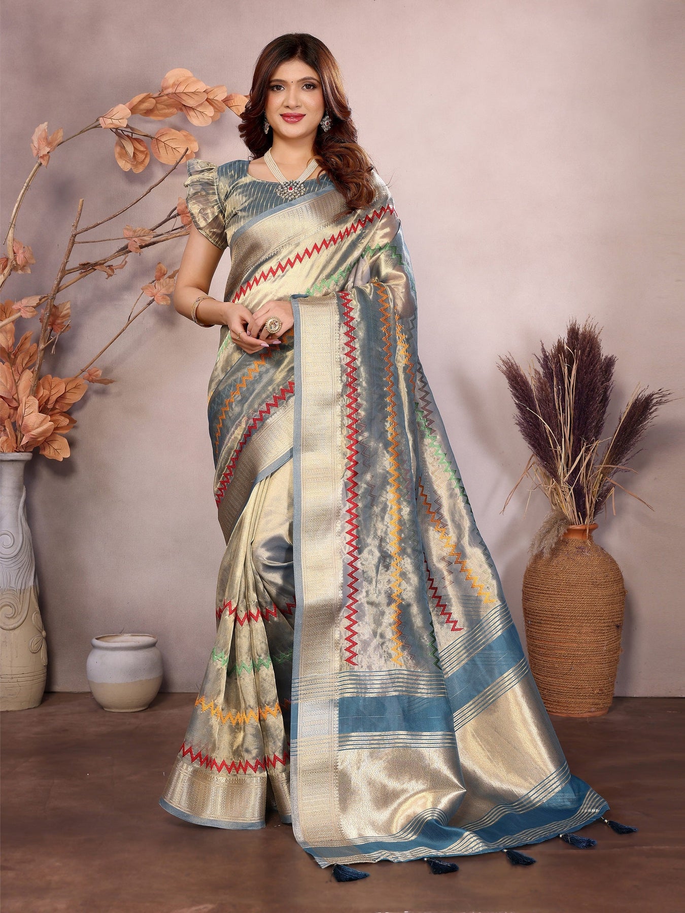 Party Wear Embroidery Worked Cotton Silk Saree With Un Stitched Blouse