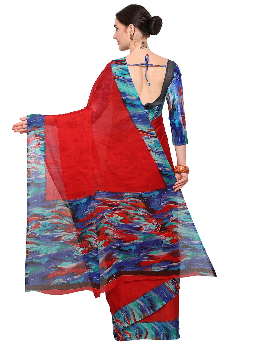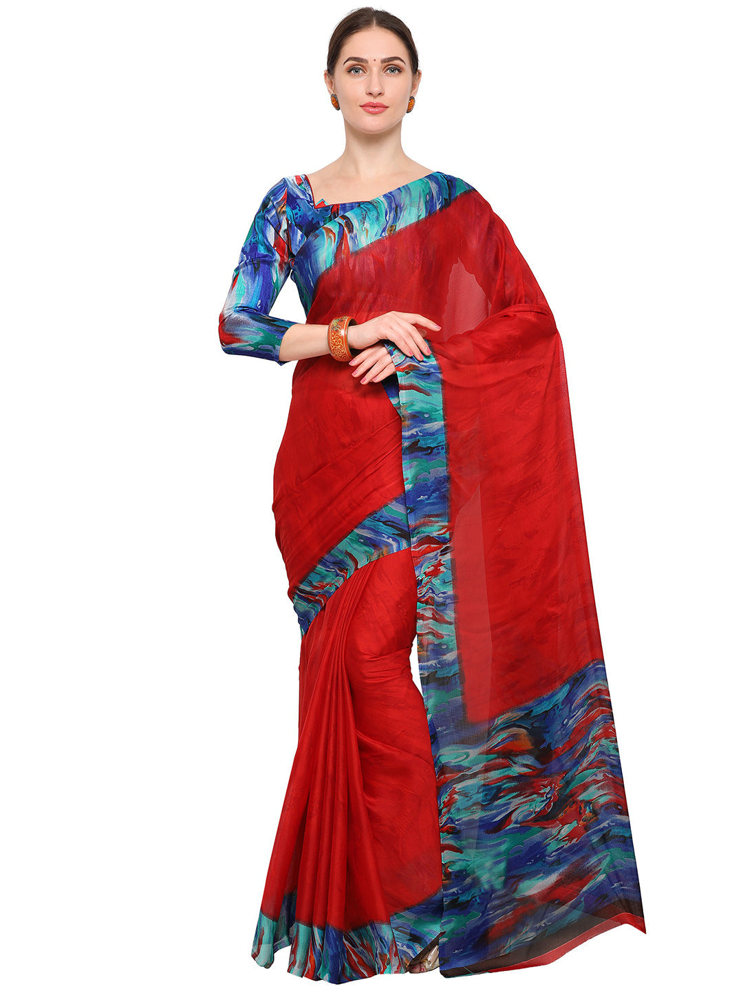 Classy Saree Look Pretty Like Never Before.Wearing This Red Color Saree Which Made From Chiffon With Red Color Chiffon Blouse,Saree Has Also Decorative Work Like Printed.This Beautiful Saree Features A Classy Printed Work All Over,Which Makes It A Smart Pick For All Occasions. You Can Wear This Saree In Different Styles. You Can Wear It Occasionally Or Casually.