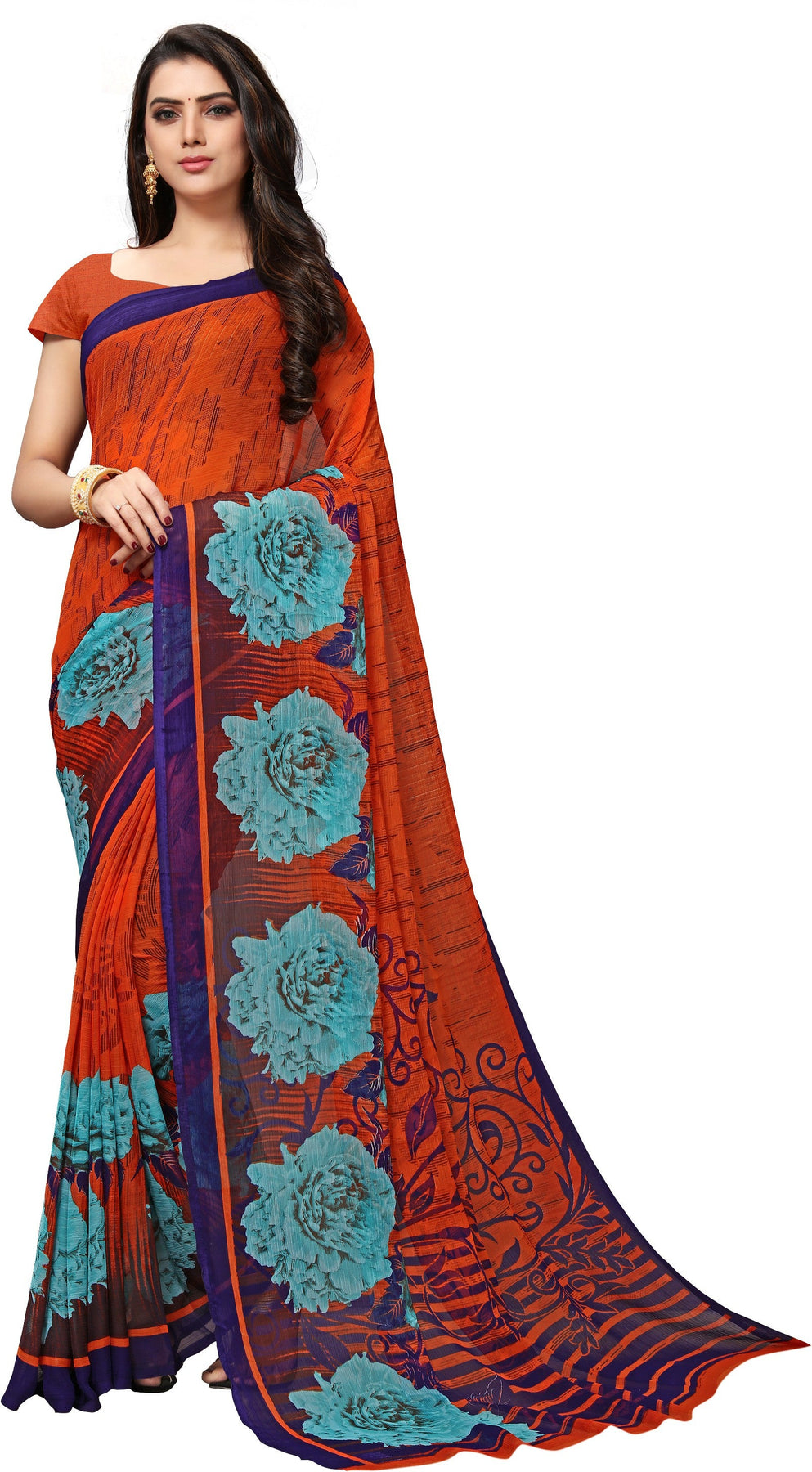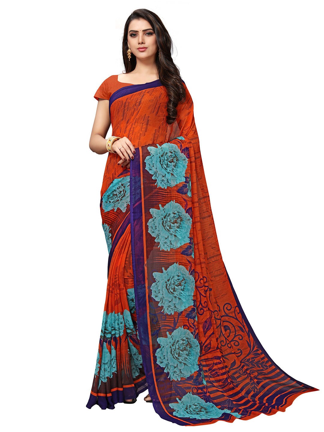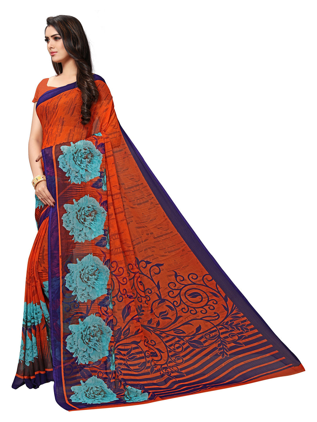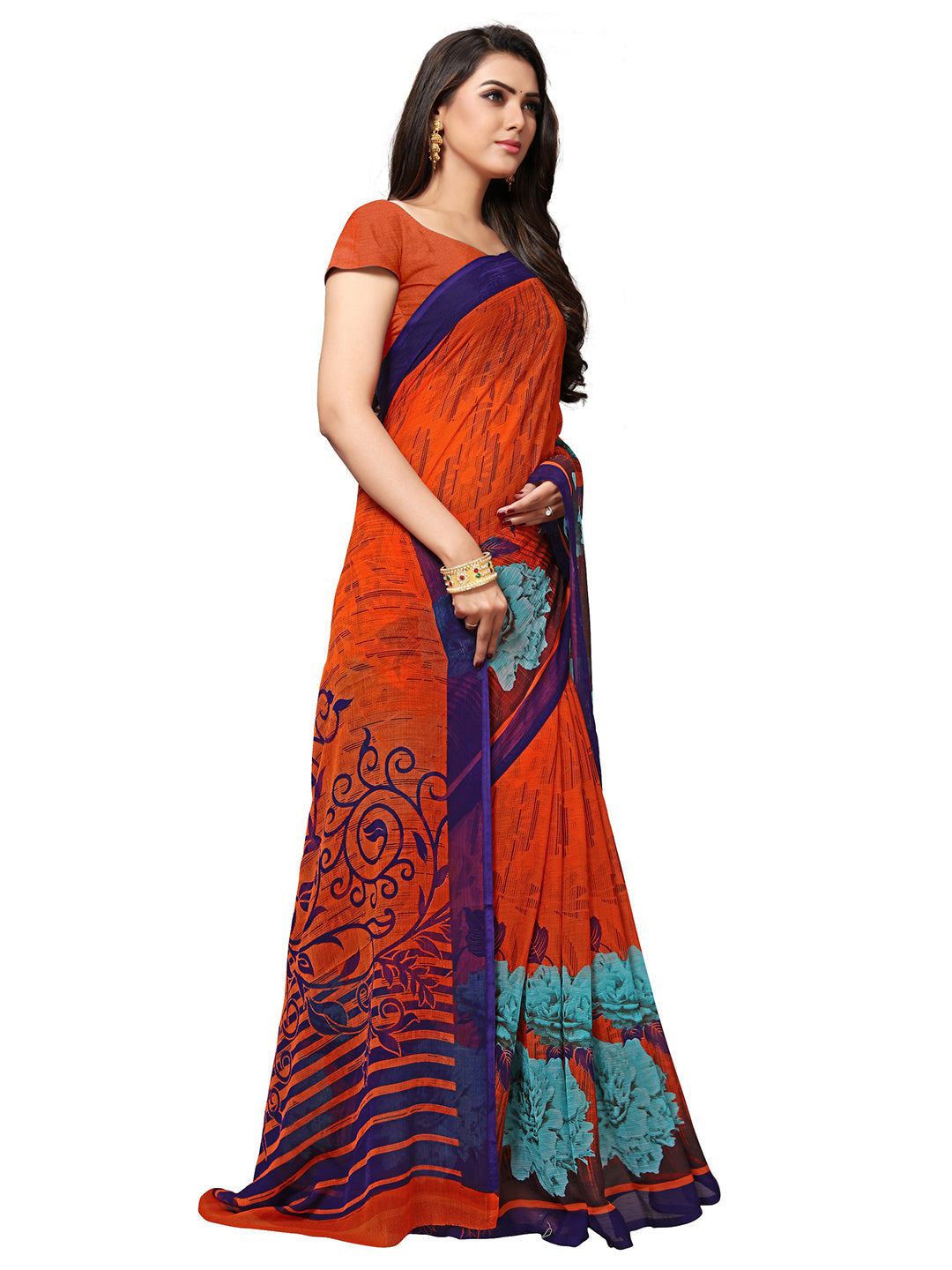 Classy Saree Look Pretty Like Never Before.Wearing This Orange Color Saree Which Made From Georgette With Orange Color Georgette Blouse,Saree Has Also Decorative Work Like Printed.This Beautiful Saree Features A Classy Printed Work All Over,Which Makes It A Smart Pick For All Occasions. You Can Wear This Saree In Different Styles. You Can Wear It Occasionally Or Casually.
