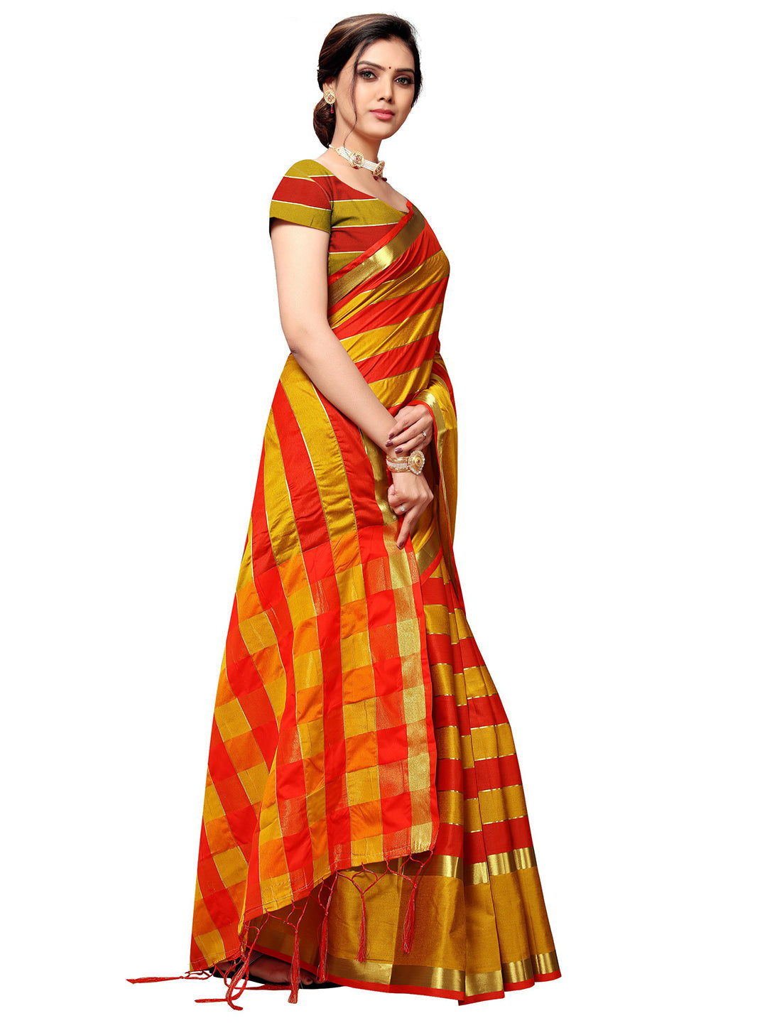 Classy Saree Look Pretty Like Never Before.Wearing This Gold Color Saree Which Made From Art Silk With Gold Color Art Silk Blouse,Saree Has Also Decorative Work Like Printed.This Beautiful Saree Features A Classy Printed Work All Over,Which Makes It A Smart Pick For All Occasions. You Can Wear This Saree In Different Styles. You Can Wear It Occasionally Or Casually.