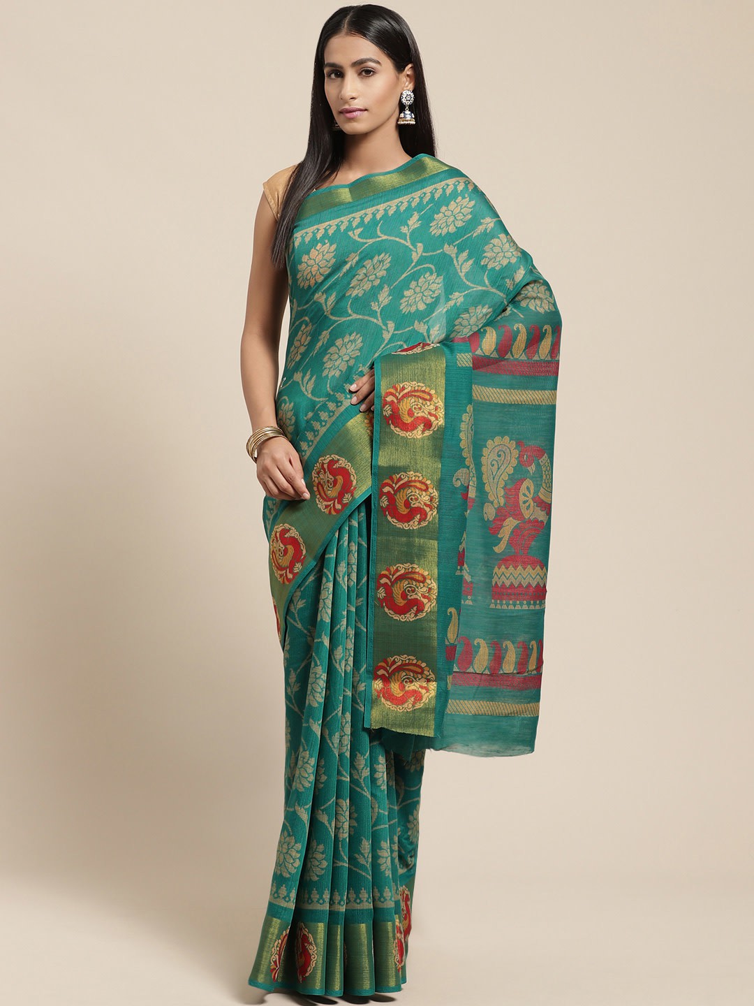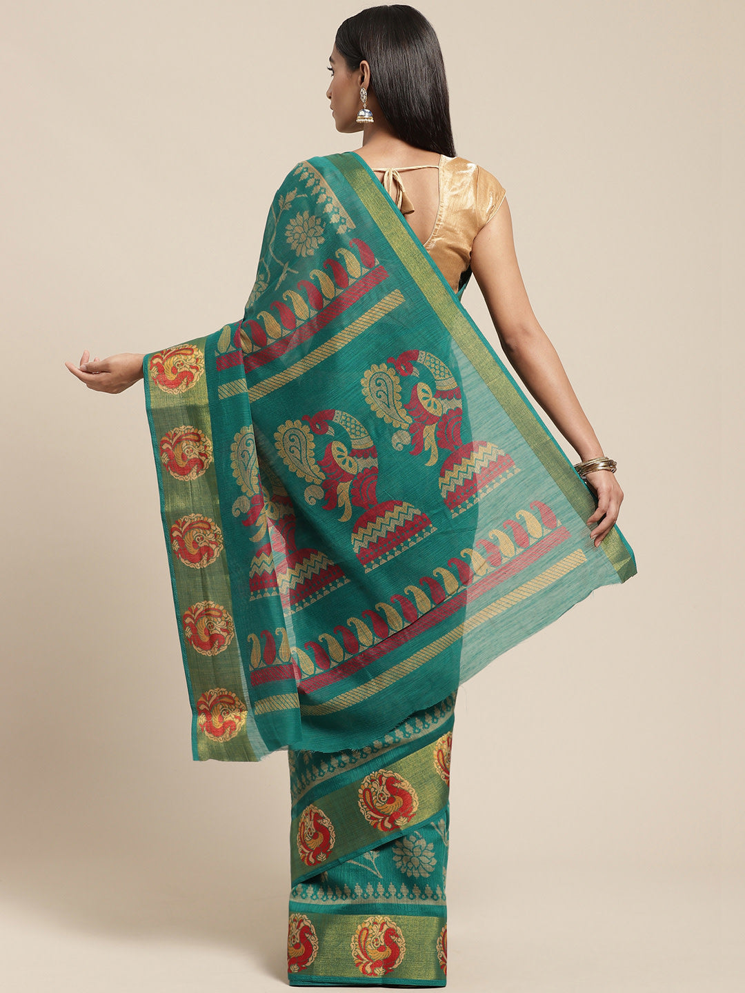 Classy Saree Look Pretty Like Never Before.Wearing This Green Color Saree Which Made From Cotton Blend With Green Color Cotton Blend Blouse,Saree Has Also Decorative Work Like Printed.This Beautiful Saree Features A Classy Printed Work All Over,Which Makes It A Smart Pick For All Occasions. You Can Wear This Saree In Different Styles. You Can Wear It Occasionally Or Casually.