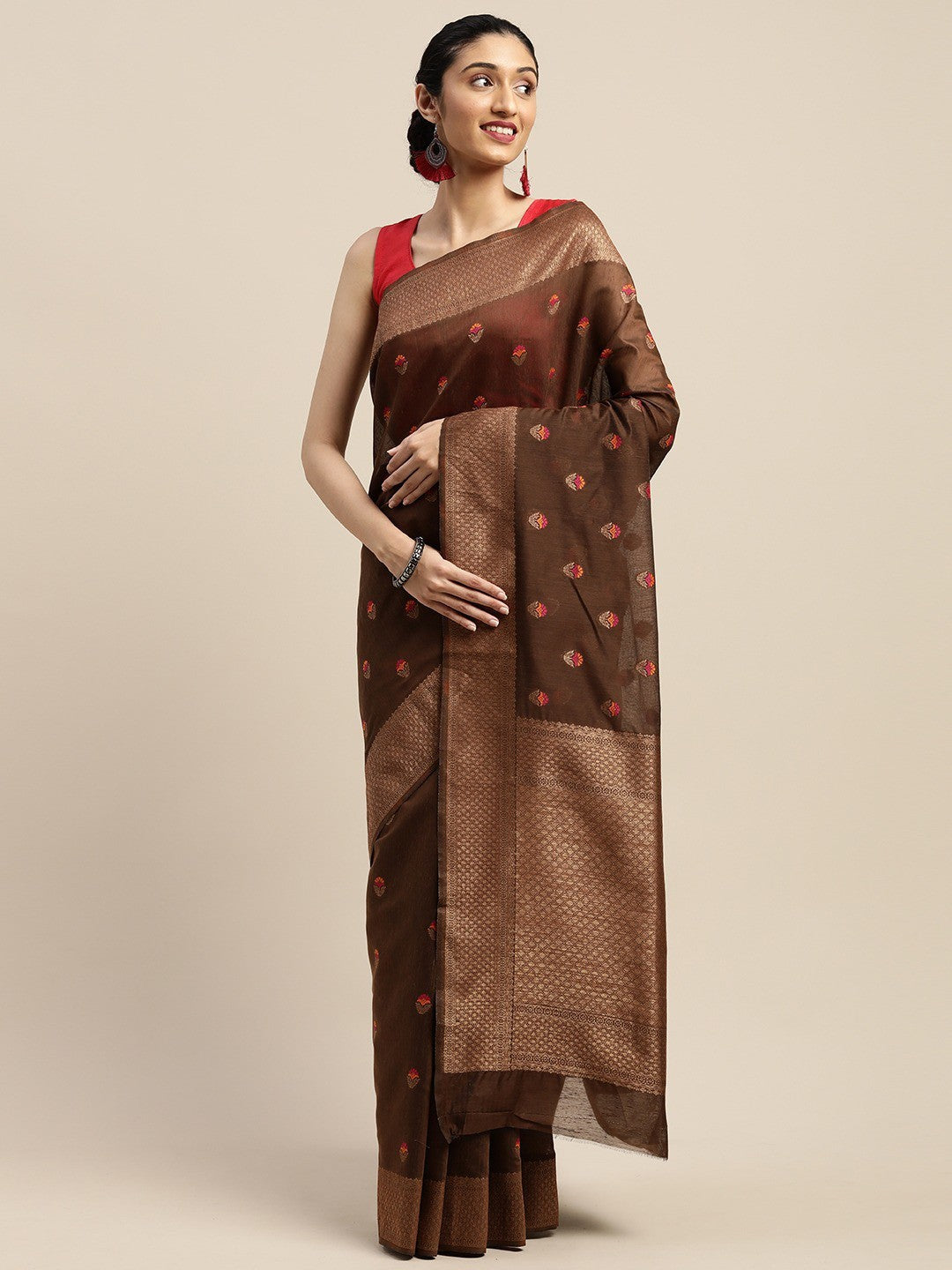 Classy Saree Look Pretty Like Never Before.Wearing This Brown Color Saree Which Made From Art Silk With Brown Color Art Silk Blouse,Saree Has Also Decorative Work Like Printed.This Beautiful Saree Features A Classy Printed Work All Over,Which Makes It A Smart Pick For All Occasions. You Can Wear This Saree In Different Styles. You Can Wear It Occasionally Or Casually.