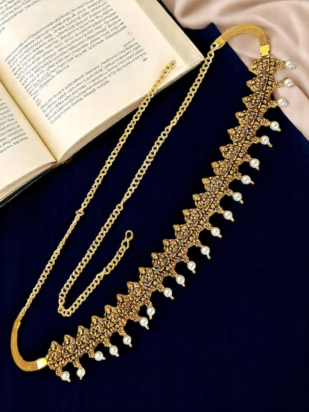 Women's Gold Plated Temple Design Waist Chain Kamarbandh