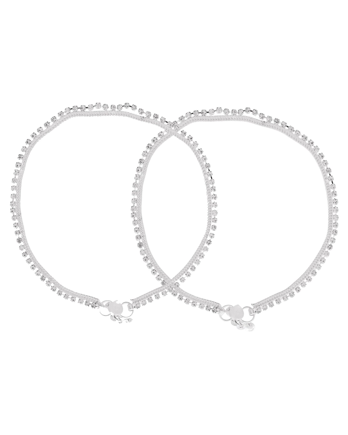 Enhance Your Style With This Exquisite Silver-Plated Anklet Adorned With Dazzling Rhinestones. Featuring A Sleek And Wavy Design, This Anklet Adds A Touch Of Sophistication To Any Outfit. Perfect For Casual, Festive, And Party Wear, It Complements Both Ethnic And Western Looks Effortlessly. Crafted With High-Quality Materials, It Is Lightweight, Durable, And Comfortable For All-Day Wear. A Must-Have Accessory For Fashion Lovers And A Great Gift Option For Special Occasions Like Weddings, Birthdays, And Anniversaries.