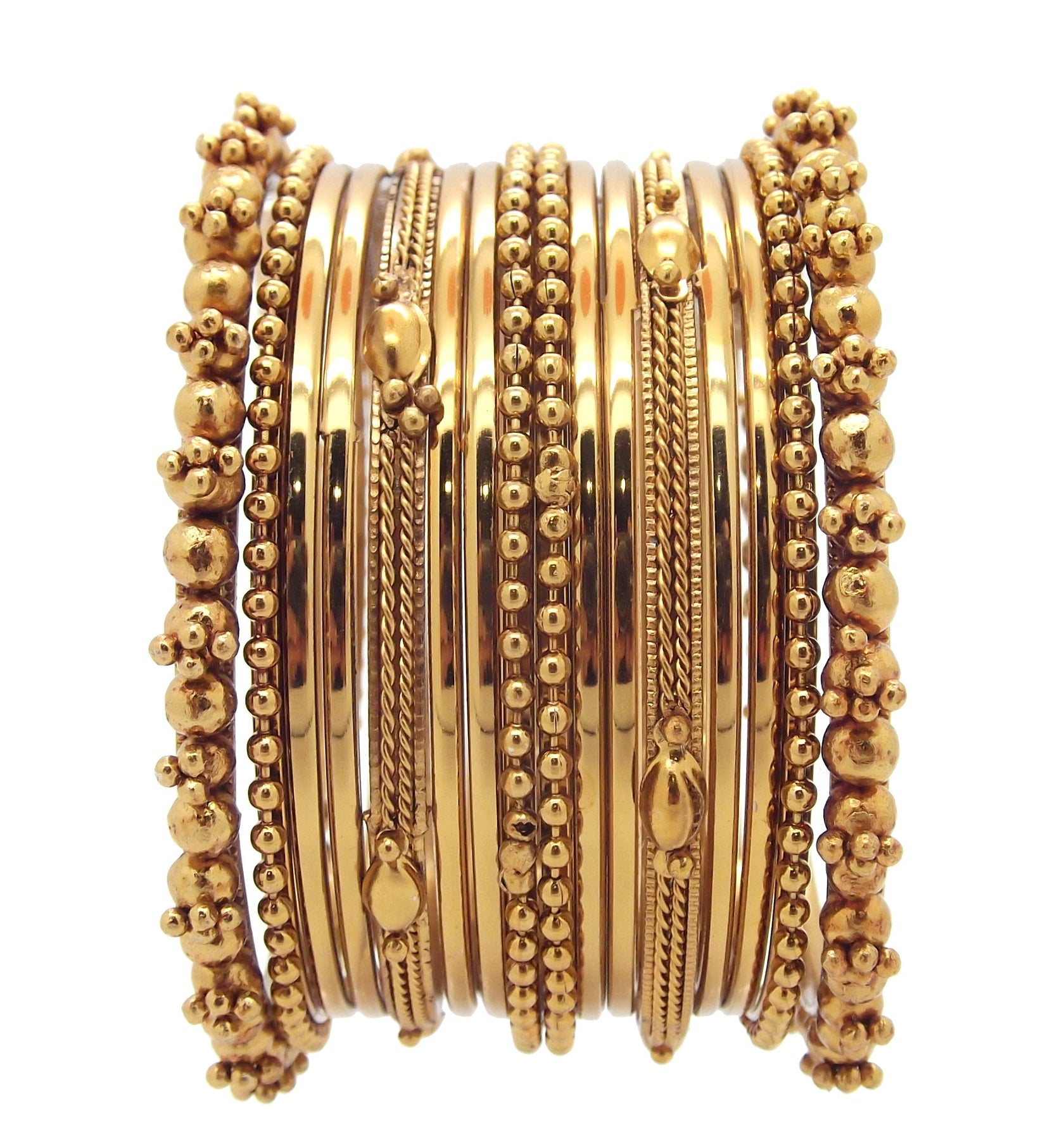 Women's Gold Oxidised Traditional 16 Pcs Bangles Set (Gold_100Gm_2.8)