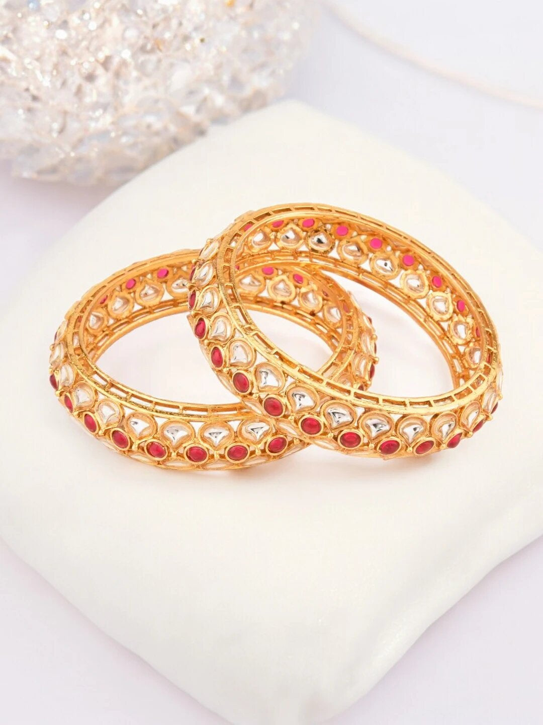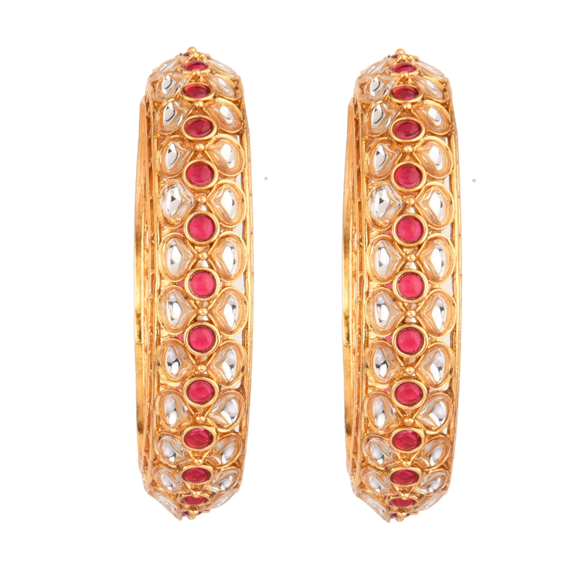 Women's Royal Ruby Splendor: Gold-Plated Ruby Stone With Kundan 2 Piece Kada Bangle Set