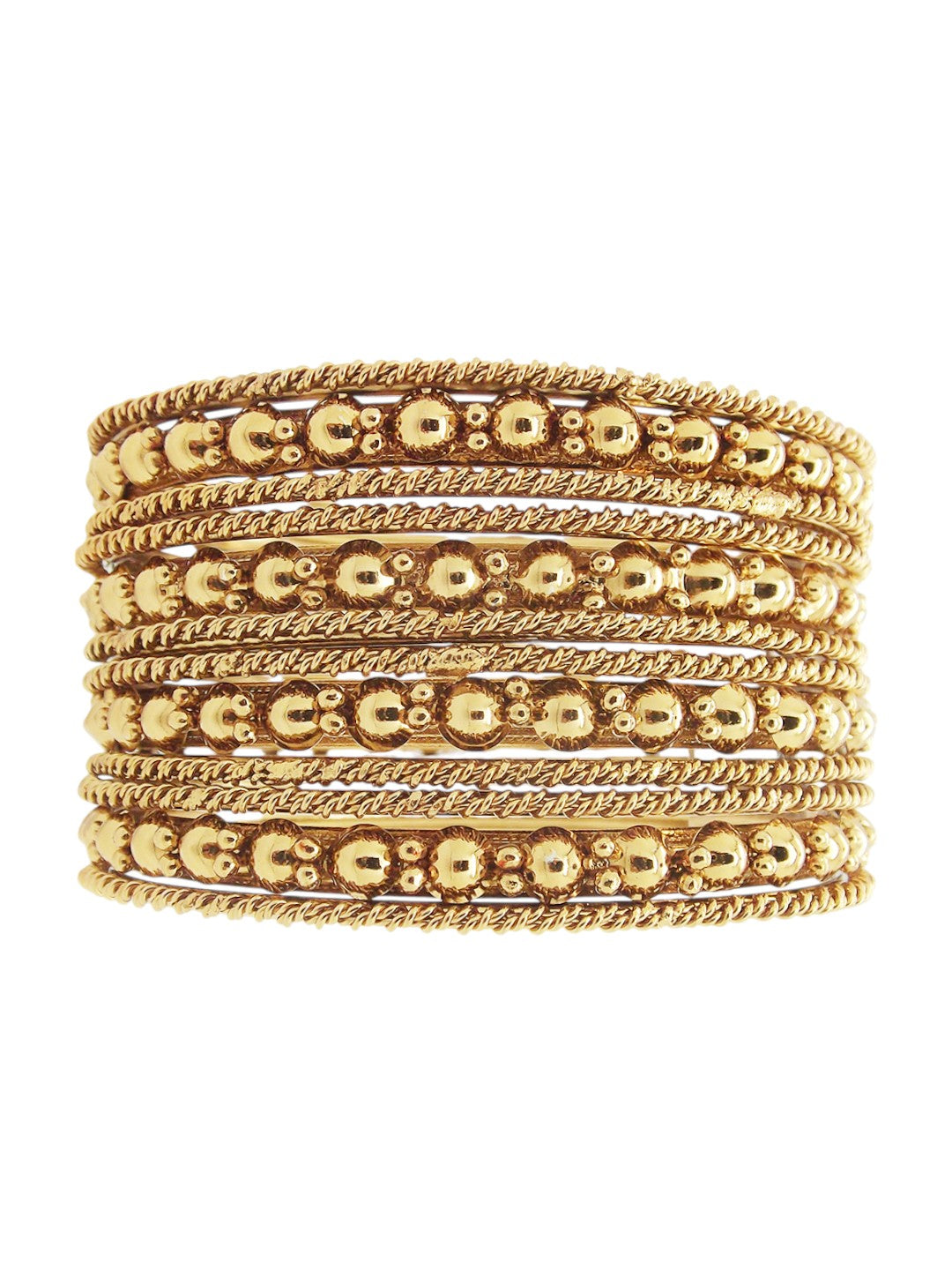 The Set Of 12 Gold Plated Bangles Is A Timeless And Elegant Accessory Designed To Enhance Any Outfit With A Touch Of Traditional Charm. Crafted With High-Quality Gold Plating, These Bangles Offer A Smooth, Radiant Finish That Exudes Sophistication. The Classic Design Makes Them Versatile For Both Everyday Wear And Special Occasions. Whether Worn As A Complete Set For A Bold Stacked Look Or Mixed With Other Bangles For A Personalized Style, These Bangles Are Perfect For Women And Girls Who Appreciate Traditional Jewelry. Ideal For Weddings, Festivals, Parties, And Cultural Celebrations, This Set Adds A Graceful And Refined Touch To Any Ensemble. Lightweight And Comfortable, These Bangles Are Perfect For All-Day Wear.