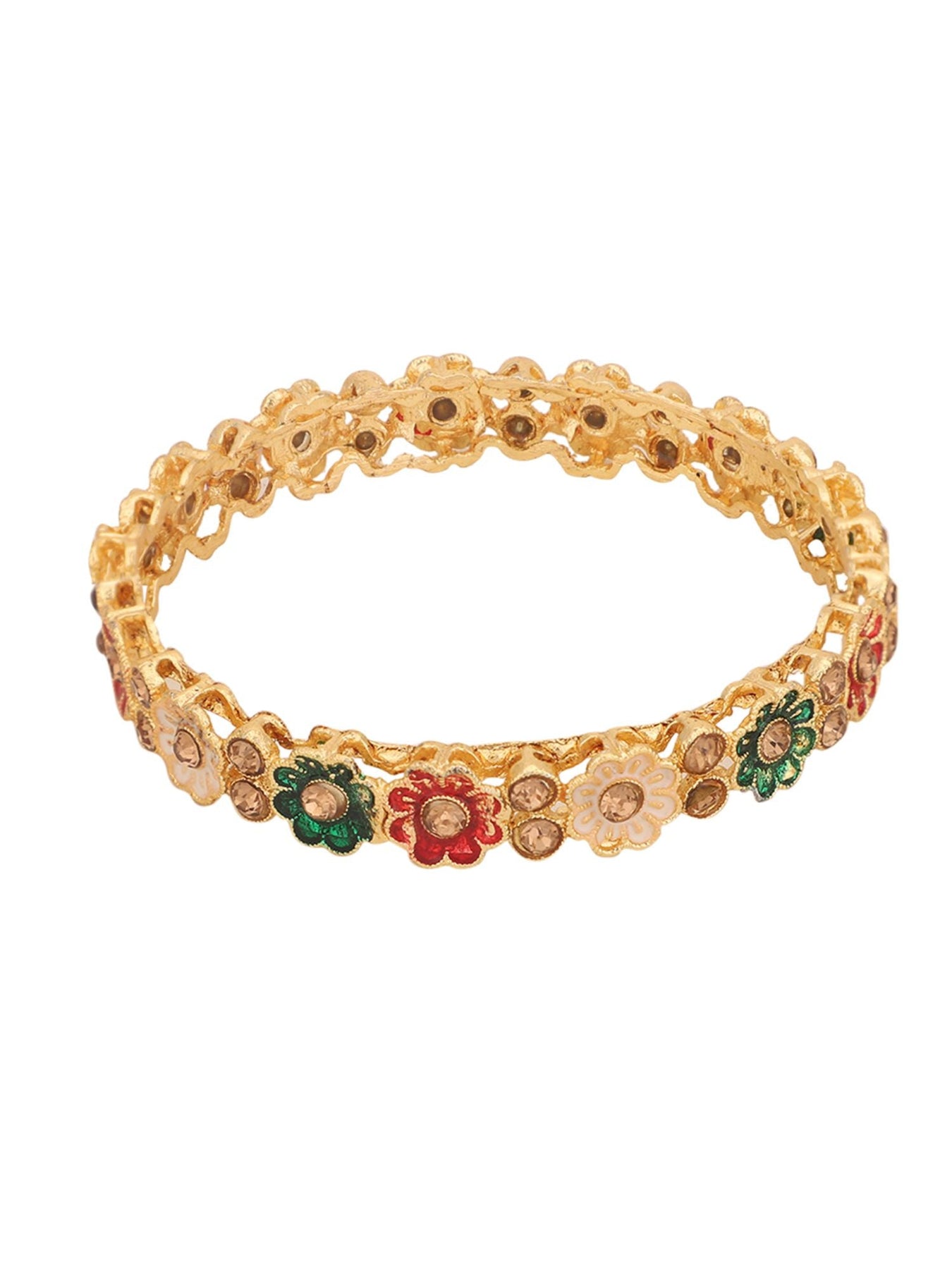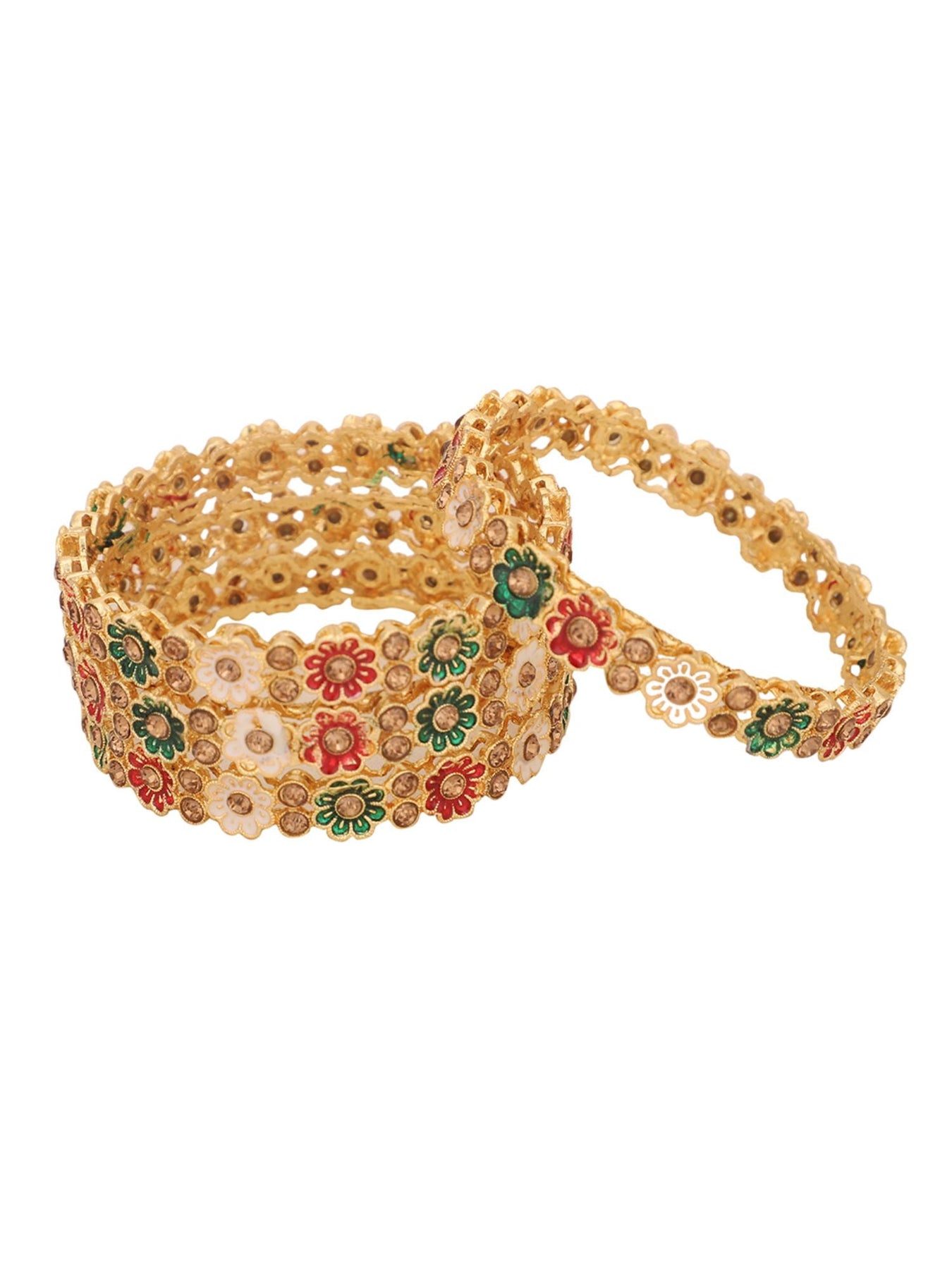 Festive Gold Plated Bangles With Enamelled And Stone Embellishments , Secured With No Closure And Available In Different Sizes