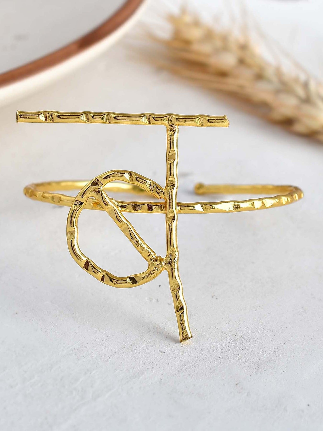 Akshar Bracelet 17 Color :Gold Material :Brass Closure :Hoop Care Instructions :Keep Away From Moisture Weight :0.5G