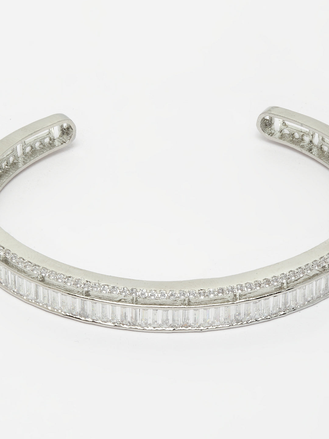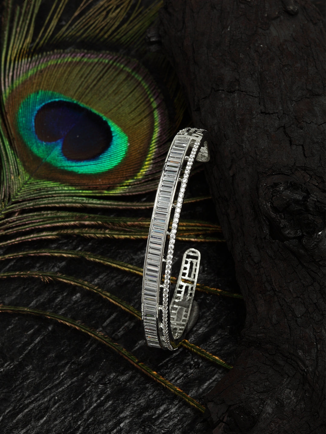 Silver & None Bracelet With American Diamonds & Natuaral Stones; Category Of Jewellery Is Hand Jewellery; Sub Category Is Bracelets; Ideal For Women; Base Color Is Silver; Gemstones Used - American Diamonds, Natuaral Stones, Semi Precious Stones; Plating Is Silver-Plated; Base Metal Is Alloy; Other Material Used - None; Size Is 2.6; Adjustable - No; Weight Is Gms; Mesaurements - Width Of Bracelet = 1.2 Cm; Diameter Of Bracelet =6.03 Cm; Circumference Of Bracelet = 18.95 Cm; Content 1 Bracelet
