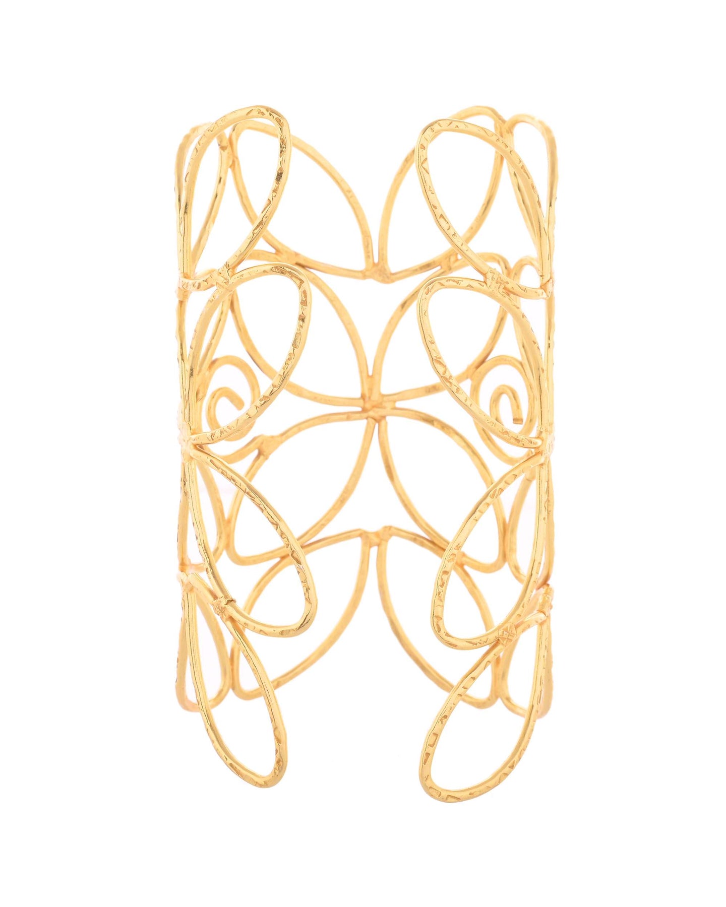 Step Into The Spotlight With This Statement Gold Cutout Leaf Cuff Bracelet, A Bold And Artistic Piece Designed To Turn Heads. With Its Intricate Openwork Detailing Inspired By Organic Leaf Motifs And Delicate Swirls, This Oversized Bracelet Exudes Elegance And A Free-Spirited Boho Charm. The Textured Gold-Tone Finish Gives It A Luxe Handcrafted Appeal, Making It The Perfect Accessory For Weddings, Festive Looks, Or To Elevate A Plain Outfit Into A Fashion-Forward Ensemble. Lightweight Yet Dramatic, This Statement Cuff Is Ideal For Modern Women Who Love Standout Accessories.