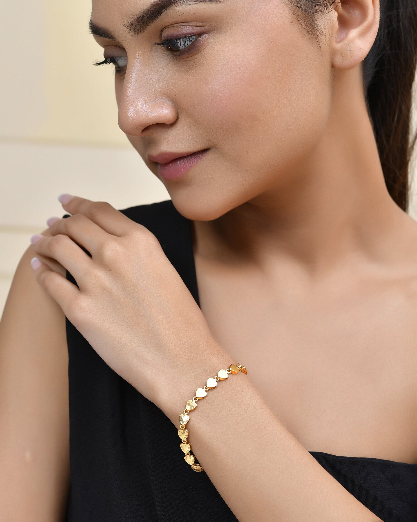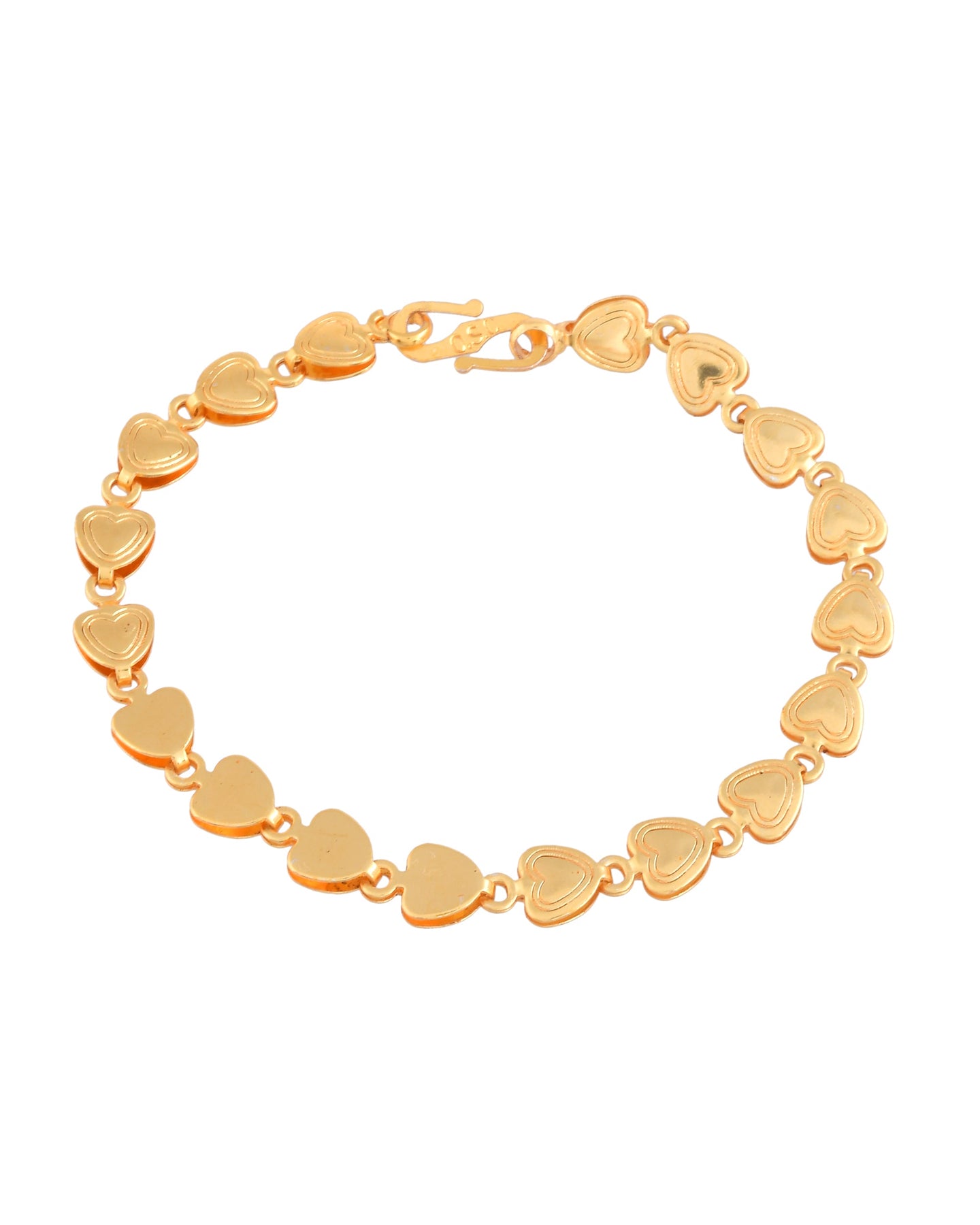 This Stunning Fancy Gold Bracelet Features Intricate Heart-Shaped Links, Offering A Unique And Elegant Design That Adds Charm To Any Outfit. Crafted With High-Quality Materials, It Has A Brilliant Polished Finish That Enhances Its Luxurious Appeal. Ideal For Special Occasions, Gifting, Or Everyday Wear, This Bracelet Embodies Sophistication And Timeless Beauty. A Must-Have Addition To Any Jewelry Collection!