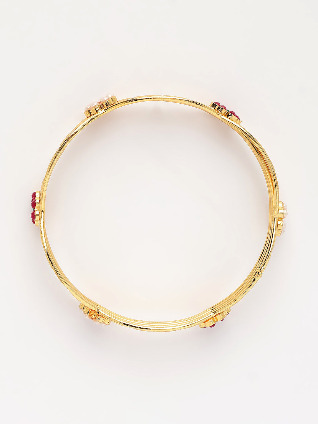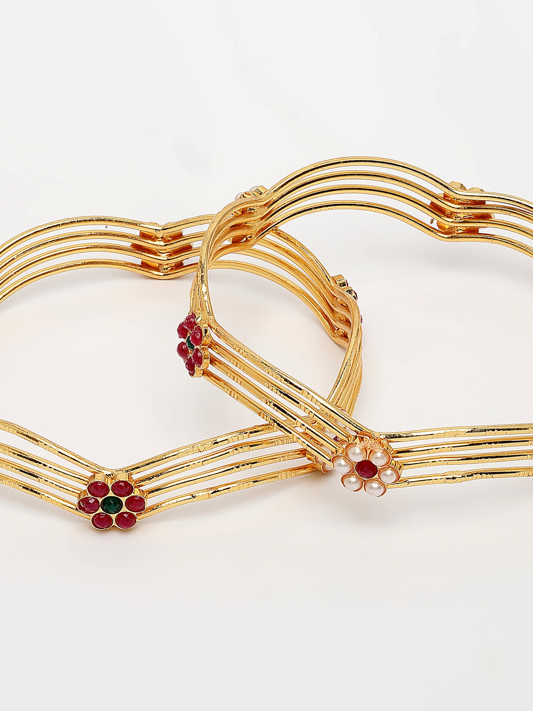 Women's Set Of 2 Gold-Plated Artificial Stones Traditional Bangles