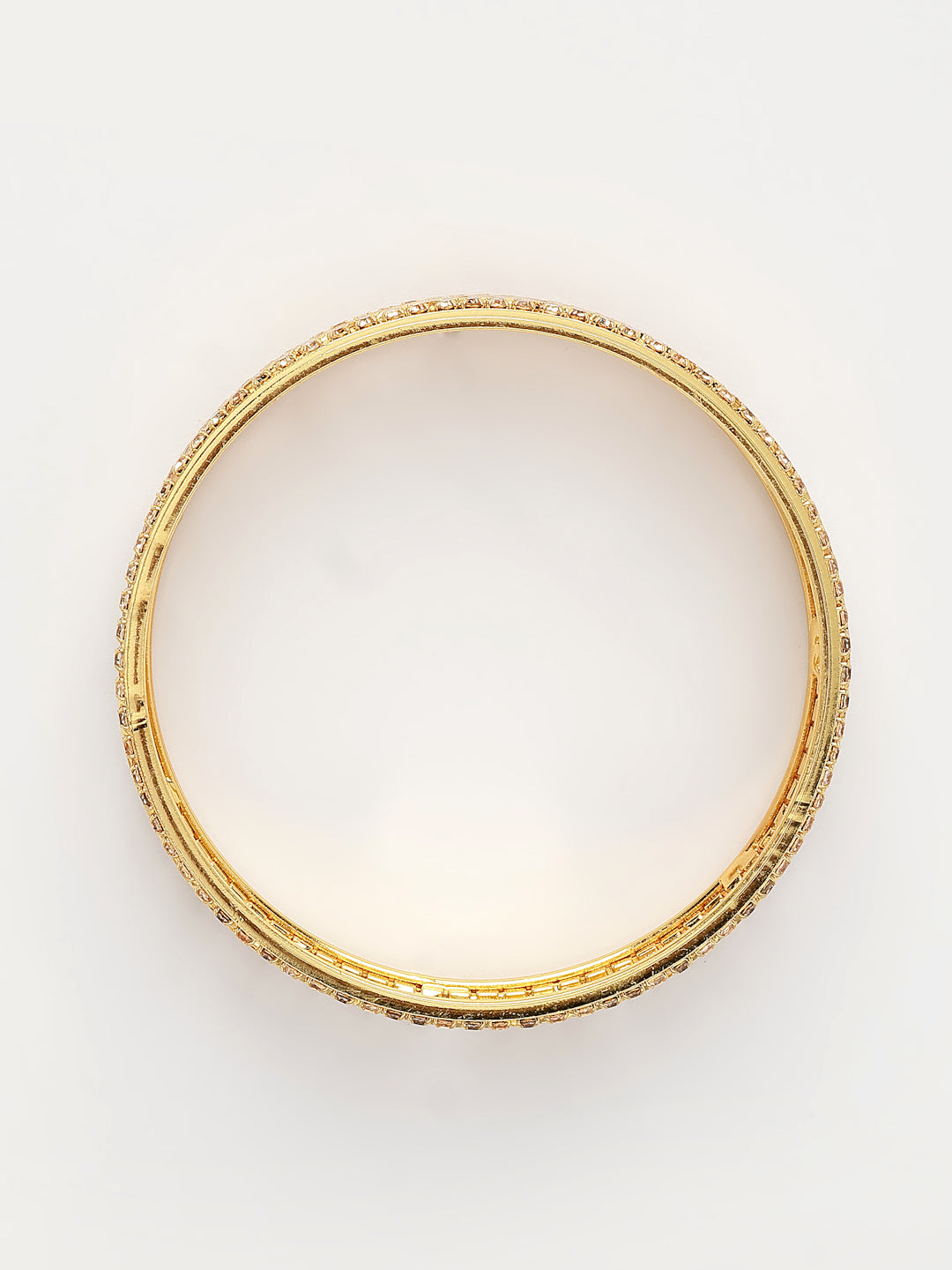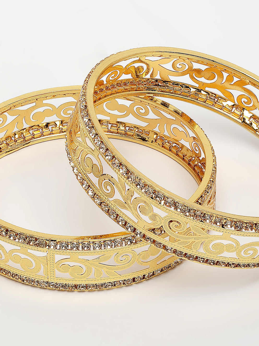 Style Note: Elevate Your Style With The Nvr Women'S Set Of 2 Gold-Plated Cubic Zirconia Stone Studded Kada Bangles. Featuring A Luxurious Gold-Plated Finish And Sparkling Cz Stones, These Kada Bangles Exude Sophistication And Glamour. Their Bold Yet Elegant Design Makes Them Perfect For Festive Occasions, Weddings, And Grand Celebrations. Wear Them Solo For A Statement Look Or Pair Them With Other Accessories For A Layered Effect. Lightweight And Meticulously Crafted, They Ensure Comfort Without Compromising On Style. These Bangles Are A Perfect Blend Of Tradition And Modernity, Making Them A Timeless Addition To Your Jewelry Collection.
