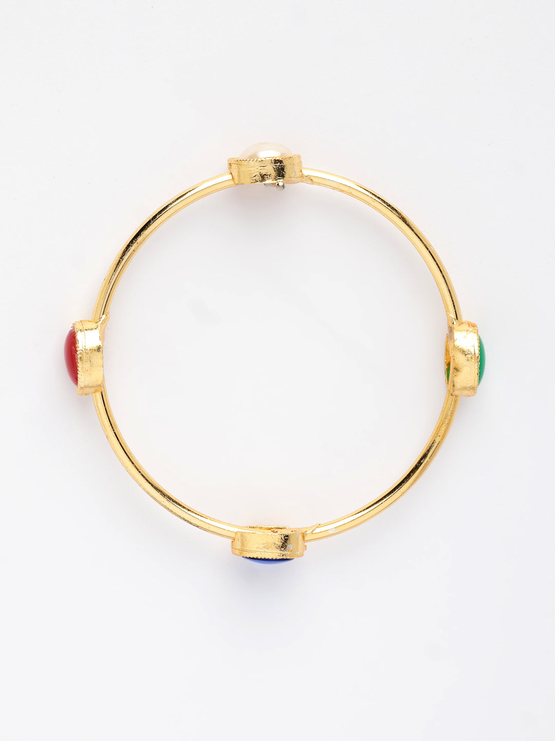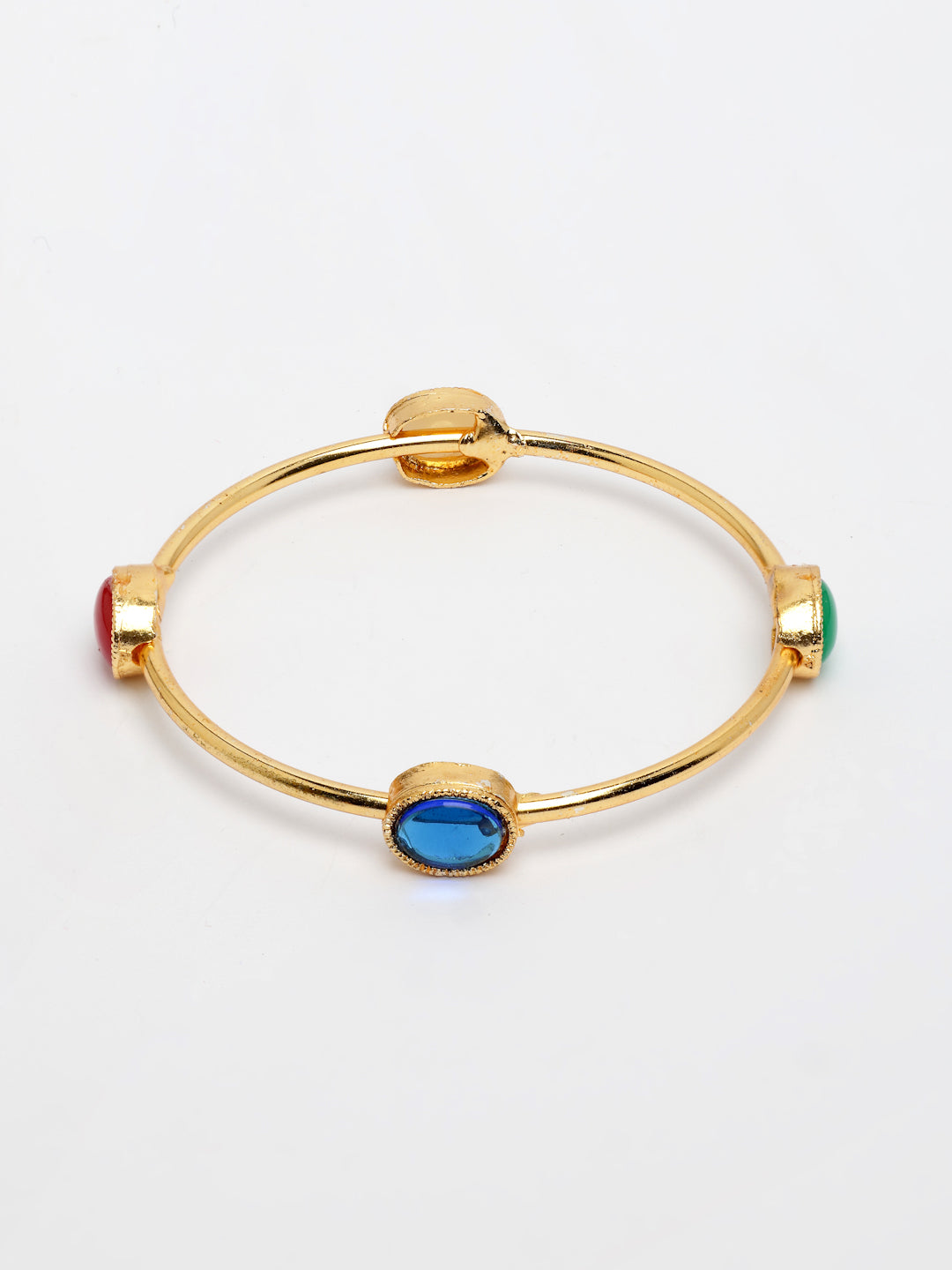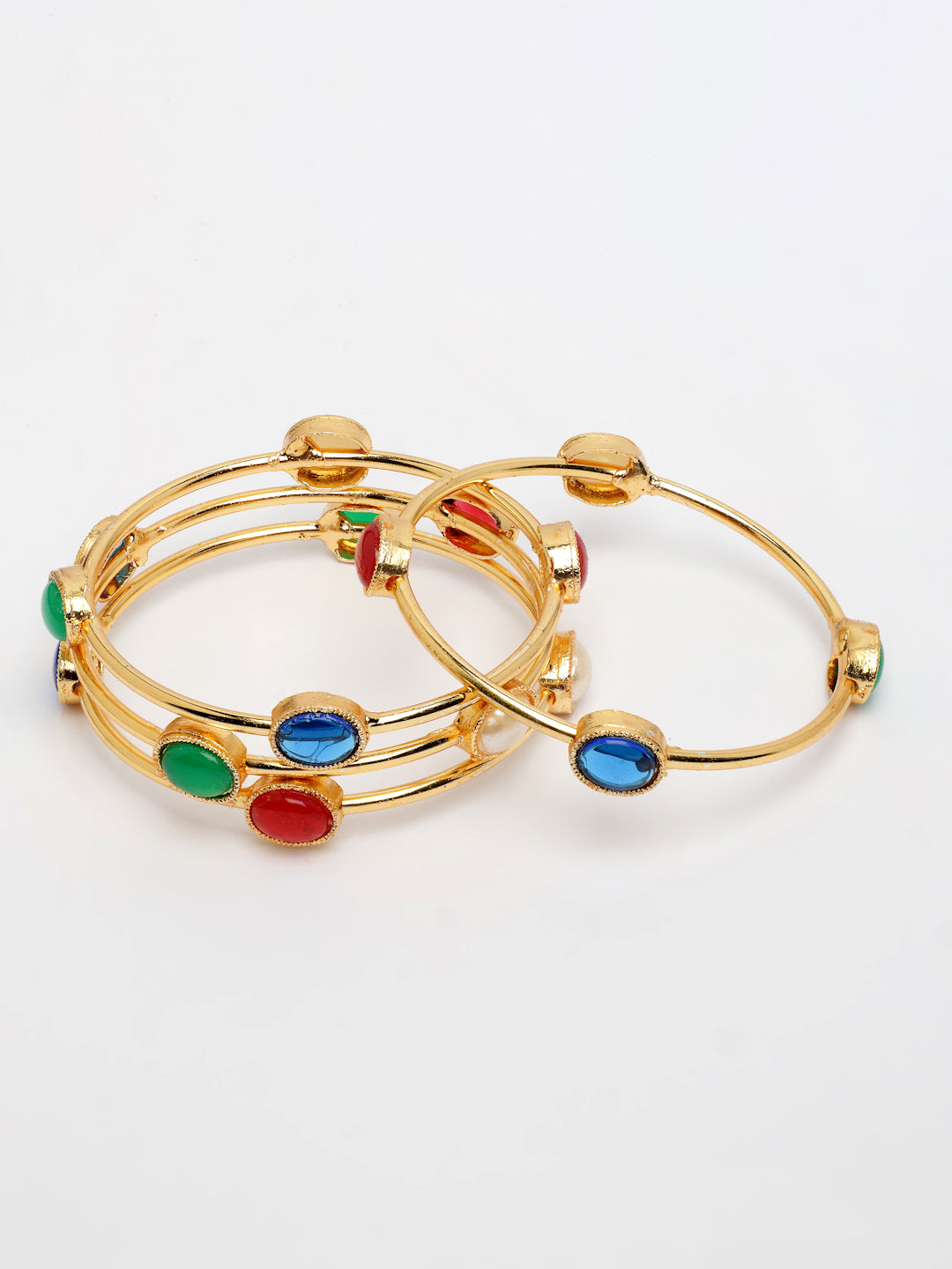 Style Note: Enhance Your Traditional Look With The Nvr Women'S Set Of 4 Gold-Plated Artificial Stone Studded Bangles. These Bangles Feature A Radiant Gold-Plated Finish, Complemented By Vibrant Artificial Stones That Add A Pop Of Color And Elegance. The Set’S Intricate Design Makes It Perfect For Weddings, Festivals, And Special Occasions, Offering A Blend Of Sophistication And Charm. Wear Them Individually For A Delicate Touch Or Stack Them Together For A Bolder Statement. Lightweight And Comfortable, These Bangles Are Versatile Enough To Complement Both Ethnic And Contemporary Outfits. A Timeless Addition To Any Jewelry Collection.