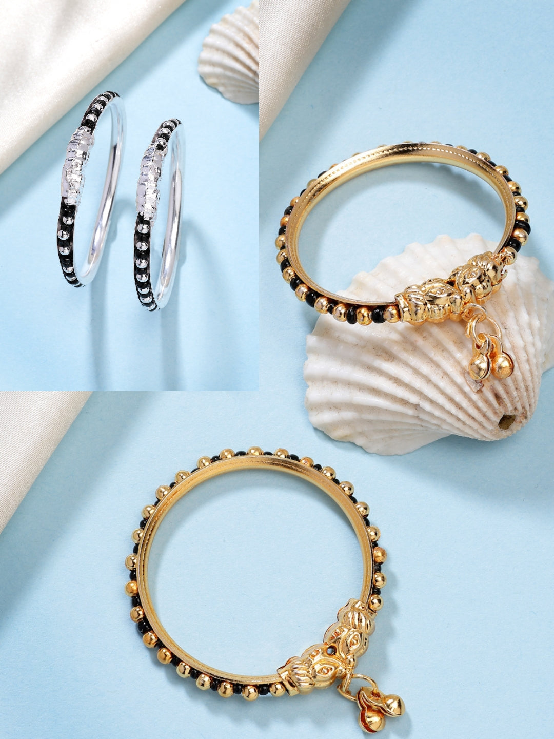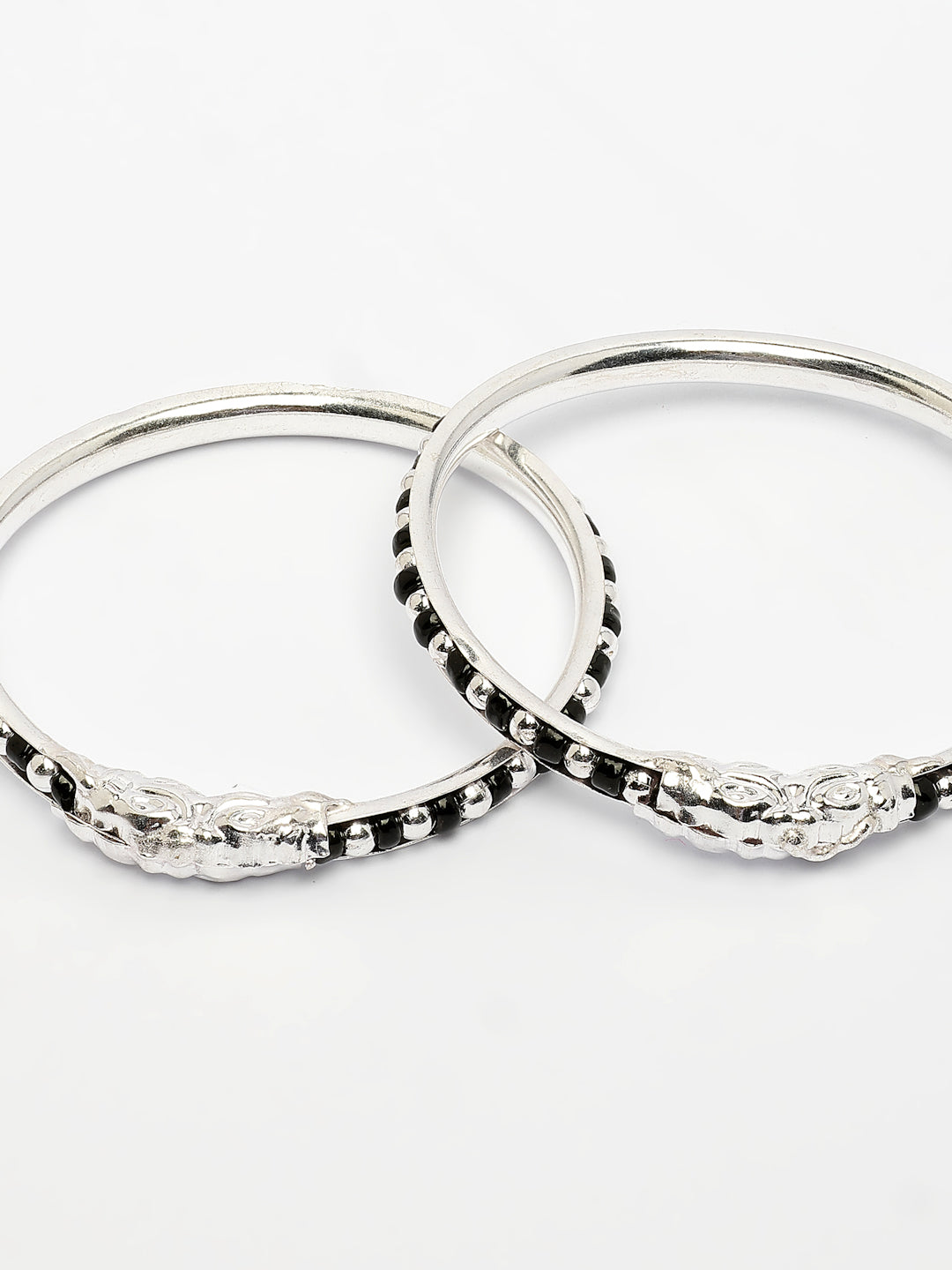 Kids Pair Of 2 Rhodium-Plated Artificial Beads Nazariya Kada Bracelet