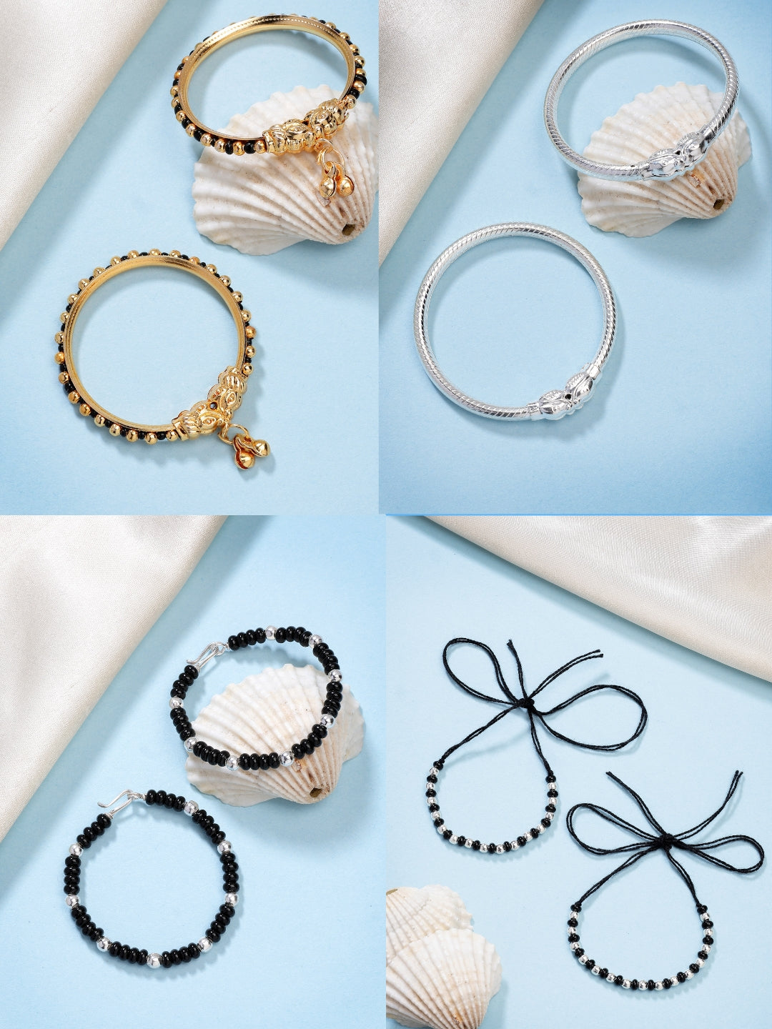 Style Note: Add A Vibrant And Protective Accessory To Your Child'S Collection With The Nvr Kids Pair Of 4 Rhodium-Plated Artificial Beads Nazariya Kada Bracelets. These Kada Bracelets Feature A Rhodium-Plated Finish And Are Adorned With Colorful Artificial Beads, Offering A Playful Yet Elegant Design. The Nazariya Symbol, Known For Providing Protection And Positive Energy, Makes Them Both Meaningful And Stylish. Lightweight And Comfortable, These Bracelets Are Perfect For Everyday Wear Or Special Occasions. A Beautiful Blend Of Tradition And Modern Style, These Bracelets Are A Thoughtful And Charming Accessory For Young Ones.