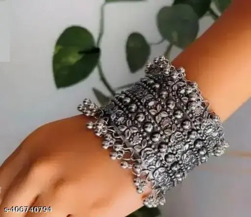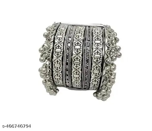 Women's Silver Colour Oxidised Bangle With Ghunghroo Style