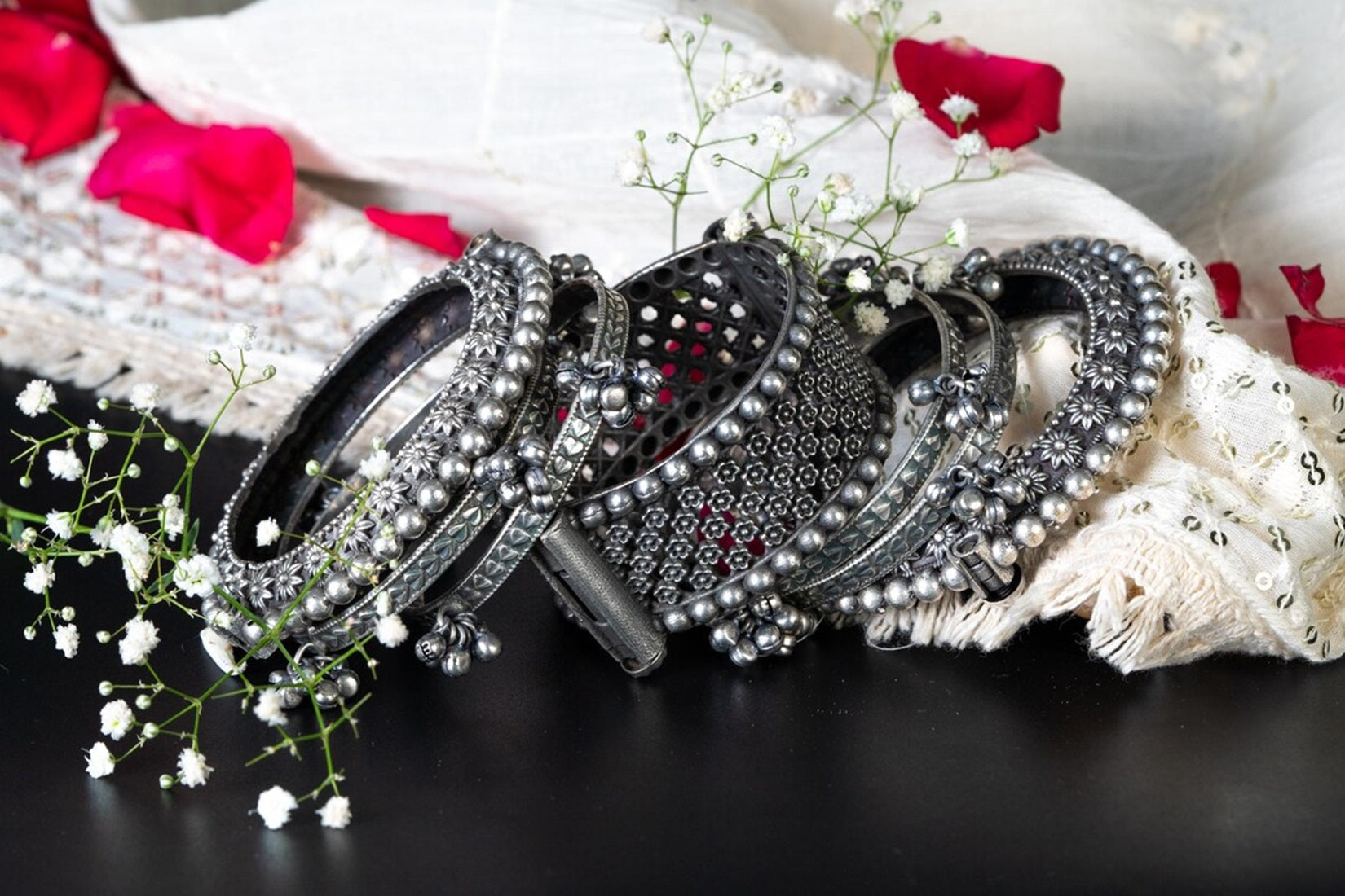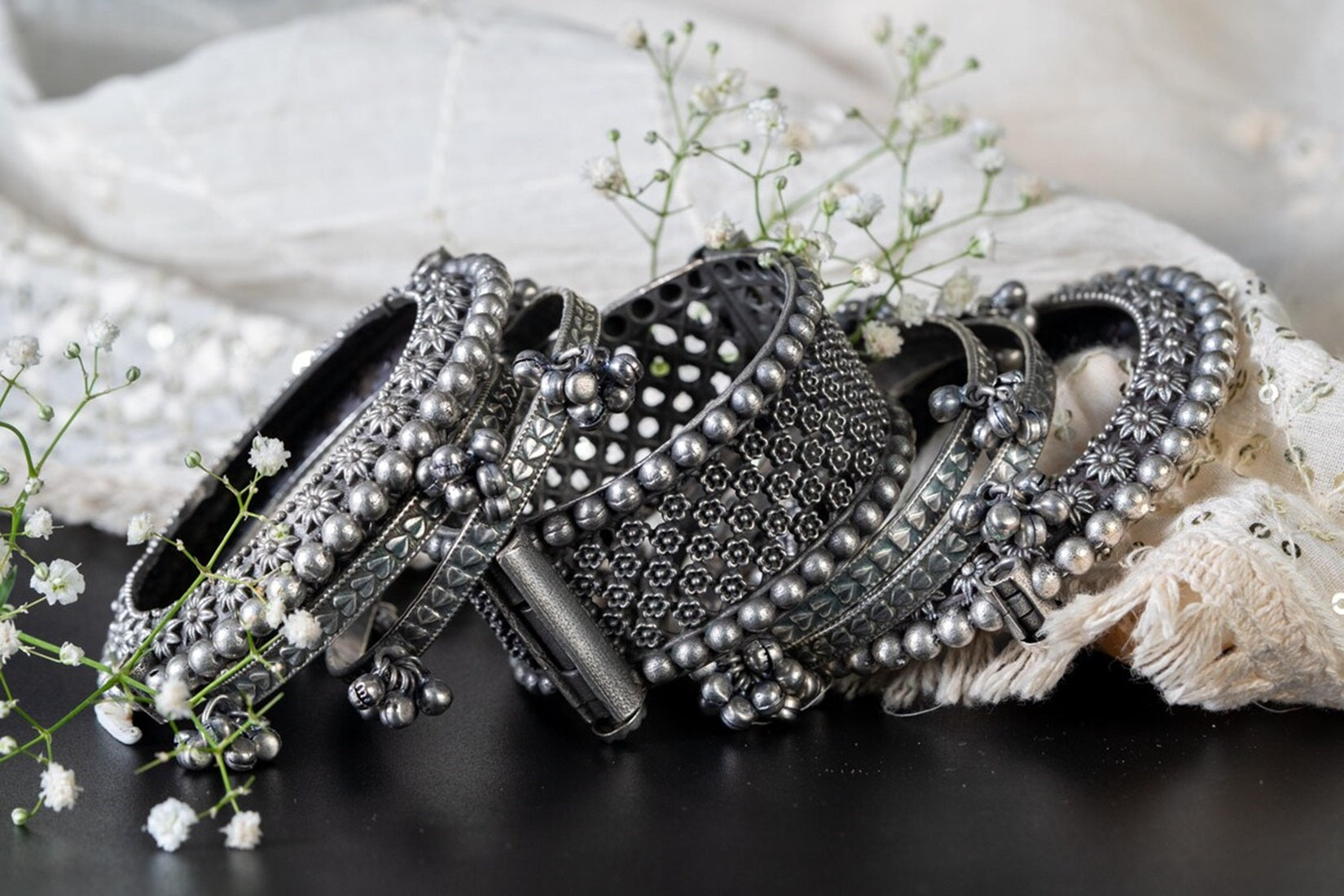 Women's Bangles Set Kada Hand Silver Plated Bracelet Antique Openable Kada Ghunghroo Gifts For Wedding