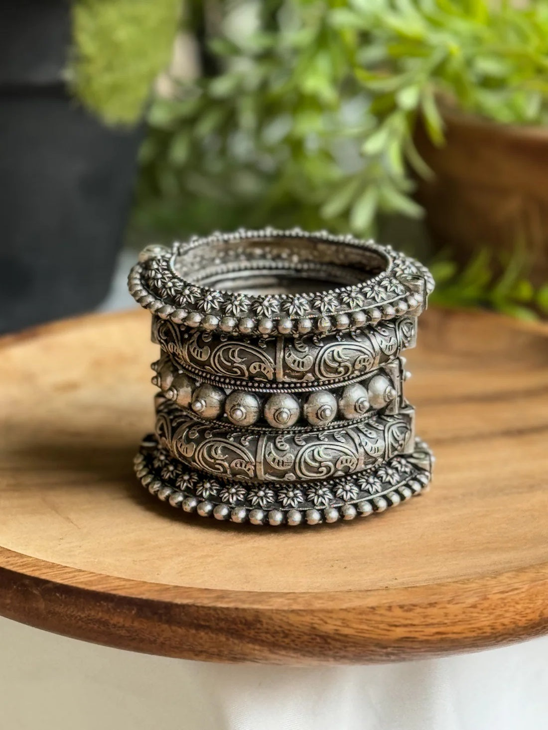 Women's Silver Oxidised Lookalike Bangle Stack (Set Of 5)