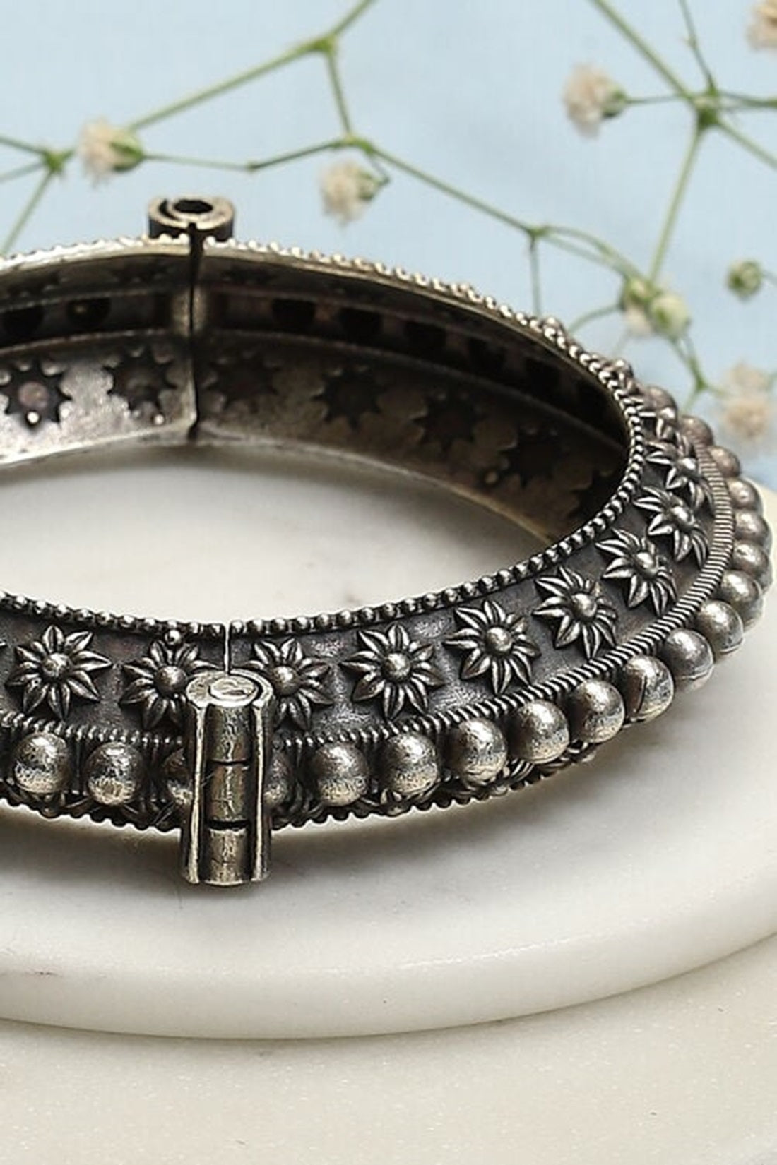 Adorn Your Wrists With This Stunning Silver Oxidised Lookalike Bangle Stack By Vastrabhushan. This Set Of 5 Bangles Features A Timeless Oxidised Silver Finish, Perfect For Adding A Touch Of Elegance To Your Outfit. Two Of The Bangles Stand Out With Intricate Ghungroo Details, Adding A Playful Charm To The Stack. Whether Paired With Ethnic Attire Or Fusion Wear, This Versatile Bangle Set Is An Ideal Choice For Casual Outings Or Festive Occasions.