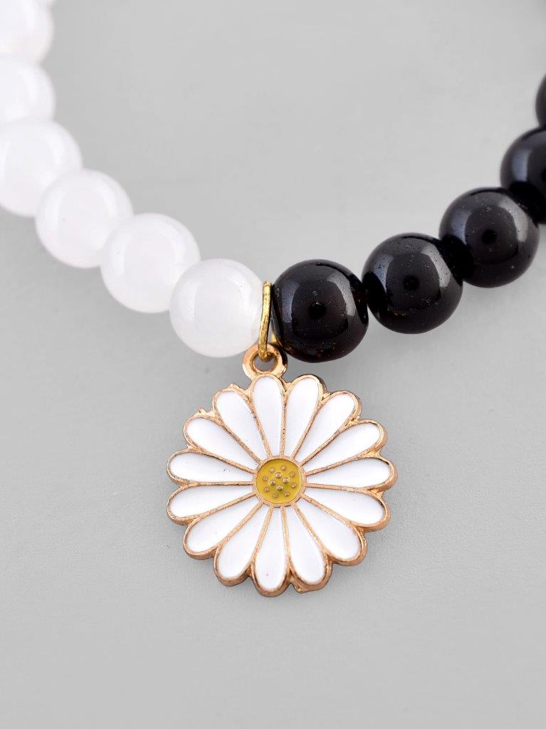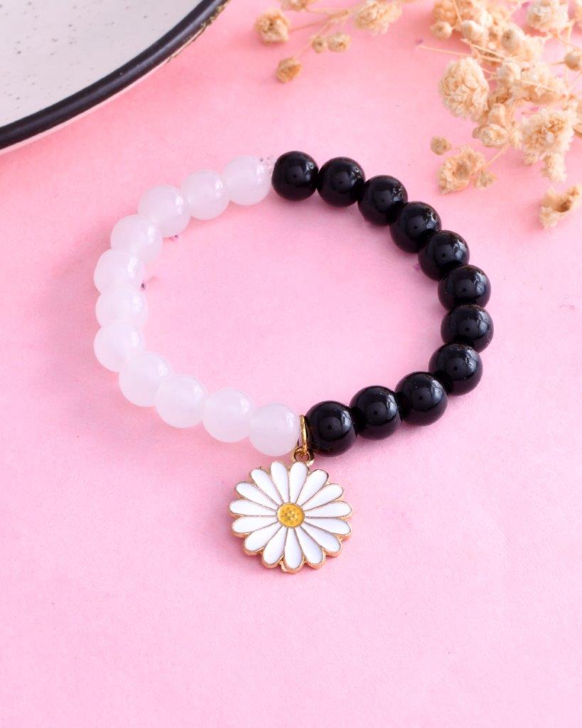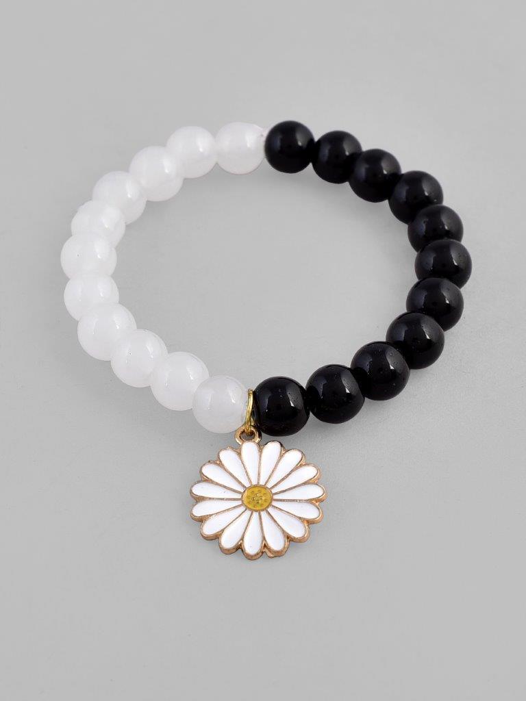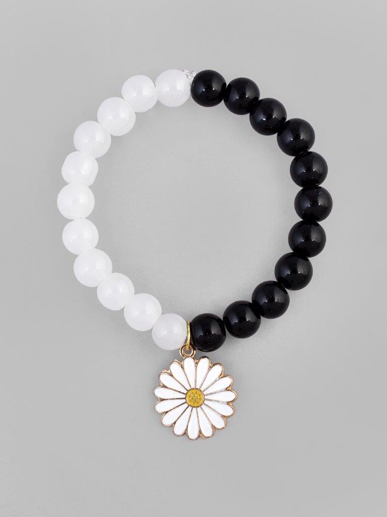 Introducing Our Black And White Beads With White Flower Elastic Bracelet – A Stunning Blend Of Monochrome Elegance And Floral Charm. This Bracelet Seamlessly Marries The Sophistication Of Black And White Beads With The Delicate Beauty Of A White Flower Centerpiece, Creating A Stylish Accessory That Stands Out With Grace.
