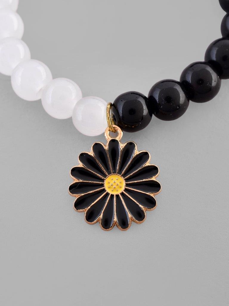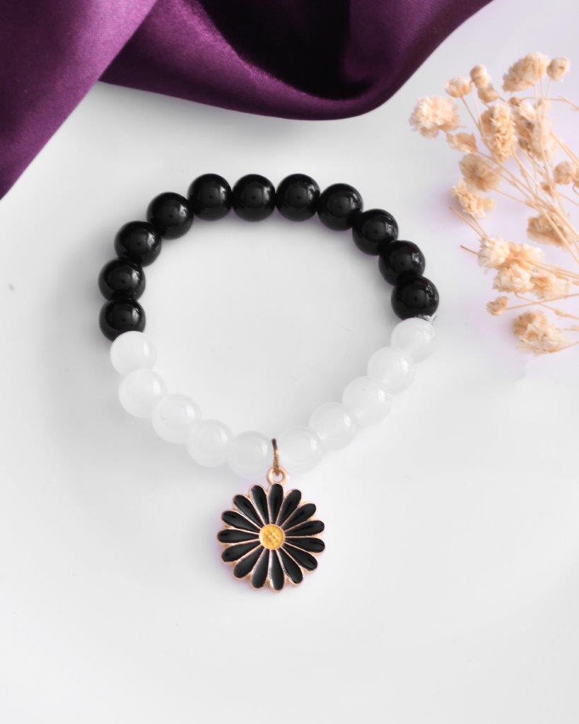 Introducing Our Black And White Beads With Black Flower Elastic Bracelet – A Striking Fusion Of Monochromatic Chic And Floral Allure. This Bracelet Seamlessly Combines The Sophistication Of Black And White Beads With The Bold Elegance Of A Black Flower Centerpiece, Creating A Stylish Accessory That Captivates With Modern Charm.
