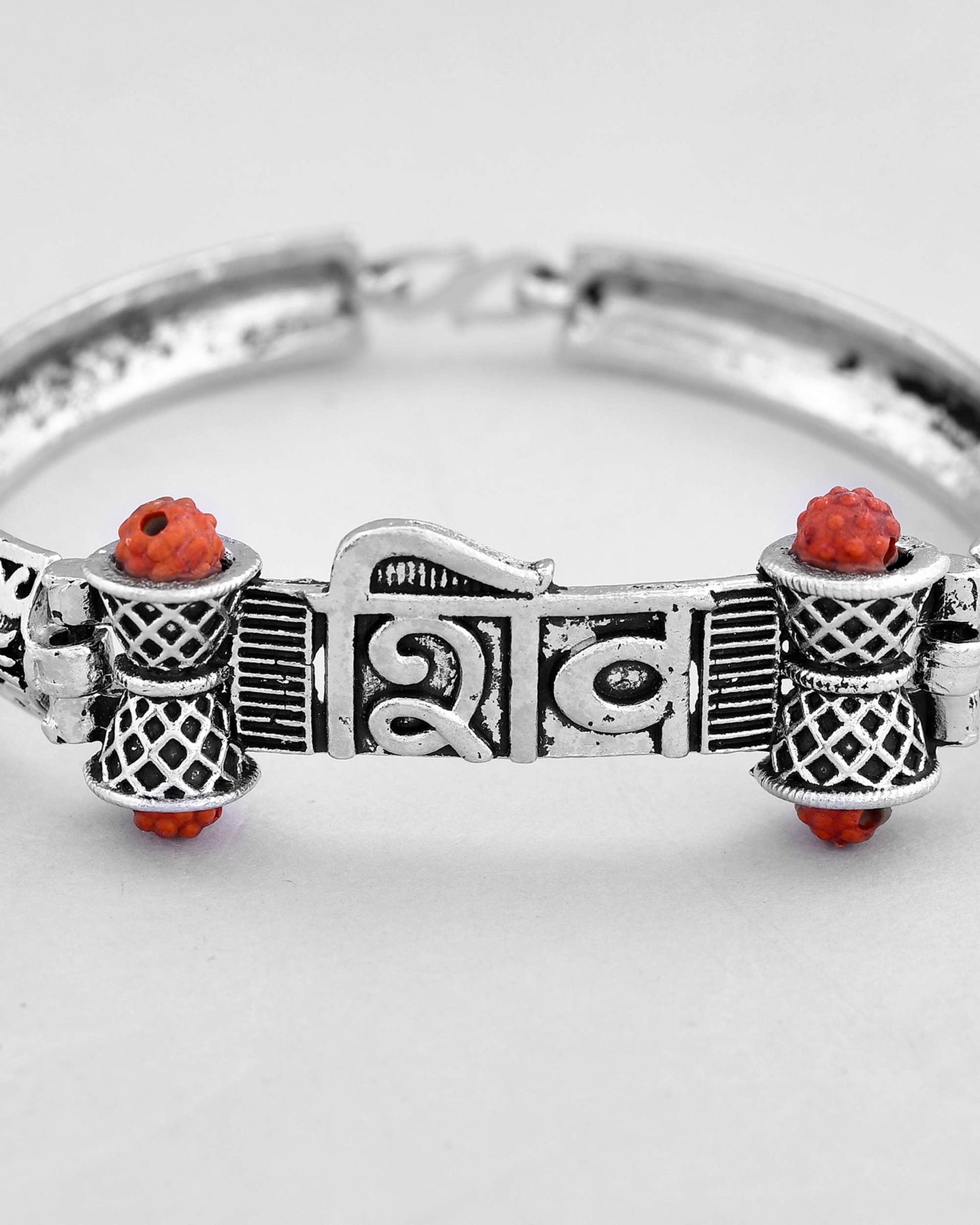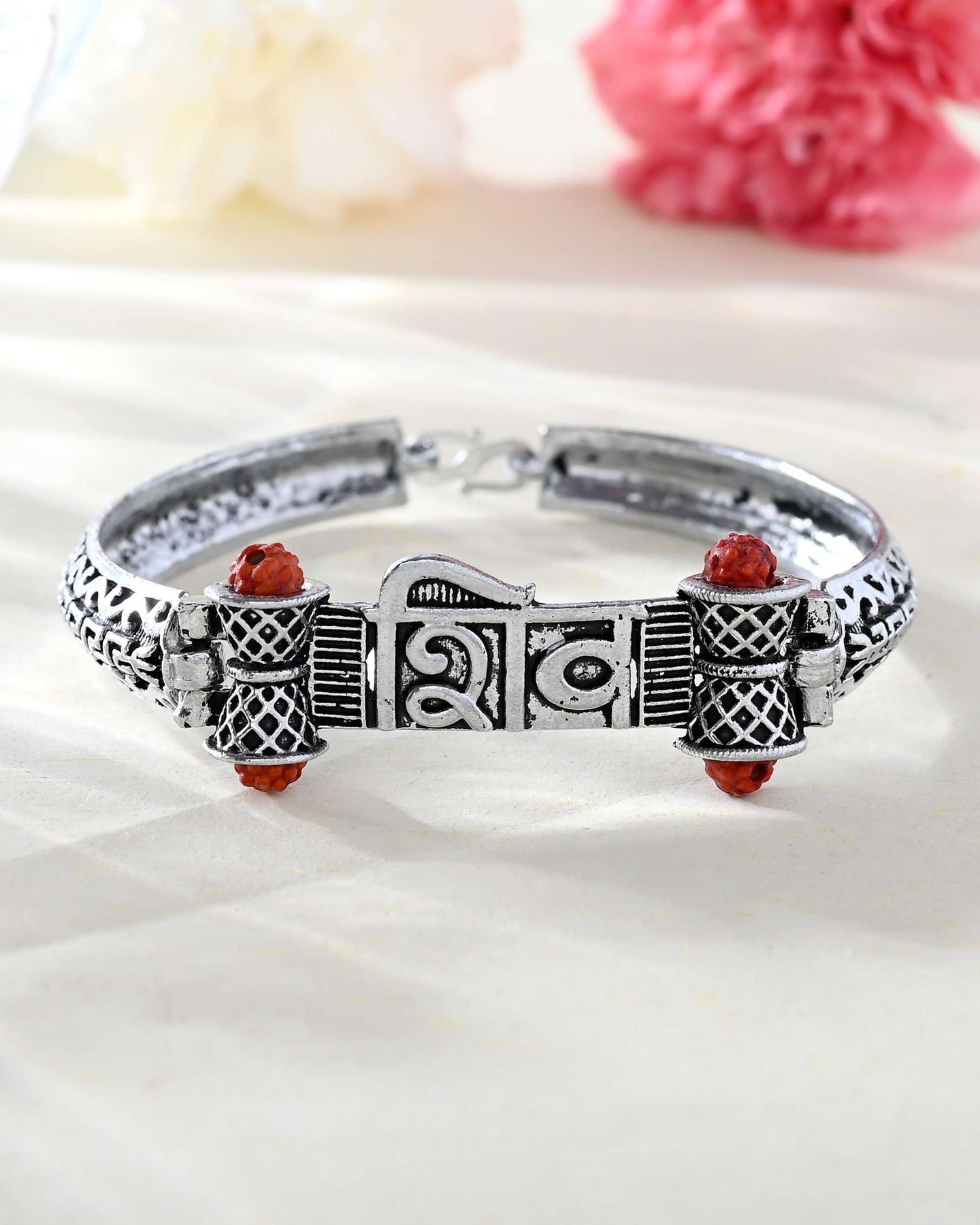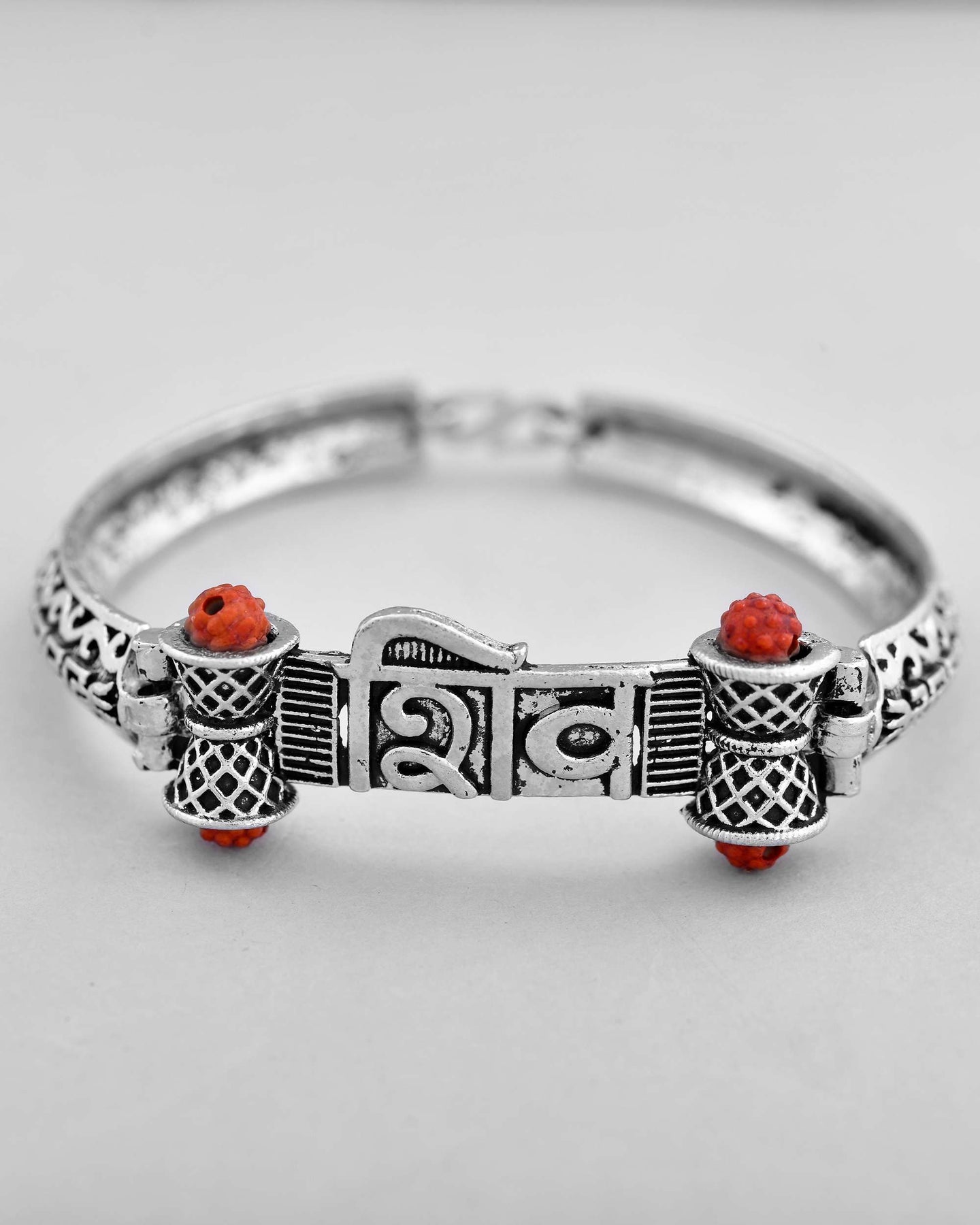 Showcase your devotion with our Silver Plated Shiv Kada Bracelet. This intricately designed piece features symbols of Lord Shiva, beautifully crafted in a sleek silver finish. Its sturdy yet stylish design makes it perfect for everyday wear or special occasions. Embrace spirituality and elegance in one stunning accessory!