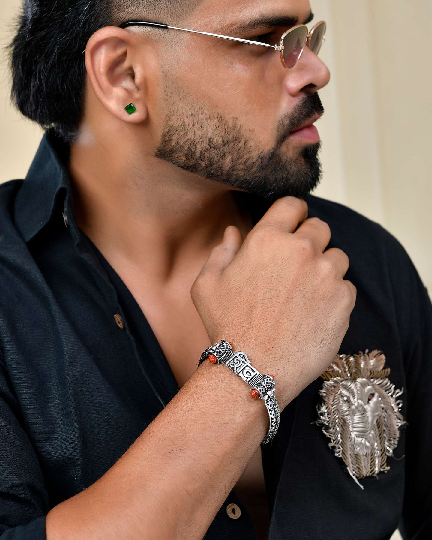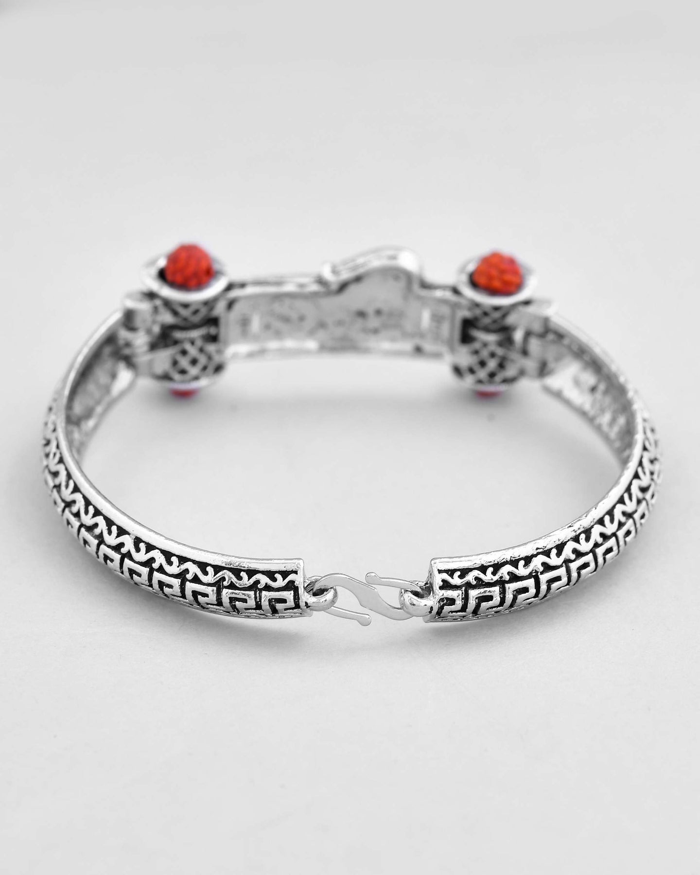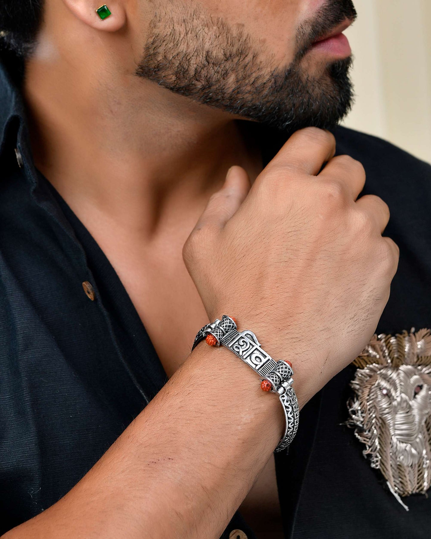 Showcase your devotion with our Silver Plated Shiv Kada Bracelet. This intricately designed piece features symbols of Lord Shiva, beautifully crafted in a sleek silver finish. Its sturdy yet stylish design makes it perfect for everyday wear or special occasions. Embrace spirituality and elegance in one stunning accessory!