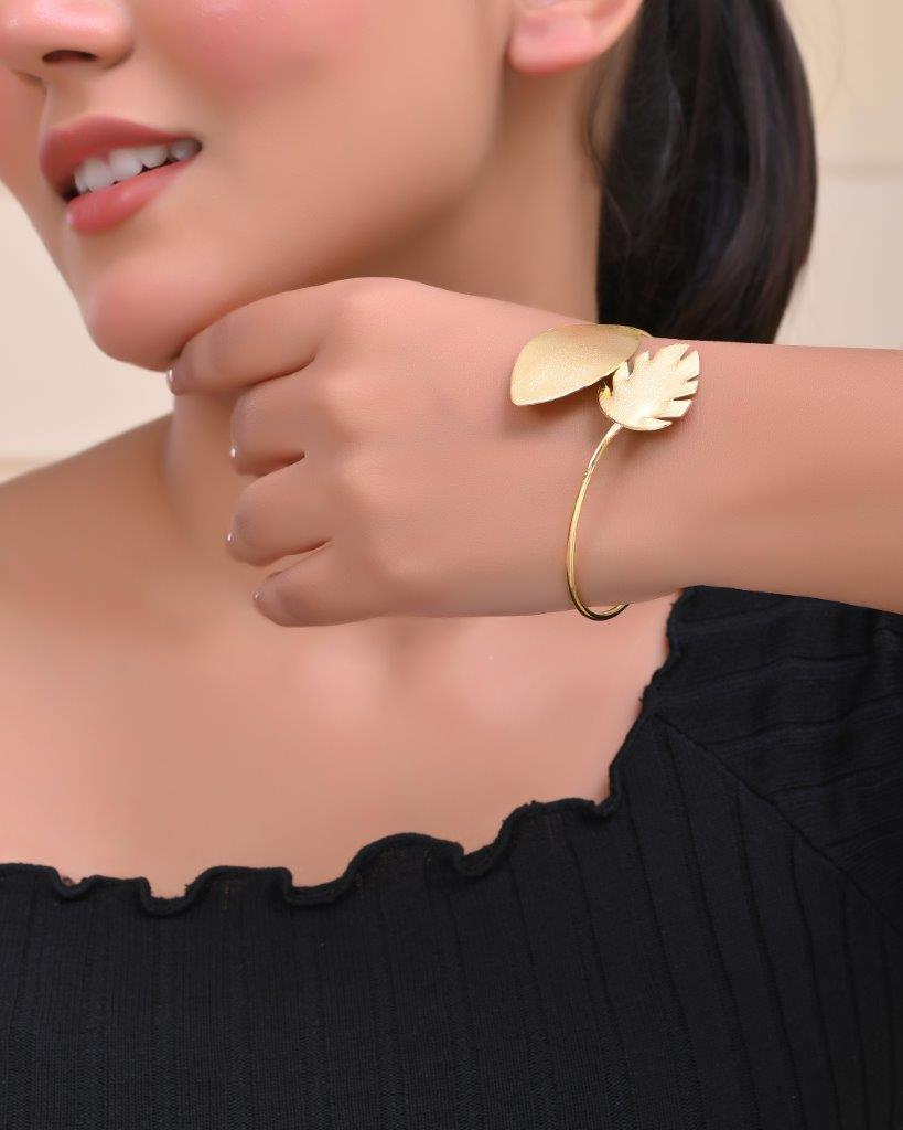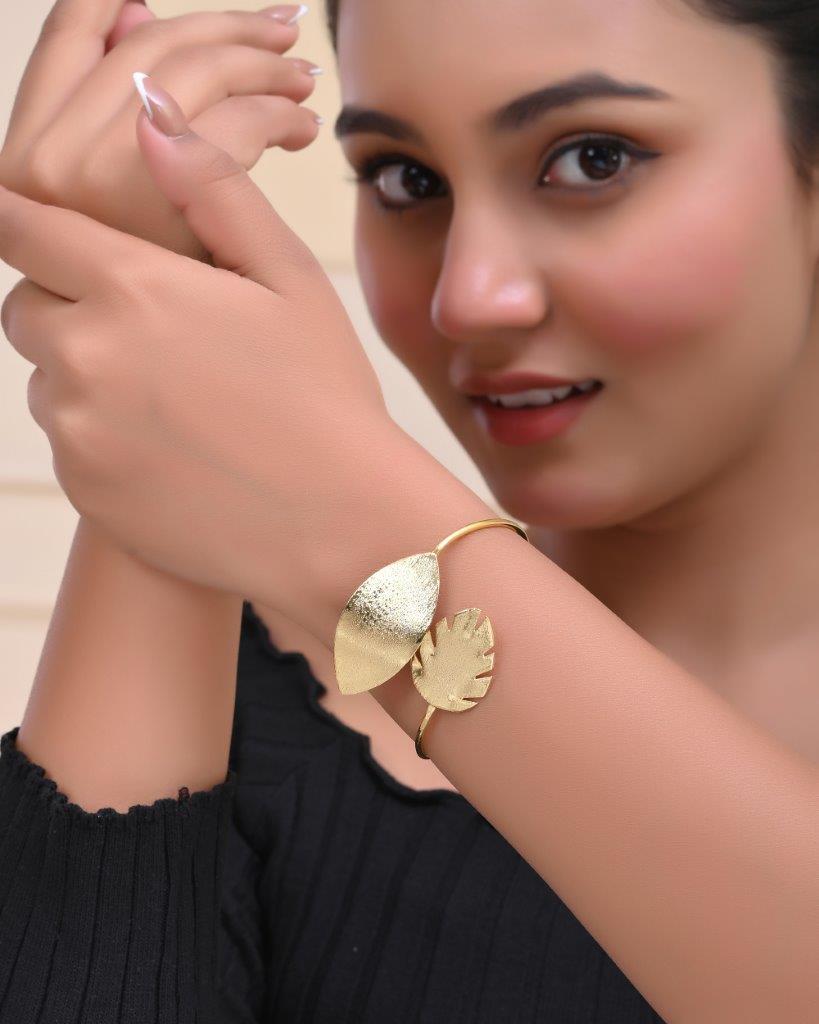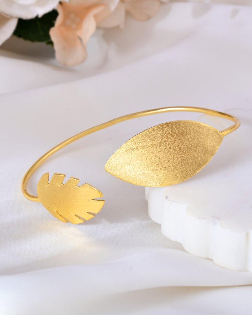 Embrace Nature-Inspired Elegance With Our Gold Plated Leaf Shaped Cuff Bracelet. This Stunning Piece Features Intricately Designed Leaf Motifs, Beautifully Finished In Lustrous Gold Plating. The Adjustable Cuff Design Ensures A Perfect Fit For Any Wrist Size. Ideal For Both Casual And Formal Occasions, This Bracelet Adds A Touch Of Sophistication And Charm To Any Outfit.