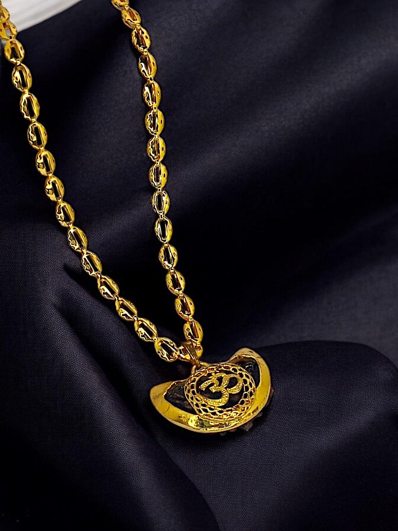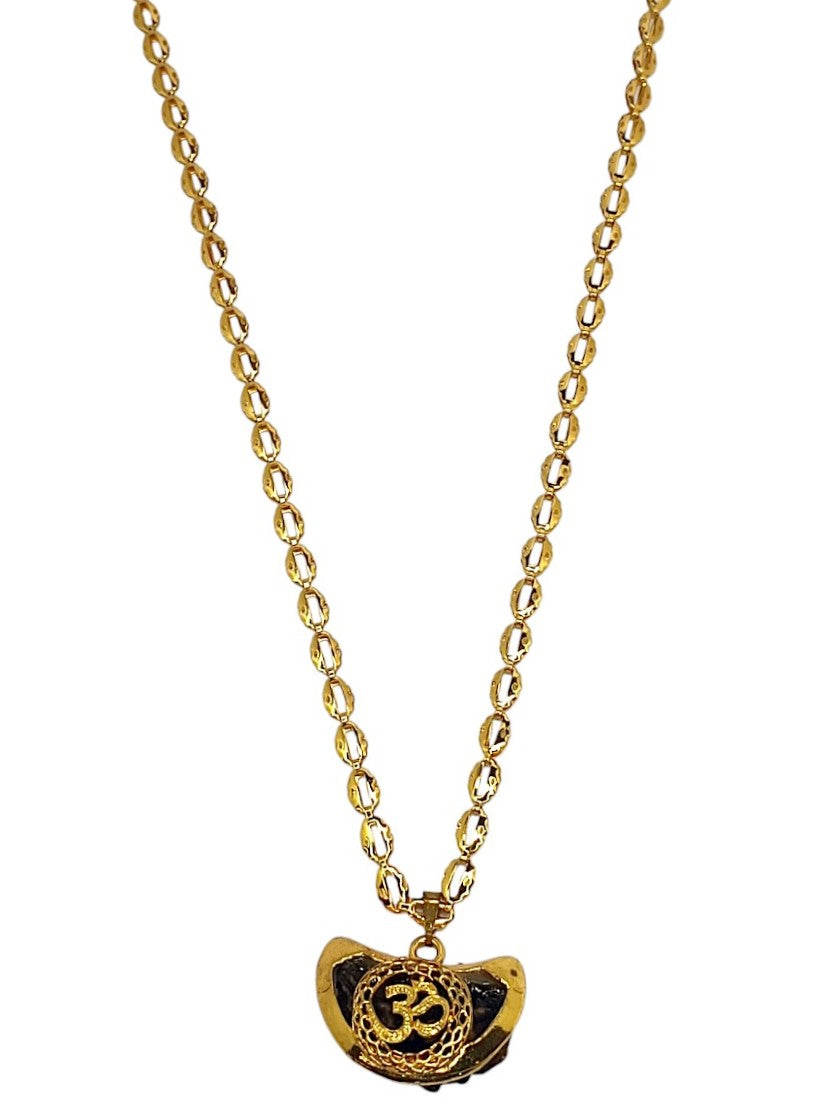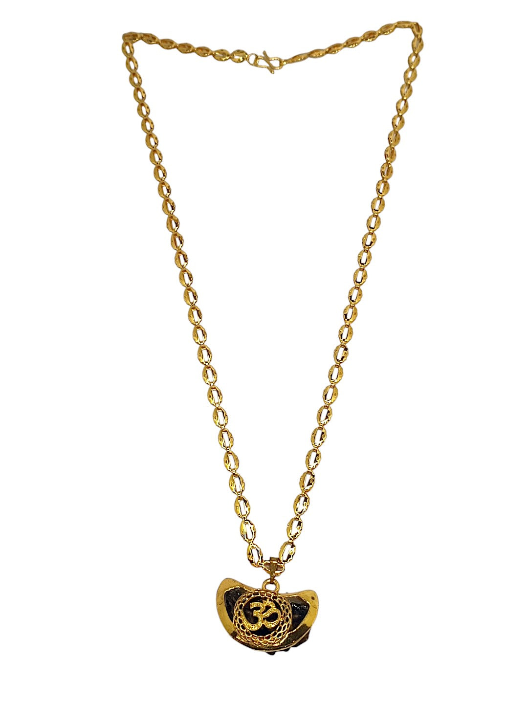 Gold-Plated Brown Rudraksha Studded Om Pendant, Comes With A Chain, Secured With An Adjustable Lobster Closure
