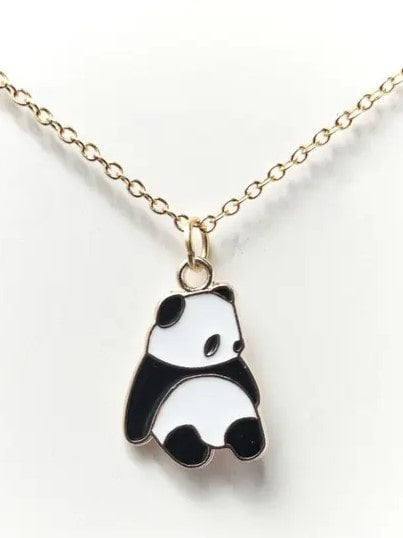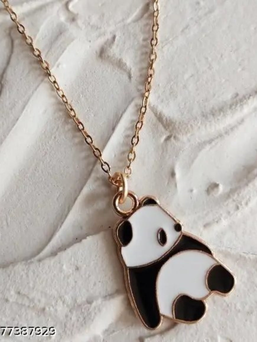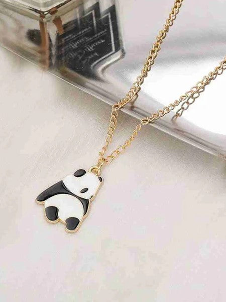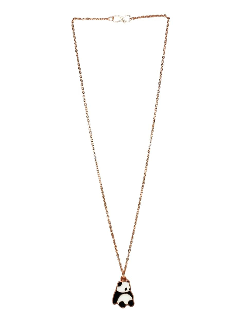 Gold-Toned Black & White Panda Pendant Chain For Women. Secured With S-Hook Closure.