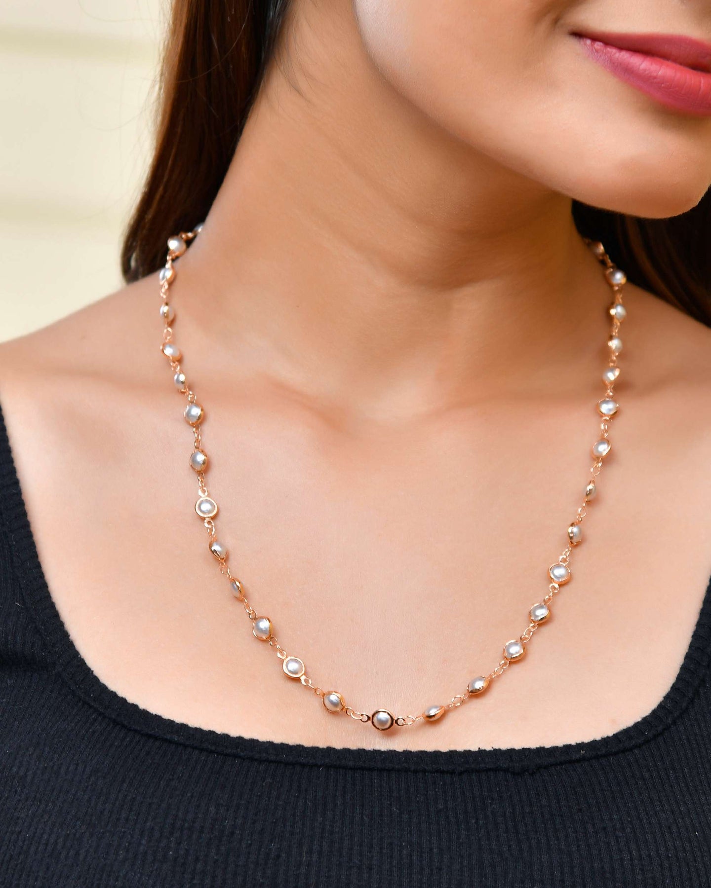 Add a touch of elegance to your collection with our gold-plated chain for women, beautifully adorned with white pearls. This stunning piece combines the warmth of gold with the classic beauty of pearls, creating a sophisticated look perfect for any occasion. Ideal for layering or wearing alone, it effortlessly enhances both casual and formal outfits. Elevate your style with this timeless accessory!
