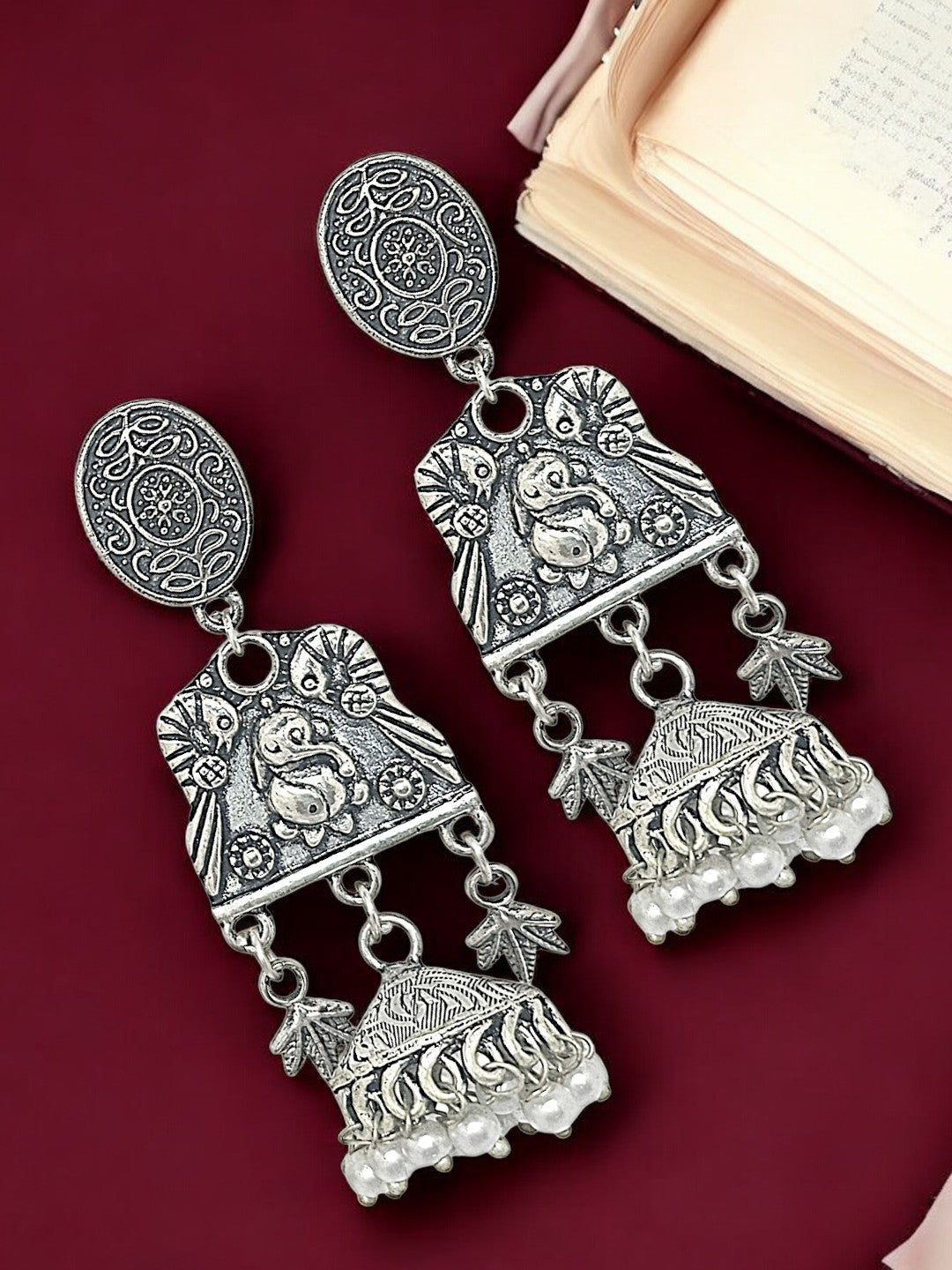 This Aunthentic Traditional Ganpati Carved Earrings Exhibit Style And Can Be Adorned With Your Favorite Ethnic And Western Outfits. Perfect Match For Woman'S Fashion Wardrobe And Can Be Worn Anytime Anywhere And Gives You Mesmerizing Look.