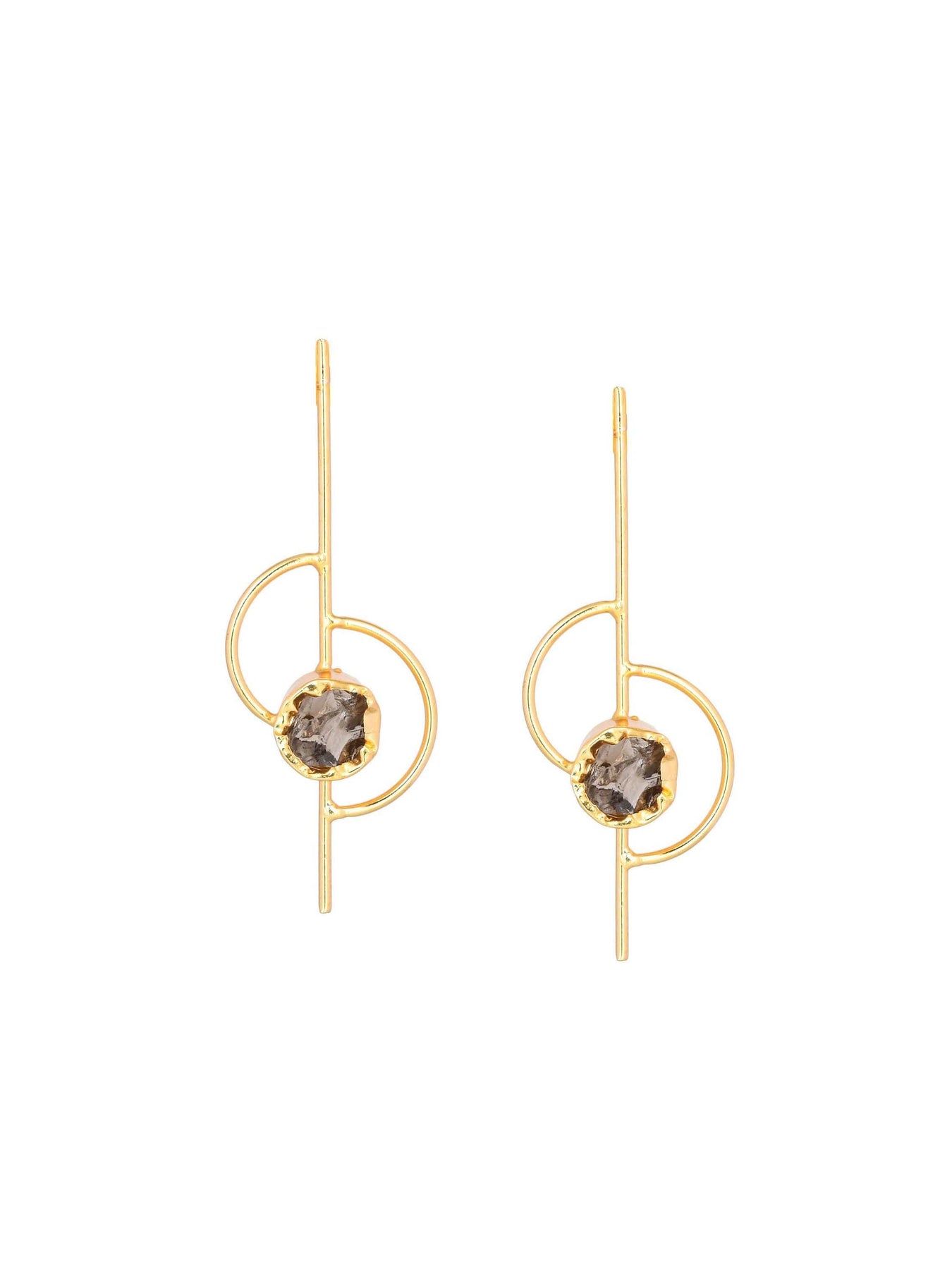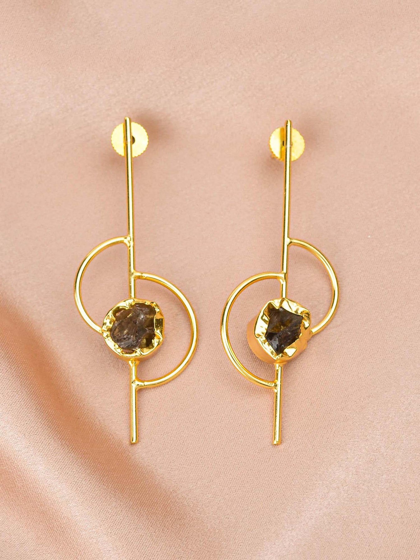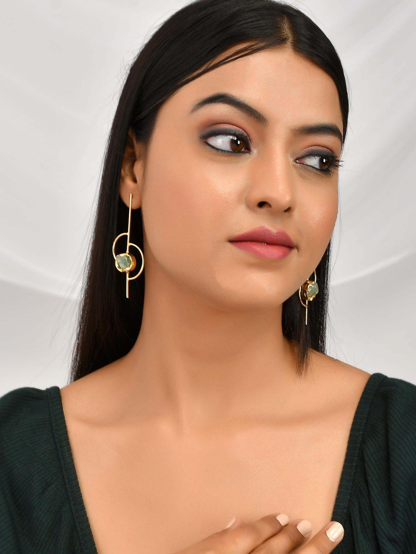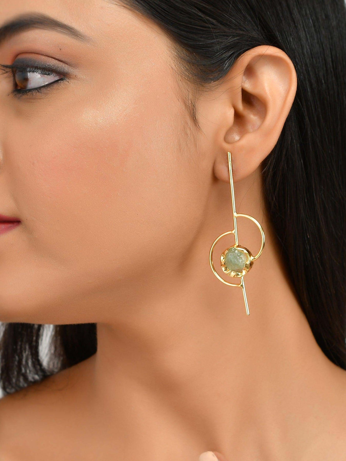 Asymmetric Stone Studded Earring Color :Gold Material :Brass Closure :Hoop Care Instructions :Keep Away From Moisture Weight :0.5G