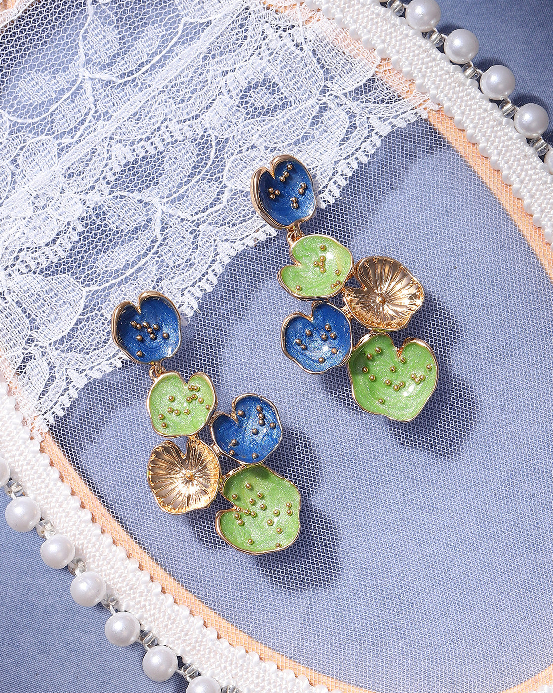 Women's Indigo Blue & Olive Green Plated Earrings - Sohi