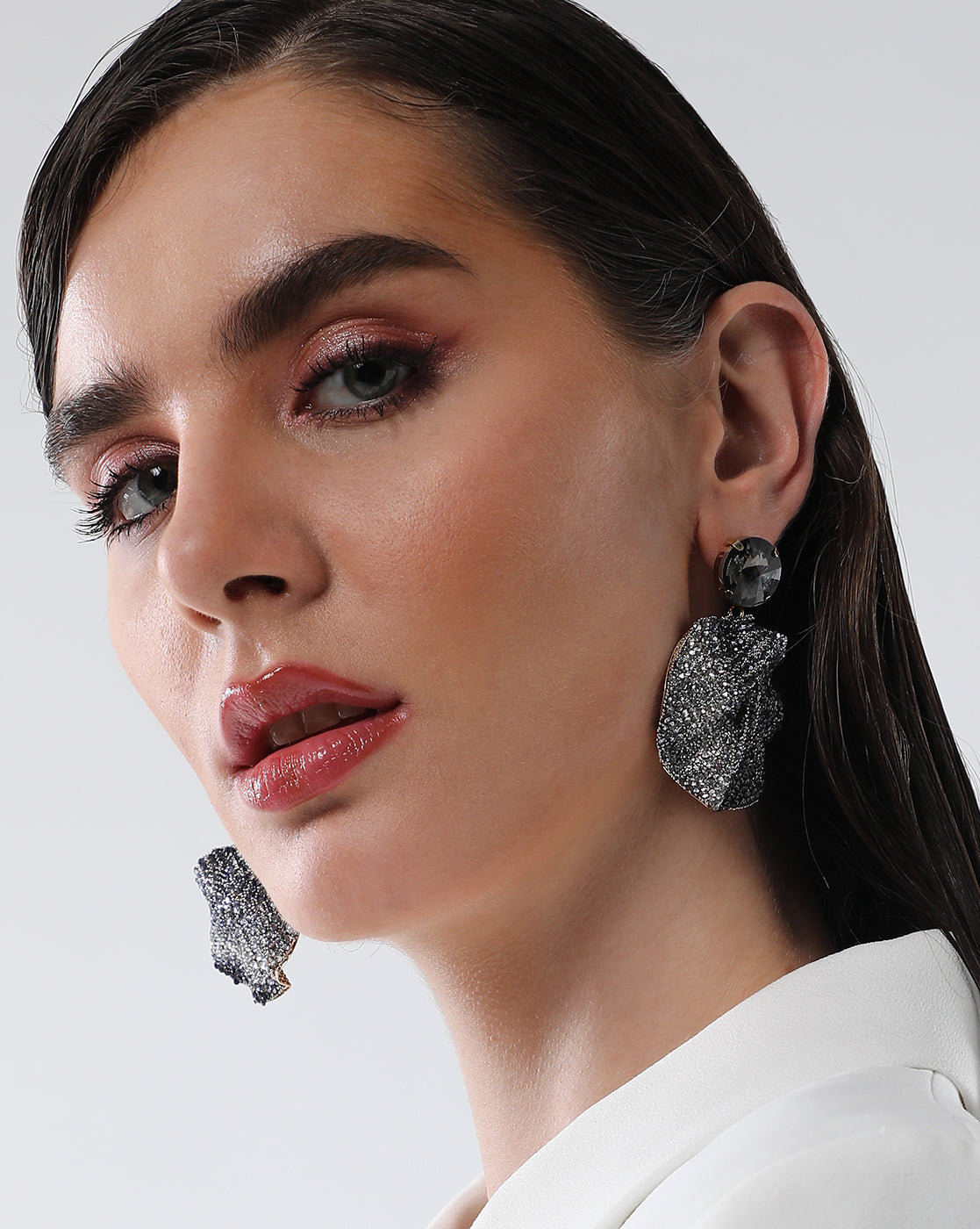Women's Crystal Silver & Onyx Black Plated Earrings - Sohi