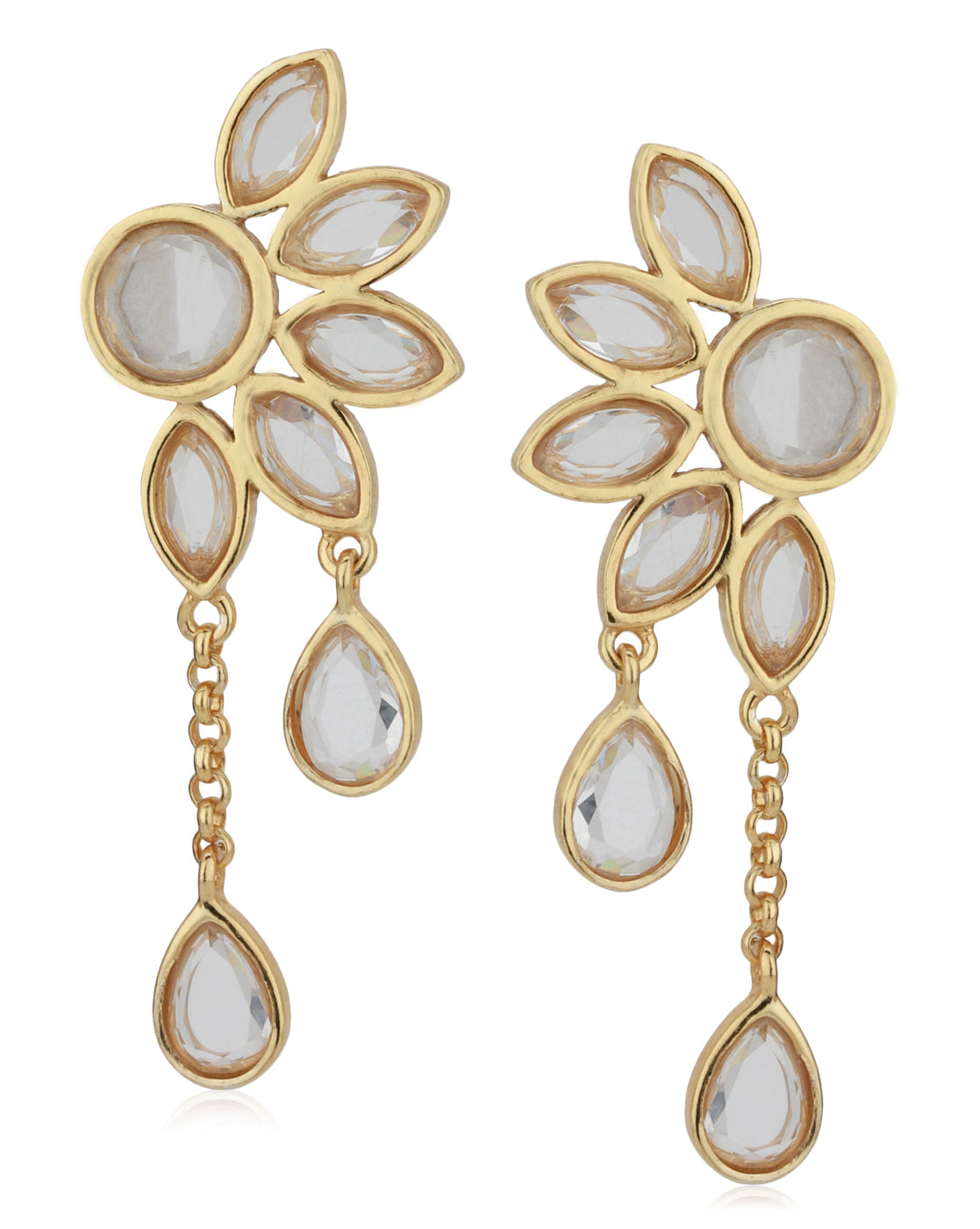 Carlton London Transparent Gold-Plated Handcrafted Stone-Studded Floral Drop Earrings