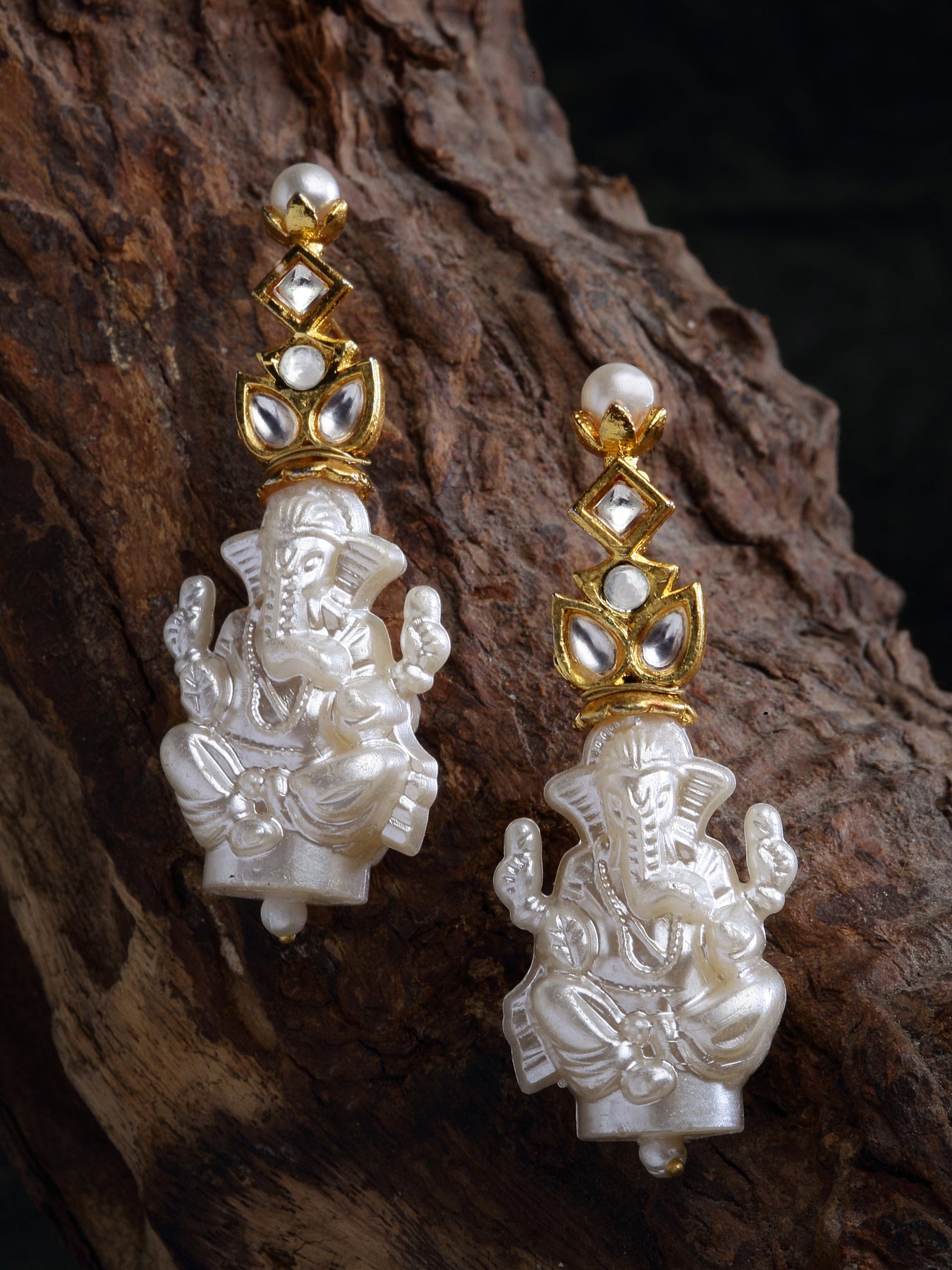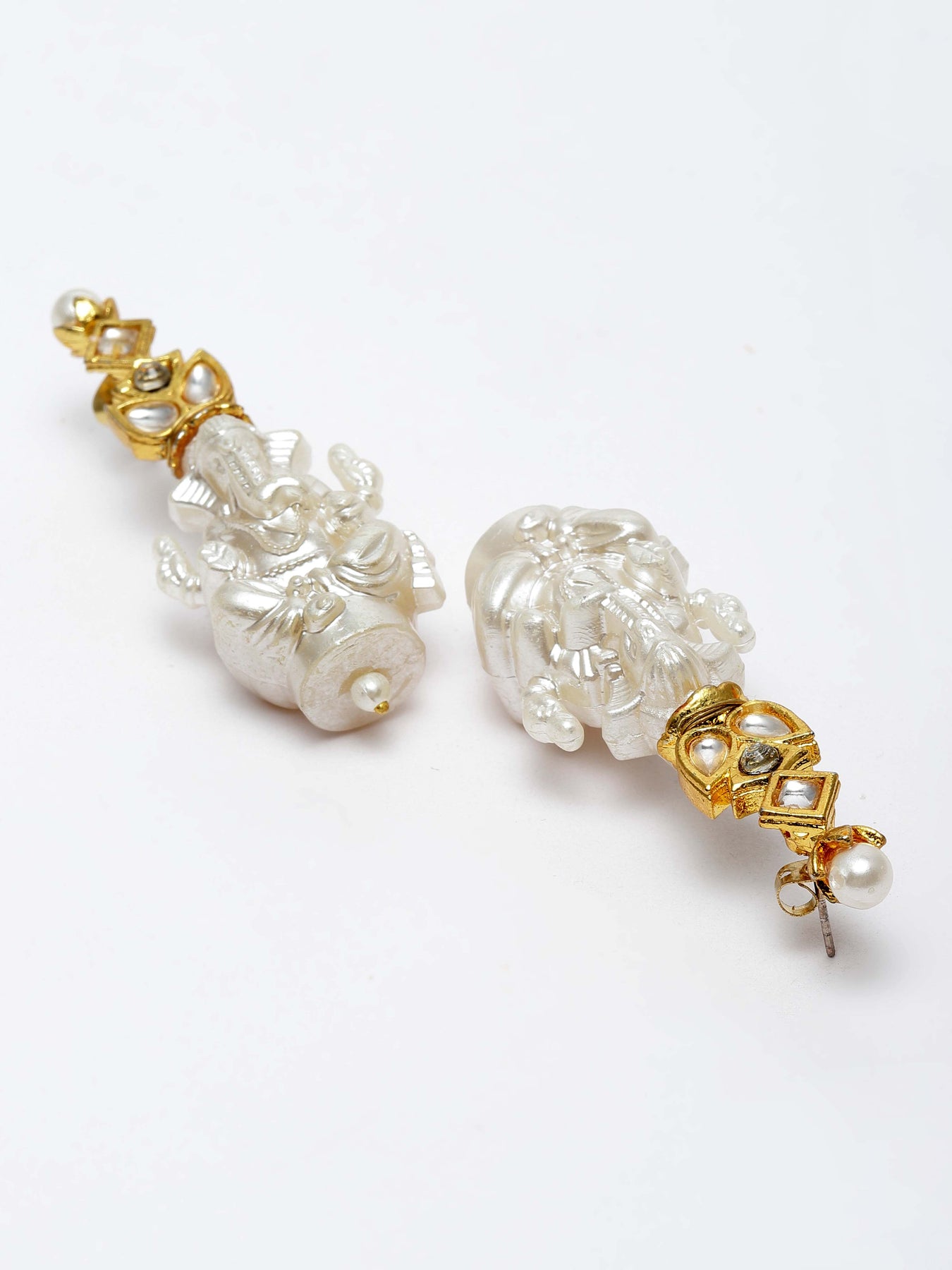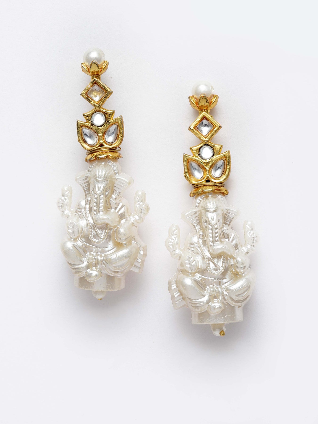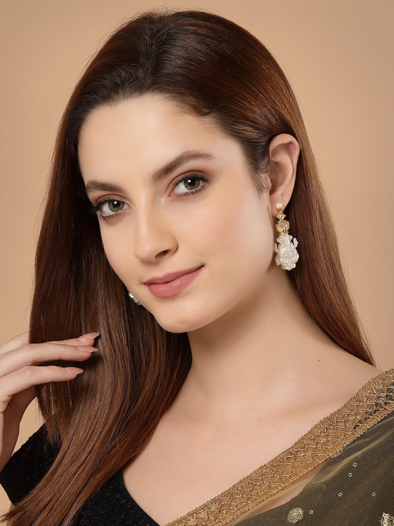 Handcrafted Sona Aftab Drop Earring Kundan Earring Amalgamation Of Various Different Kundan Tikda To Give U Classy And Elegant Look; Category Of Jewellery Is Earring; Sub Category Is Drop; Ideal For Women; Color Is Gold, White; Gemstones Used - Kundan, Pearls, Natural Stones; Plating Is Gold-Plated; Base Metal Is Alloy; Other Material Used - Closure Stopper; Size Is Freesize; Adjustable - No; Weight Is 13 Gms; Mesaurements - Length Of Earring= 8 Cm; Width Of Earring =1.7 Cm; Adjustable - No; Content 1 Pair Earring