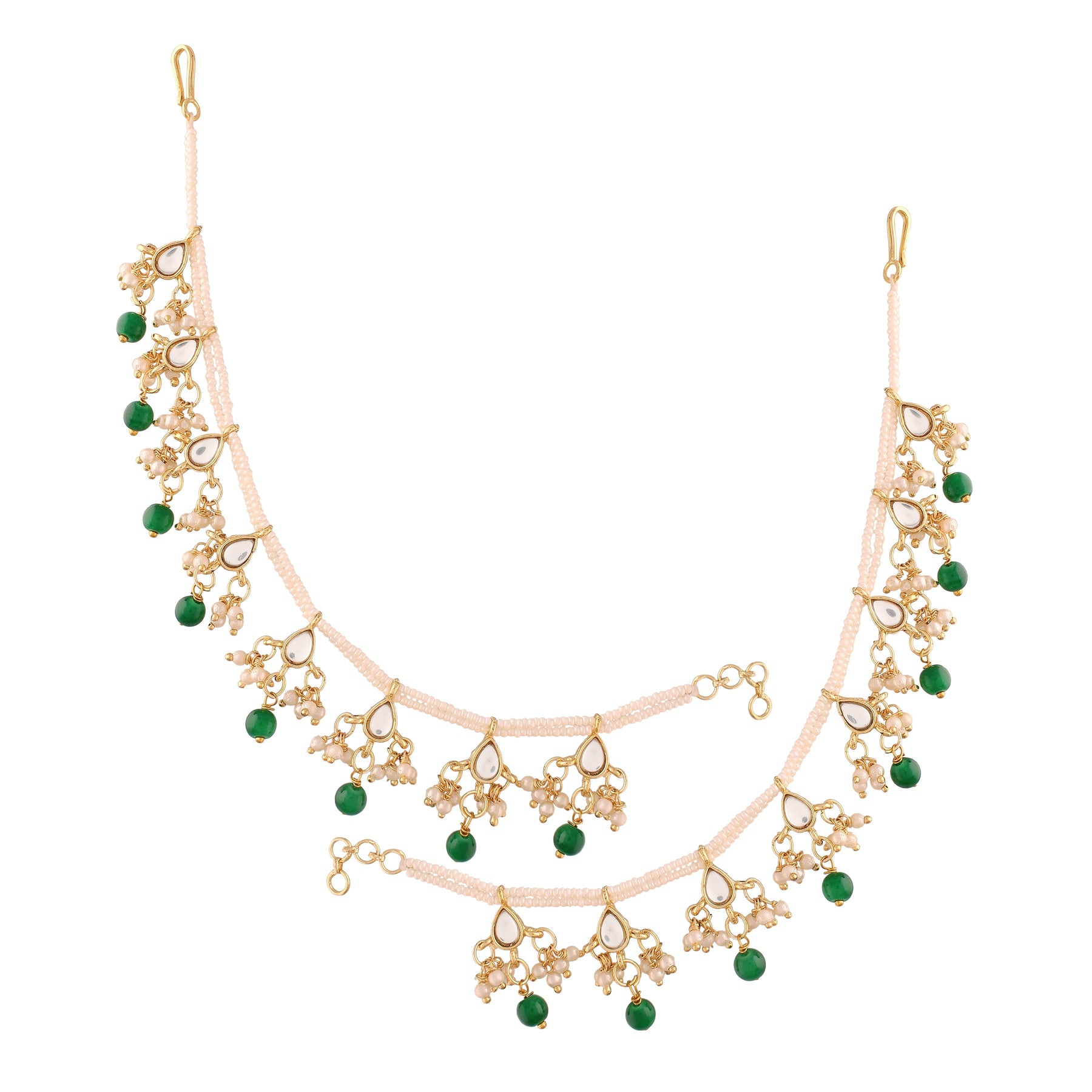 This Hair chains are easy to wear, light in weight & gives you a rich look. Eye catching unique exotic jewellery with ethnic wear such as a saree, salwar suit or a lehenga for a classic ethnic look and Smart hair accessory to dress up your hair and add instant style. Made up pearls hair chain to compliment your ethnic earrings collections. The color complements all outfits & may be worn as a statement piece to any occasion.