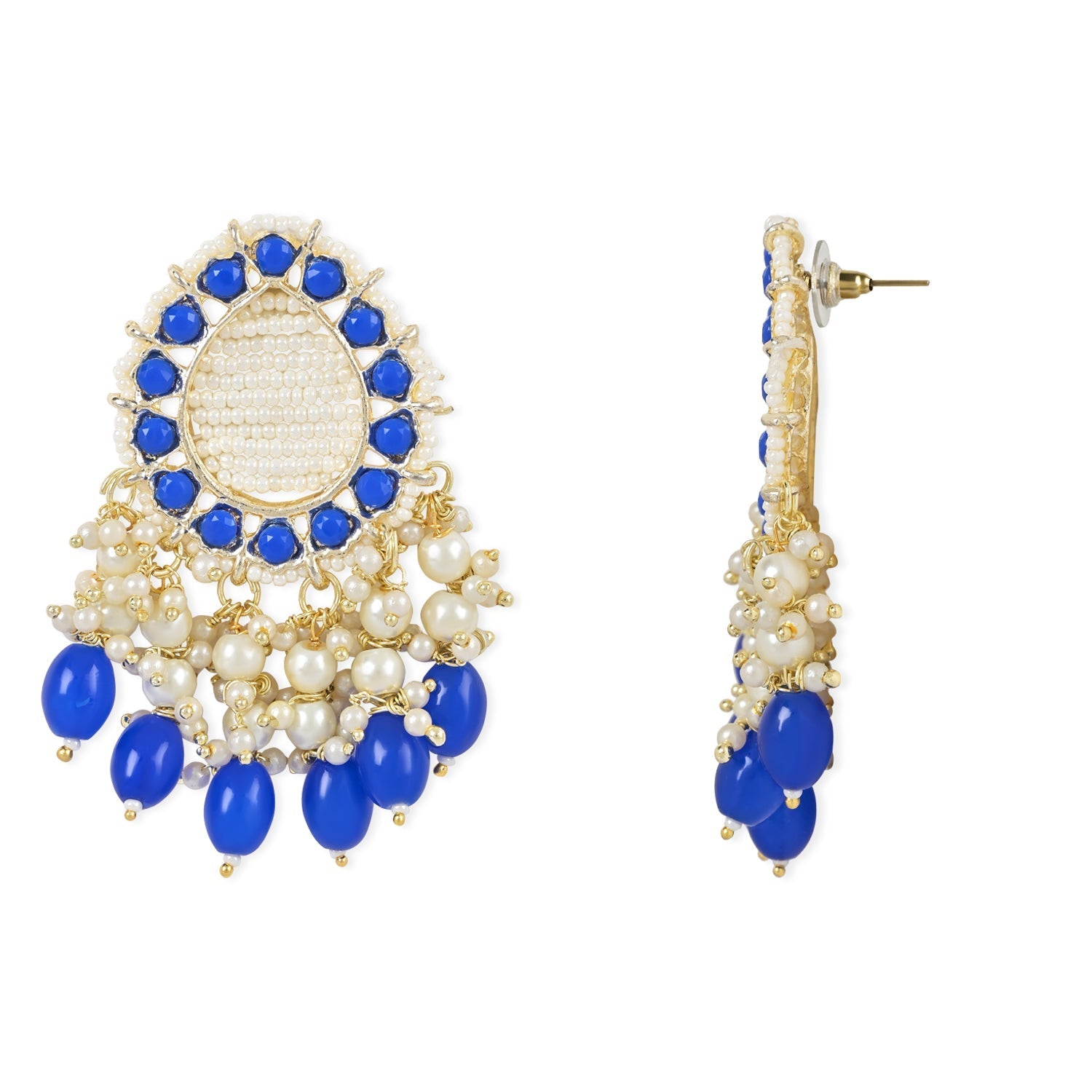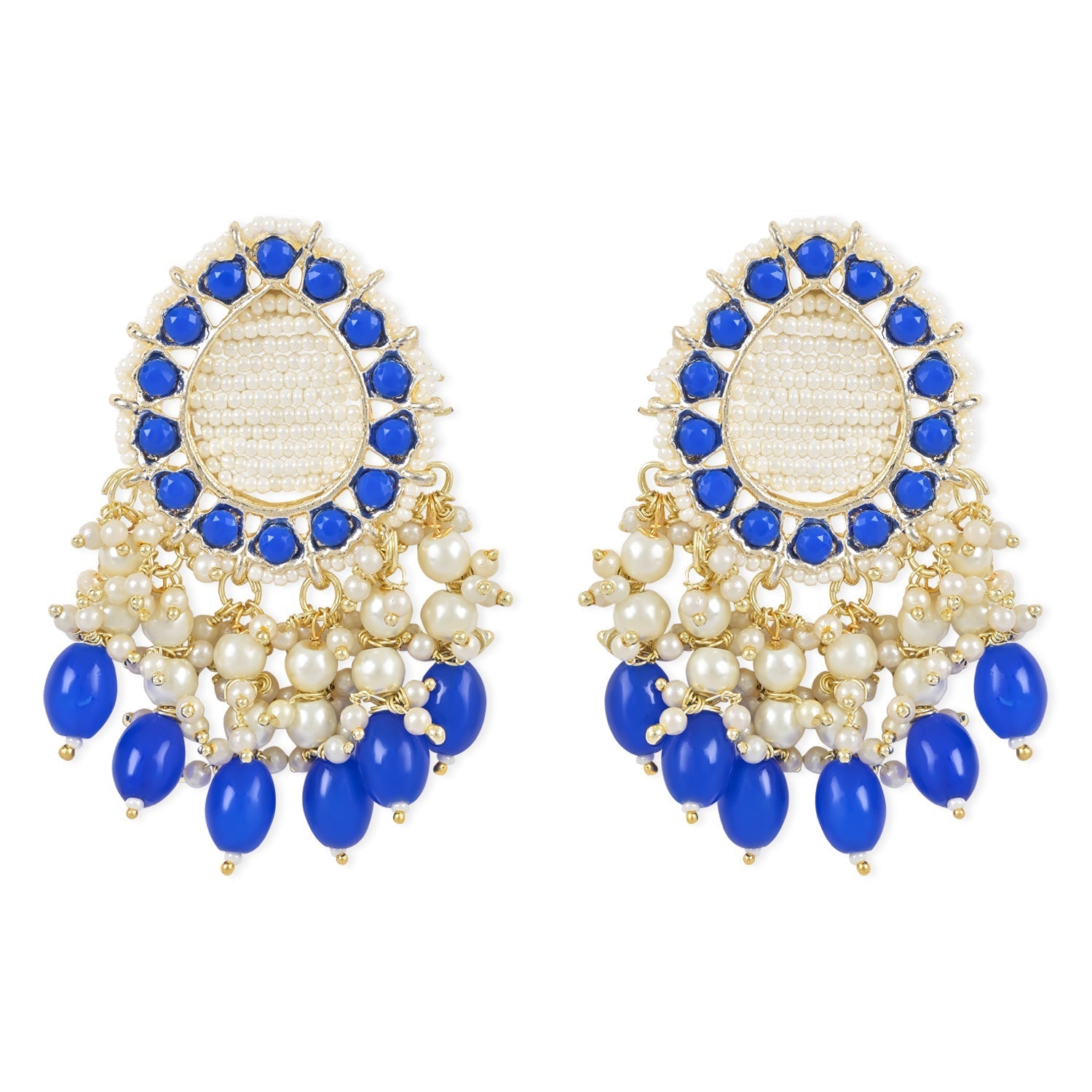 Women's Gold Plated Traditional Kundan Studded Pearl Drop Earrings