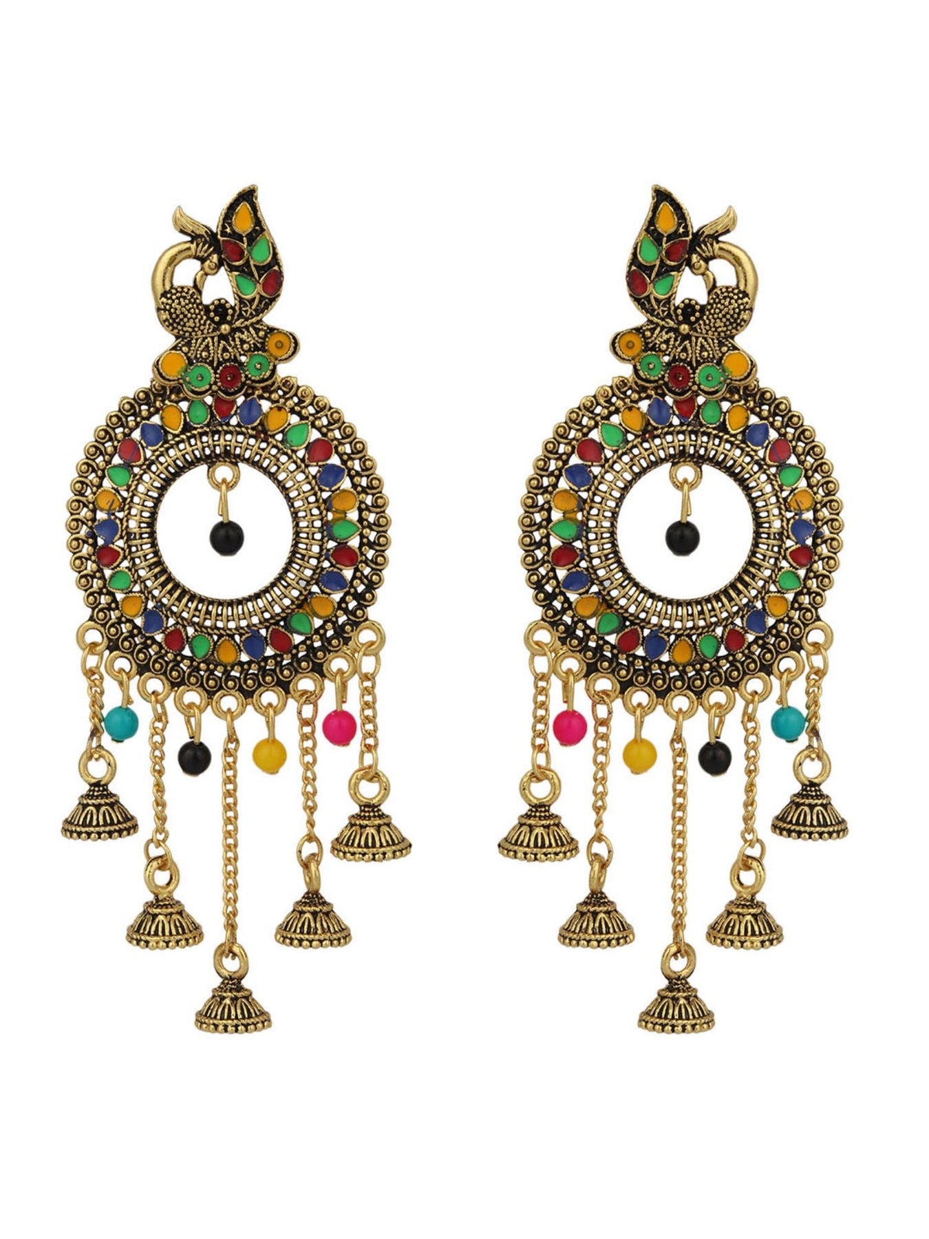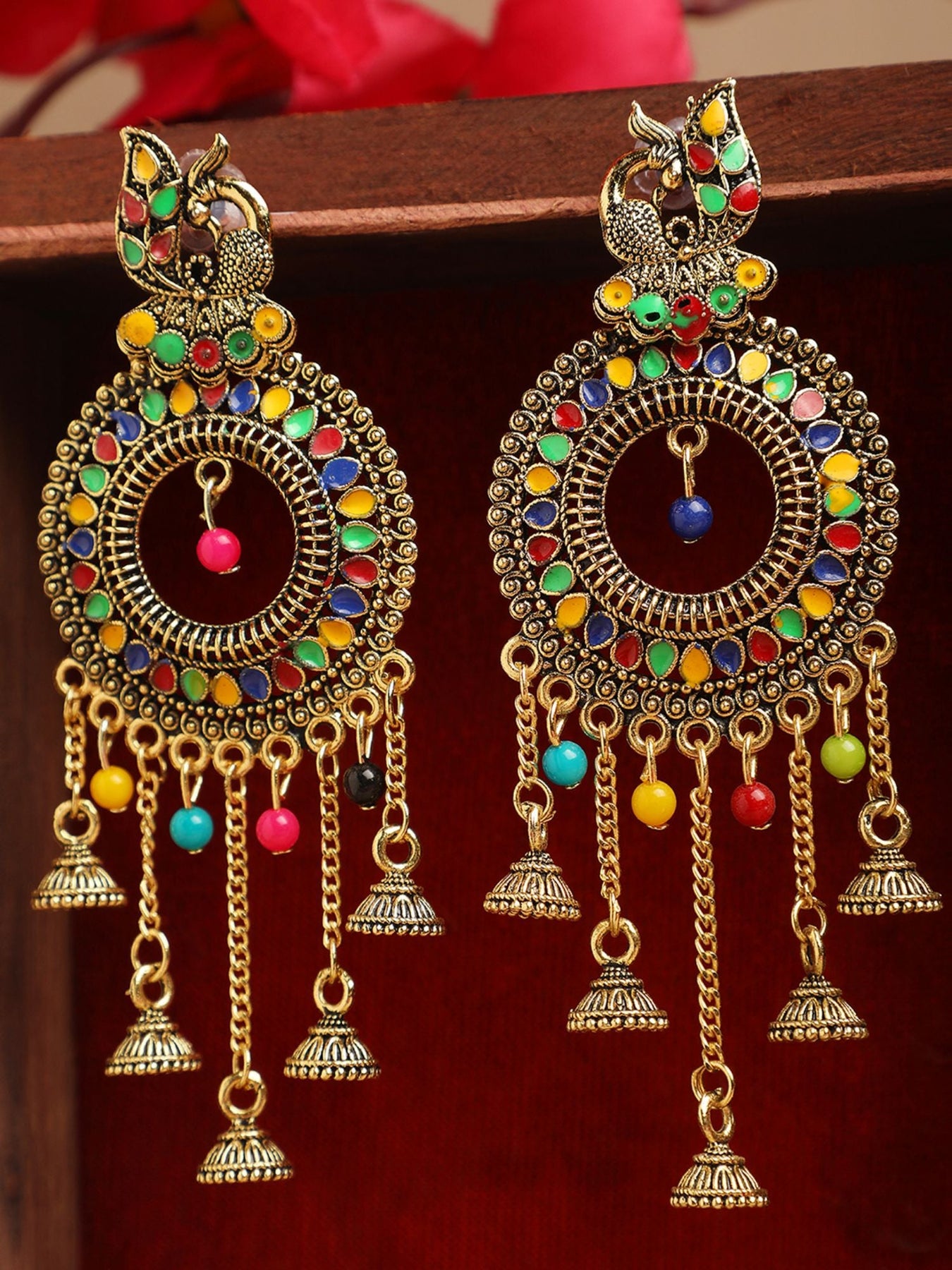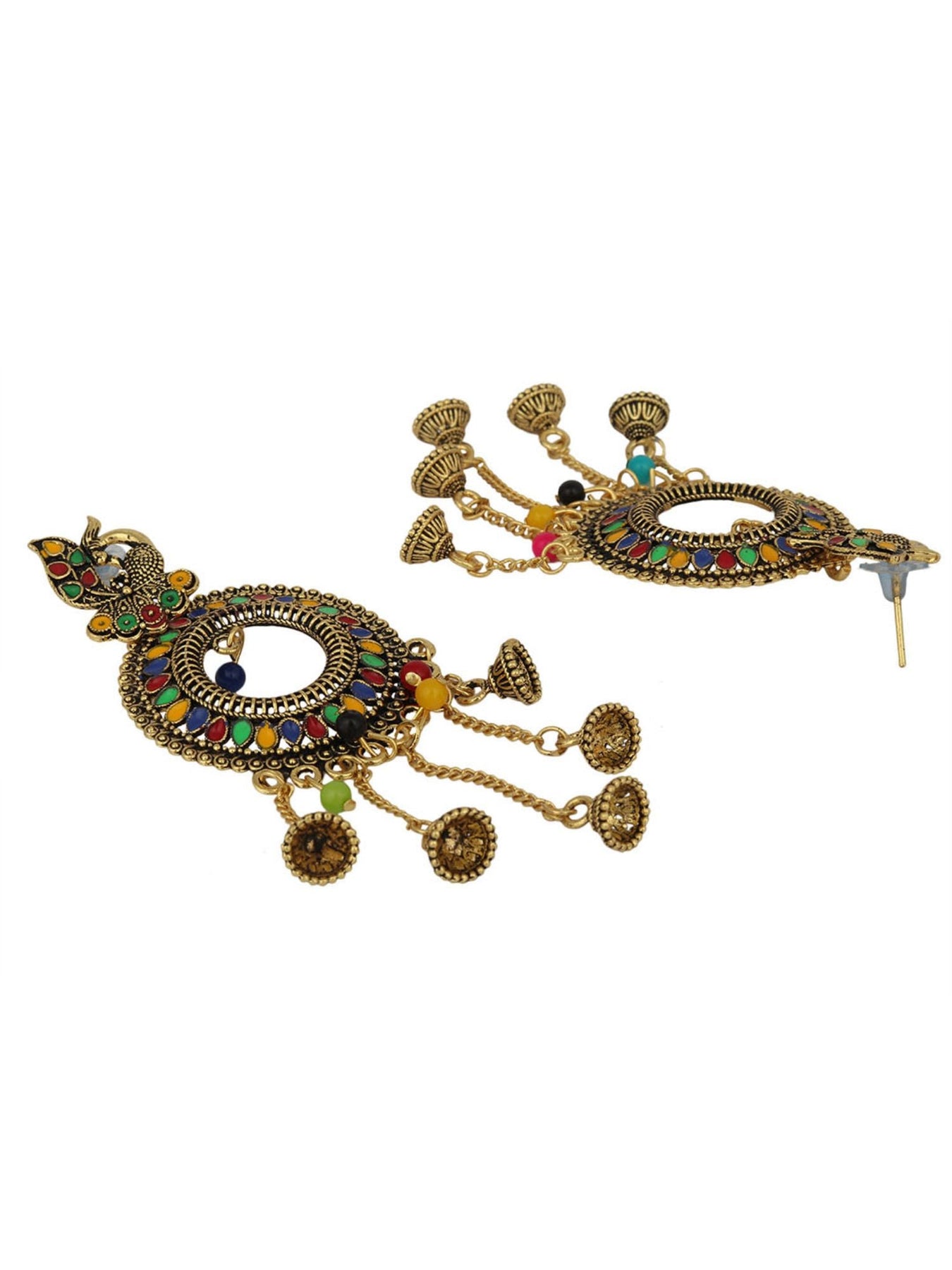 Traditional Gold Plated Party Wear Antique Multicolour Tasselled Earring