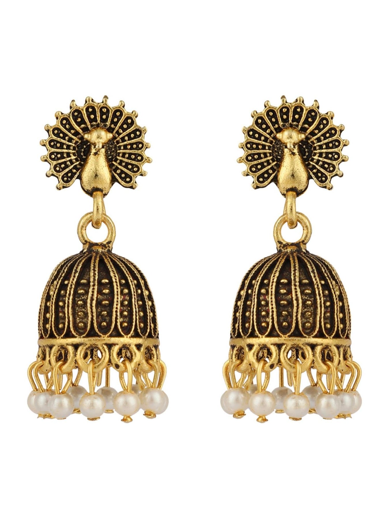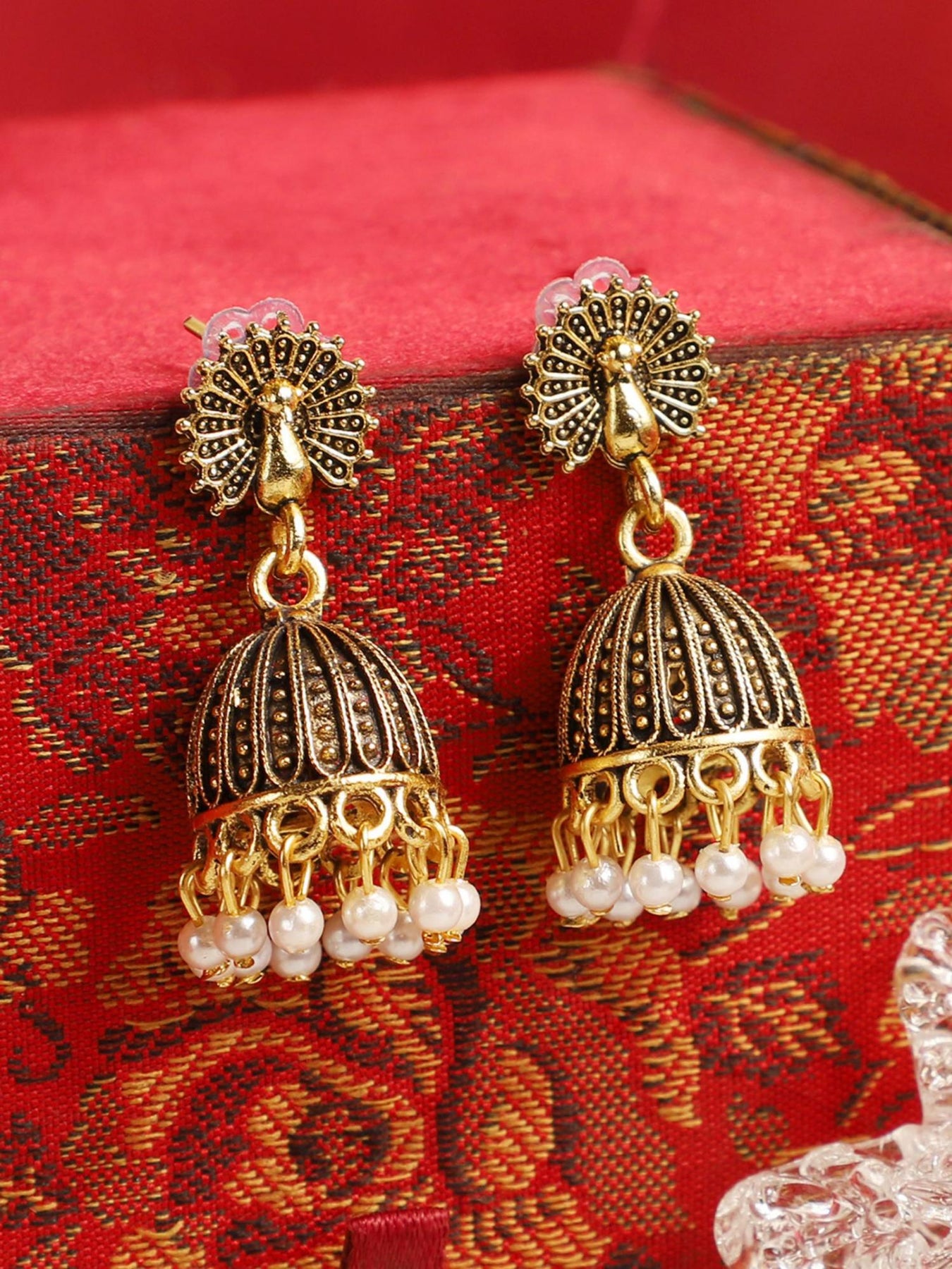 Traditional Antique Peacock Gold Plated Party Wear Alloy Jhumka