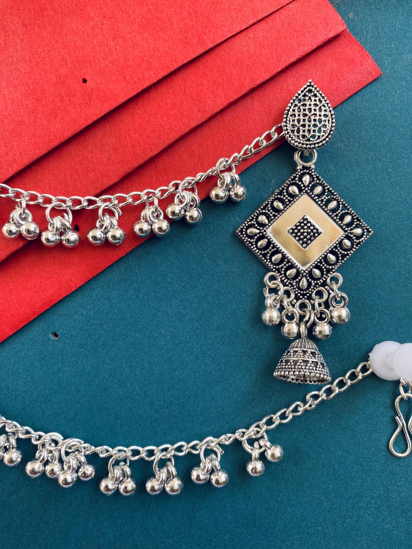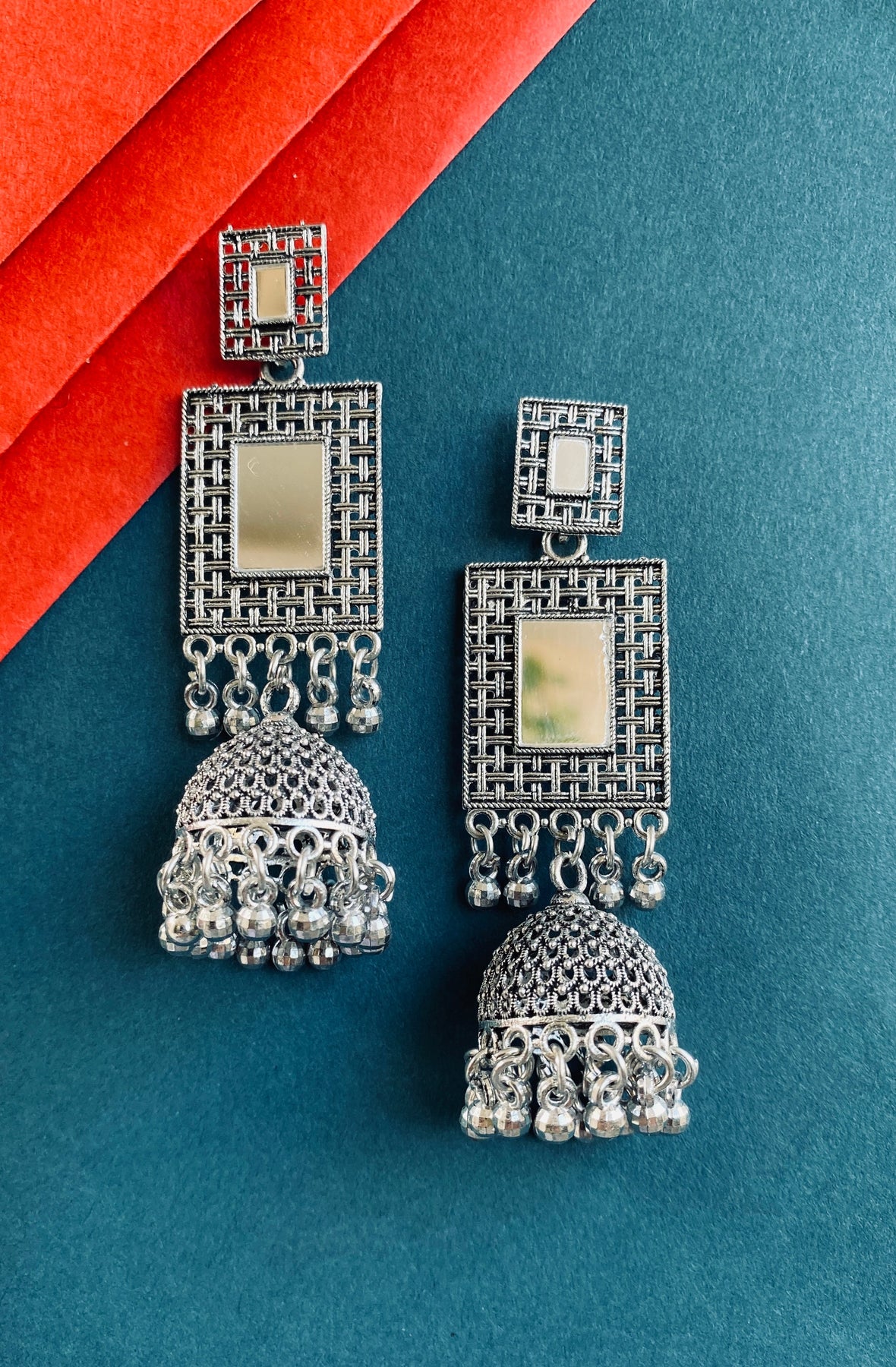 Enhance Your Look With Our Oxidised Silver Earrings, A Perfect Blend Of Traditional Charm And Modern Elegance. This Carefully Curated Set Features Intricately Designed Earrings That Showcase Exquisite Craftsmanship, Making Them Ideal For Any Occasion, Specially In Navratri.
